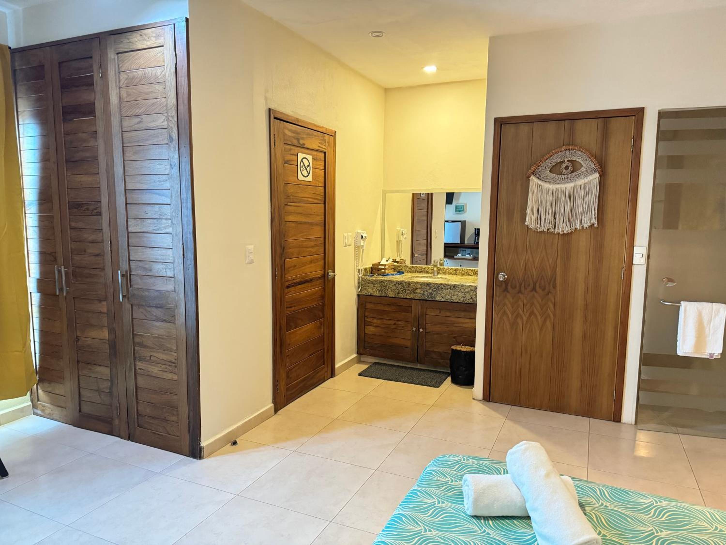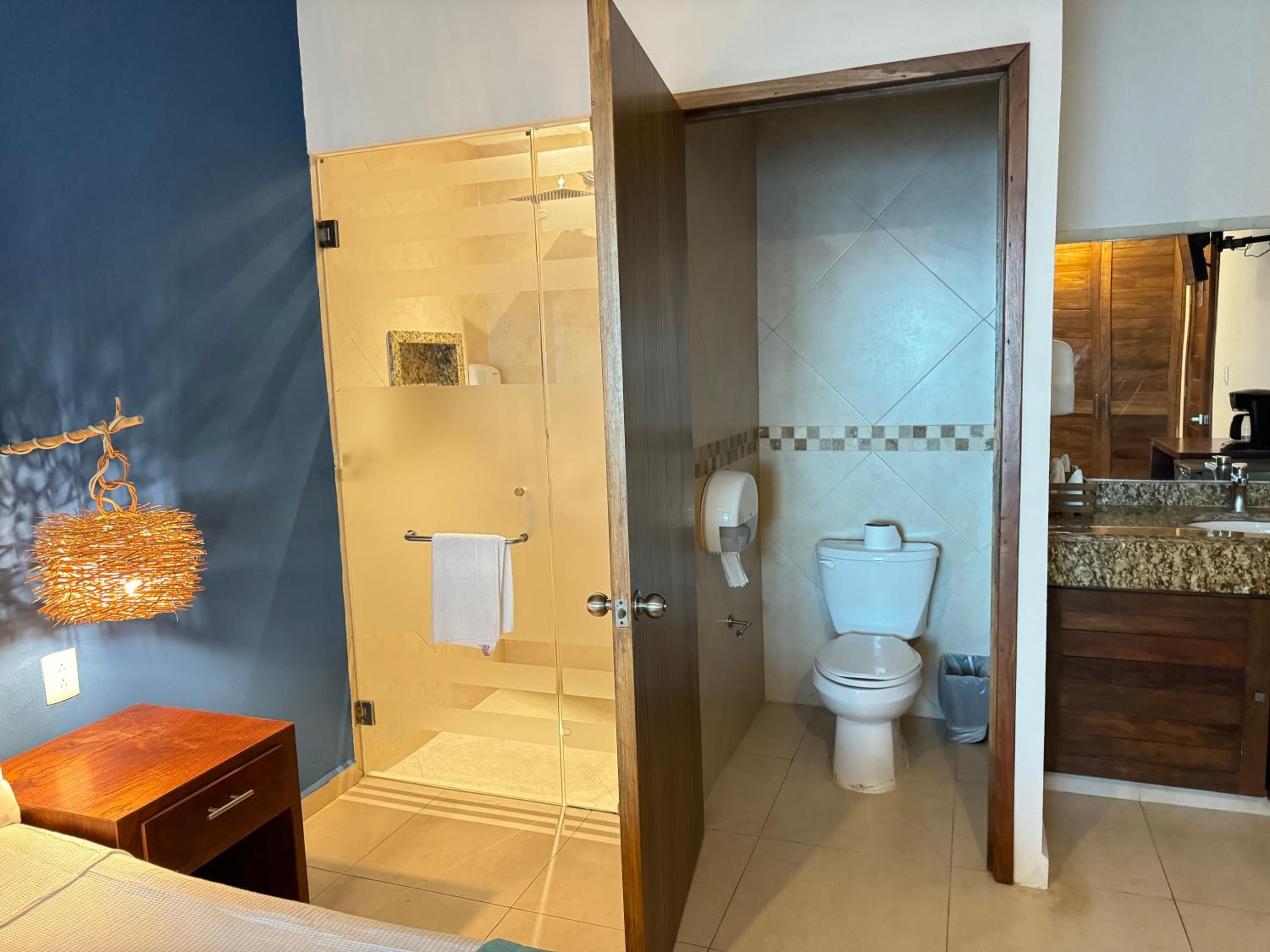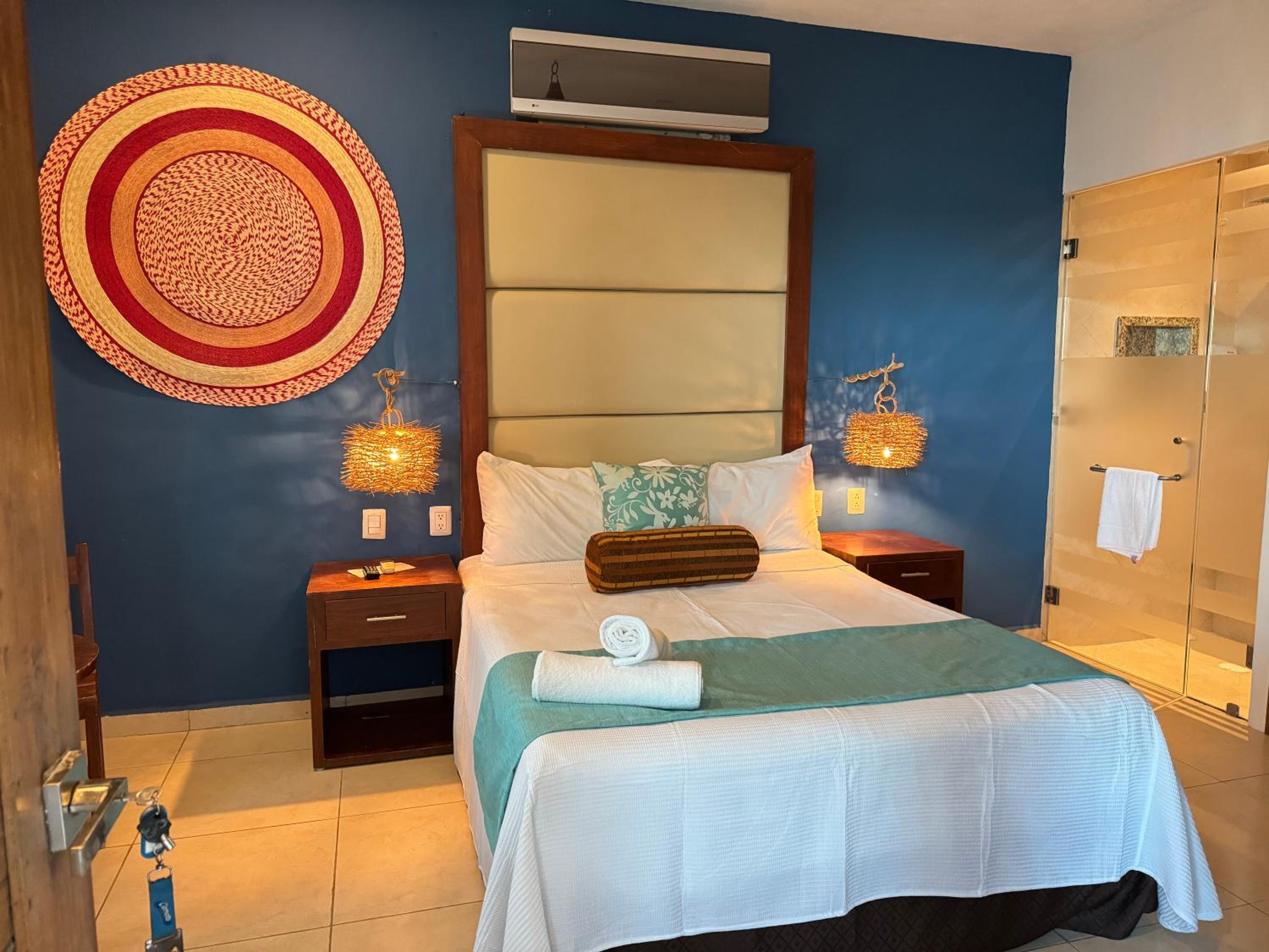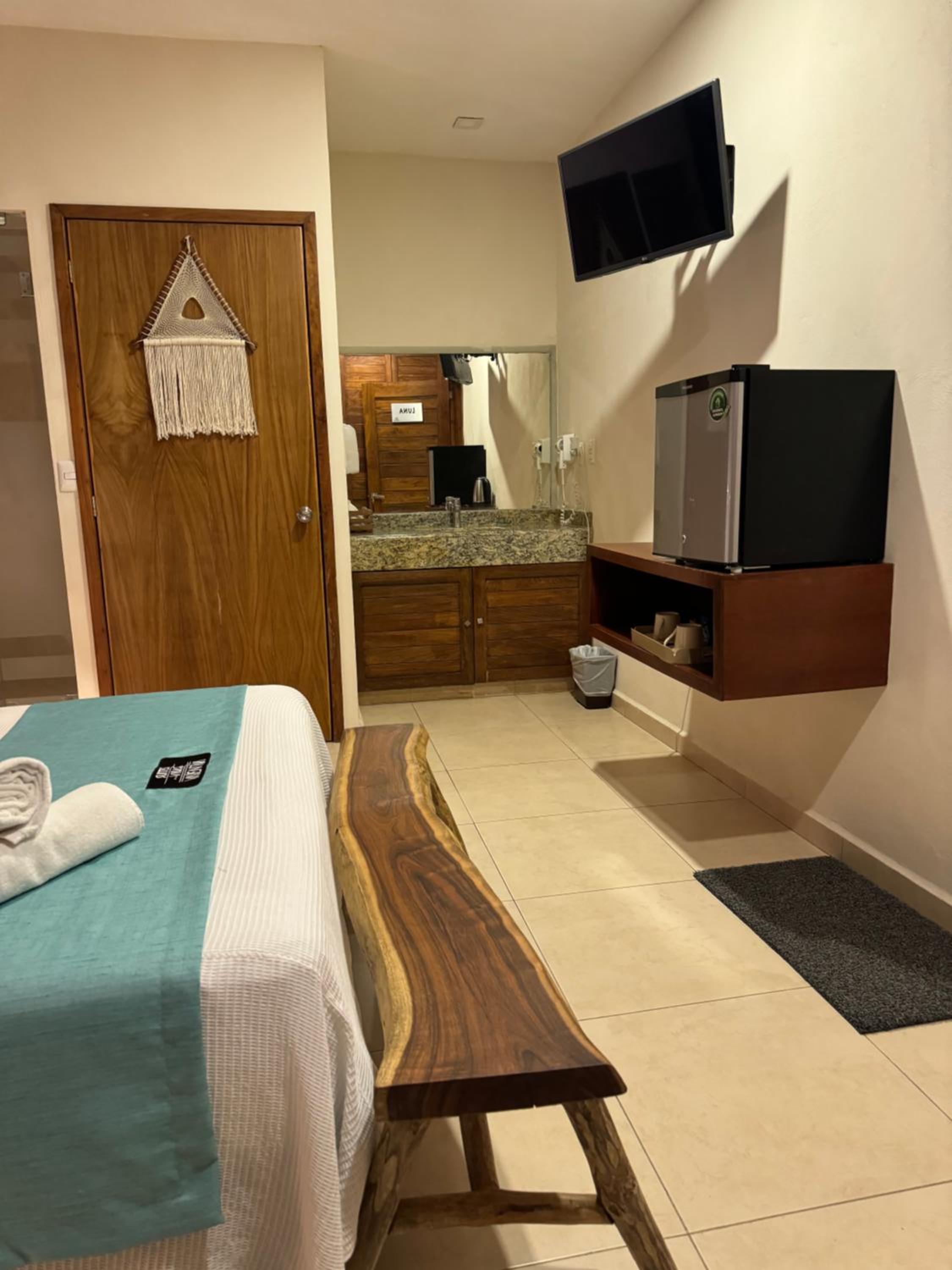We had the best stay here in Suites Valentina during our 2 weeks roadtrip in Mexico! We stayed 2 nights. The room is spacious, cozy, and in excellent condition. It is beautifully decorated with lovely details. I have never slept in such a wonderfully soft bed—and all those pillows! The kitchen is well equipped, with a large fridge-freezer, a toaster, and a kettle. The shower has plenty of hot water and good water pressure. The room has a balcony overlooking the restaurant. The rooftop terrace offers stunning sea views, and no one else used it during my stay—such peace and quiet! The room has efficient air conditioning and fresh air. The staff are friendly and cheerful, and their messages were warm and provided clear information. The center of the village is just behind a few steps, easy distance where ever you want to go.