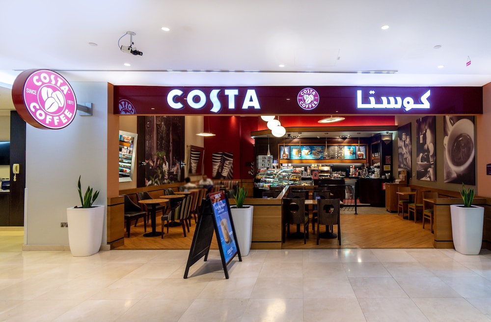 The hotel a big restaurant and a nice bar and as well as a Cost coffee.