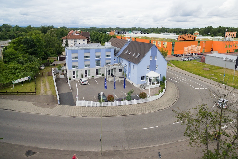 This hotel is in a very good position if you are on a long drive through Germany from Italy to Calais, as we were, because it is just one minute off the main route. It is very clean and modern with good bathroom and sleeping facilities. However, we were extremely disappointed with the situation of the hotel and the fact that it had no restaurant available, despite being called 'hotel restaurant'. The photograph of the hotel is misleading, as is the name. It appeared to me that it overlooked the Rhine. It doesn't, you can't even see the Rhine. It is in a rather poor district, surrounded by the concrete of the overhead road and a retail park opposite. Not at all what we were expecting and the restaurant being closed was very inconvenient as there was nowhere in the surrounding area to eat.