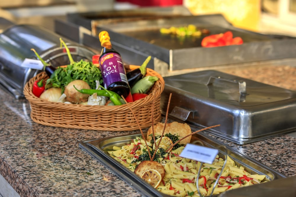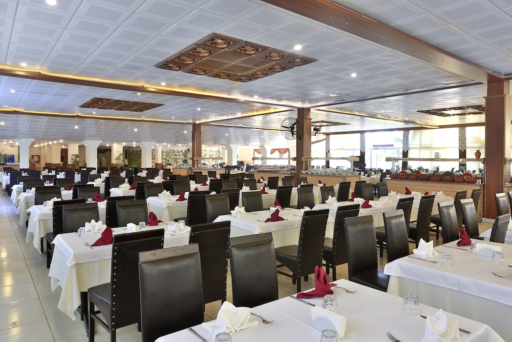 Enjoy meals at the restaurant or with 24-hour room service. Sip on drinks from the poolside bar or one of the 3 bars/lounges. All-inclusive rates cover dining and select beverages.