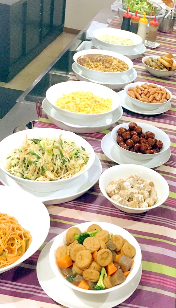 近隣のホテルは存じませんが、ここで一番感動したのは朝食です。宿泊者は無料のようですが、ごはん、みそ汁、お新香、サラダ、豊富な種類のおかず、ドリンクバー、パンも少々と無料朝食にしてはよく揃っていました。今までの他のホテルの無料朝食の中では、私は過去の経験では1、2位を争うほどのクオリティでした。