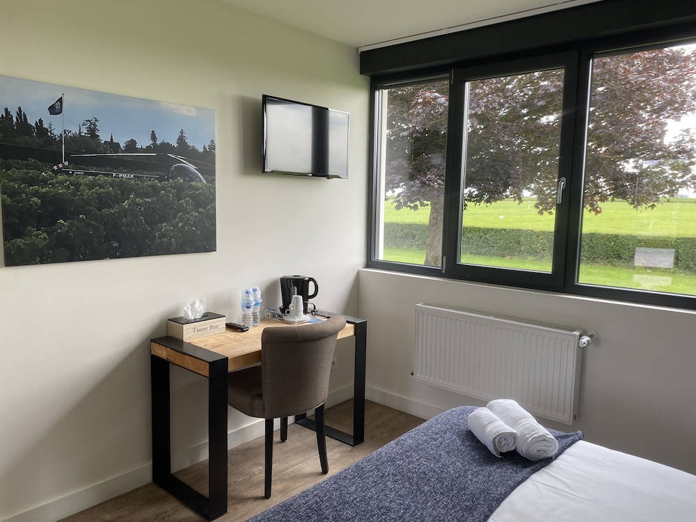 The room was clean, well equpped with an excellent shower room. View was over the old airfield. Convenient for the restaurant, but unfortunately the range of food and the quality of of food was very disappointing. The breakfast was particulary poor. Would stay there again but exclude breakfast and eat elsewhere.