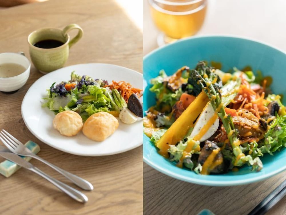 is scheduled at 20:00, allowing us to explore Kyoto hand-free. There's also a restaurant in the lobby, serving modern, vegan-friendly Westernized meals. They even offered free sake the day we stayed