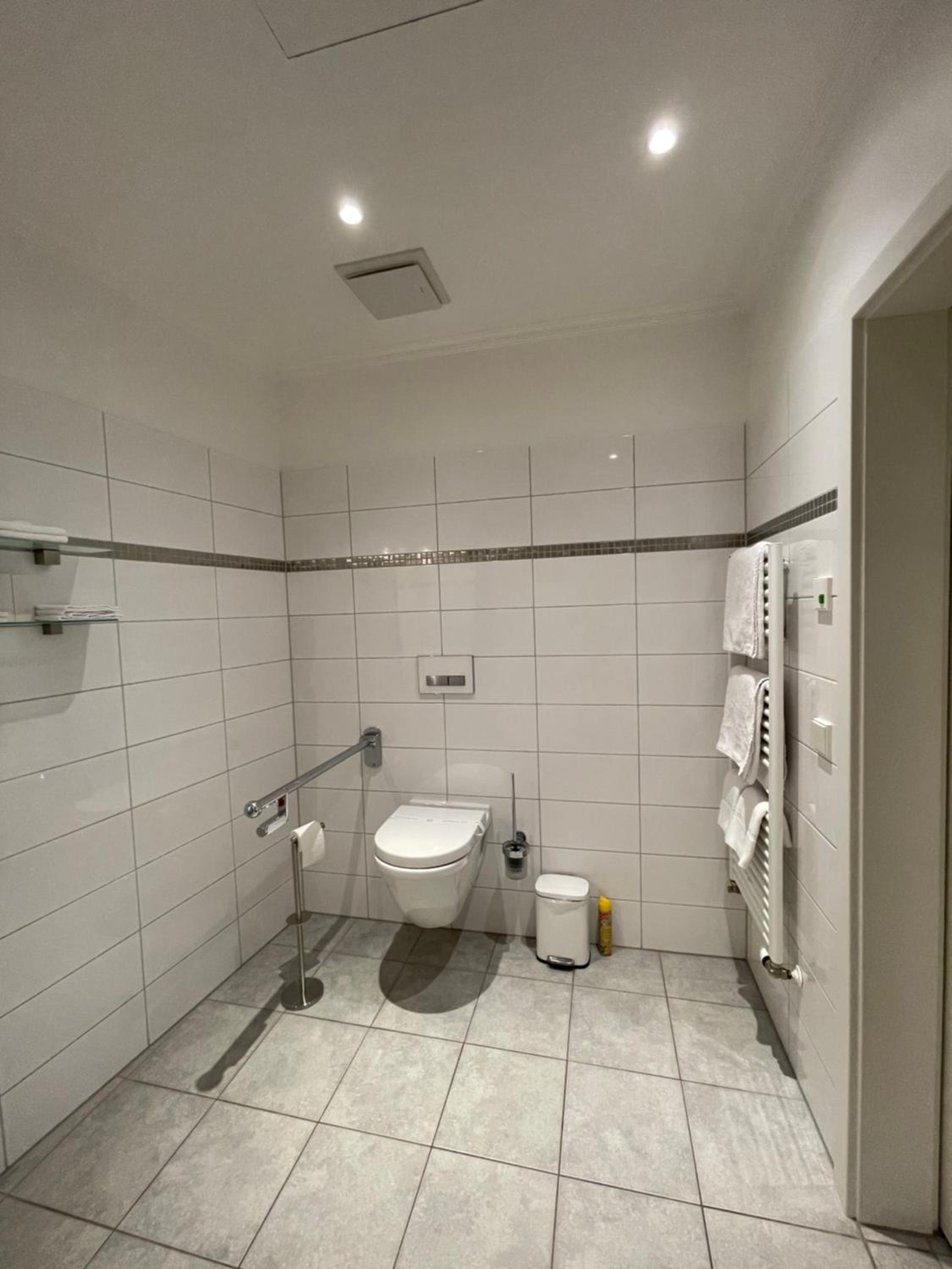 In the restroom the WC seat is very high and uncomfortable:(