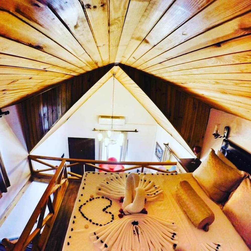 Остались приятные впечатления. Домик отличный, кровать на втором этаже, ребенку очень понравилось. Попали на вечер со свадьбой в ресторане отеля - вообще не проблема. Послушали турецкую музыку, потанцевали в номере, понаблюдали за праздником, и самое главное - все было спокойно, не шумно, в начале 12 уже все закончилось. Единственное что нас расстроило - Интернет, он не работал! Из трех дней проживания, сделали только на третий день, но очень старались!! На территории отела отличный бассейн, большая зеленая территория, везде плетеные кресла, есть беседка. Завтрак - супер! В номере хорошо, не сильно чисто (пыль забыли когда вытирали), но и не грязно. Постельное белье чистое, туалет чистый, были все туалетные принадлежности (шампунь, гель для душа, мыло, туалетная бумага). Также есть чайник, чай, кофе, сахар. Одноразовые тапочки, также приятно удивили. Телевизор - только местные каналы. Есть кондиционер, но мы его ни разу не включали, так как в Антакье, очень ветрено. Стоит только окна открыть - сдувает все! Расположение нормальное. Рядом восхитительный археологический музей! 5 минут ходьбы. Около отеля остановка автобуса, ходит каждые 20-25 минут до центра города. Можно выйти на главную дорогу, там автобусы ходят чаще. В получасе ходьбы, есть еще один шикарный музей-отель, там же рядом церковь Св. Павла. До центра пешком далековато, км 3-4, лучше на автобусе. В отеле организовали поездку на такси до аэропорта за 100 лир. Одним словом, отдыхом и поездкой очень довольны!
