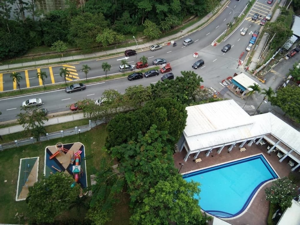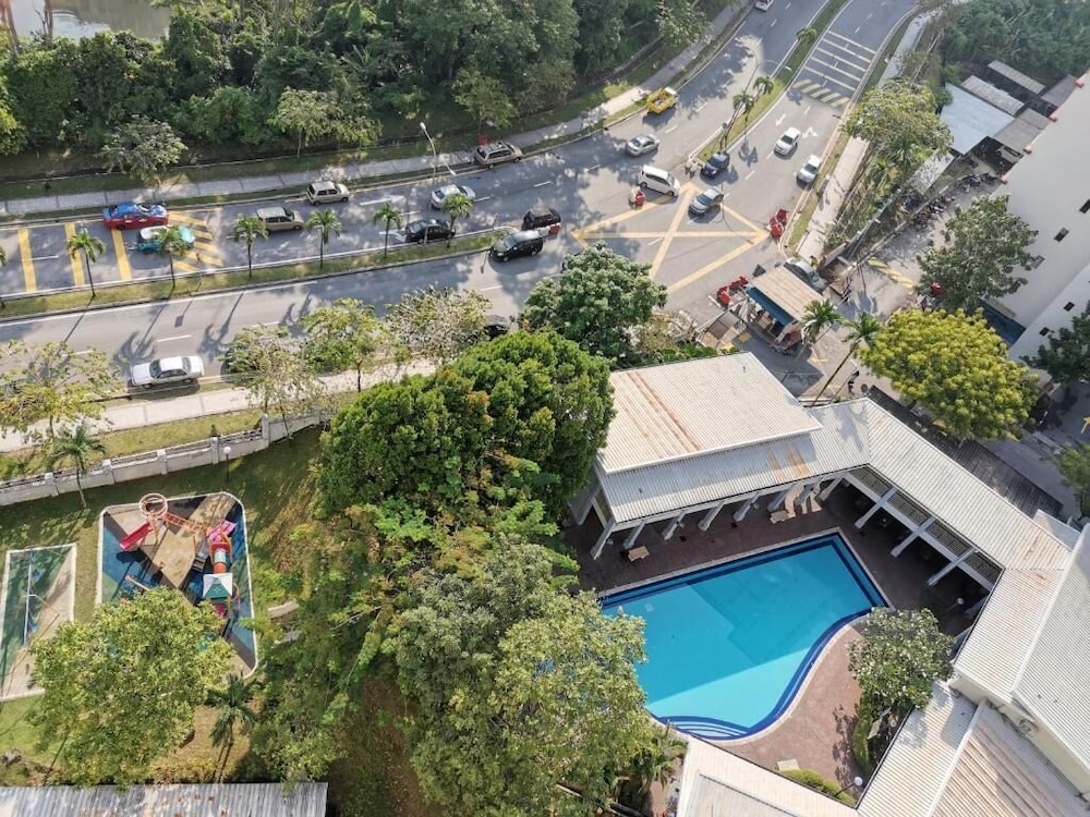 Enjoy the outdoor pool and fitness center at Aini's Guest House In Vista Amani Condo.