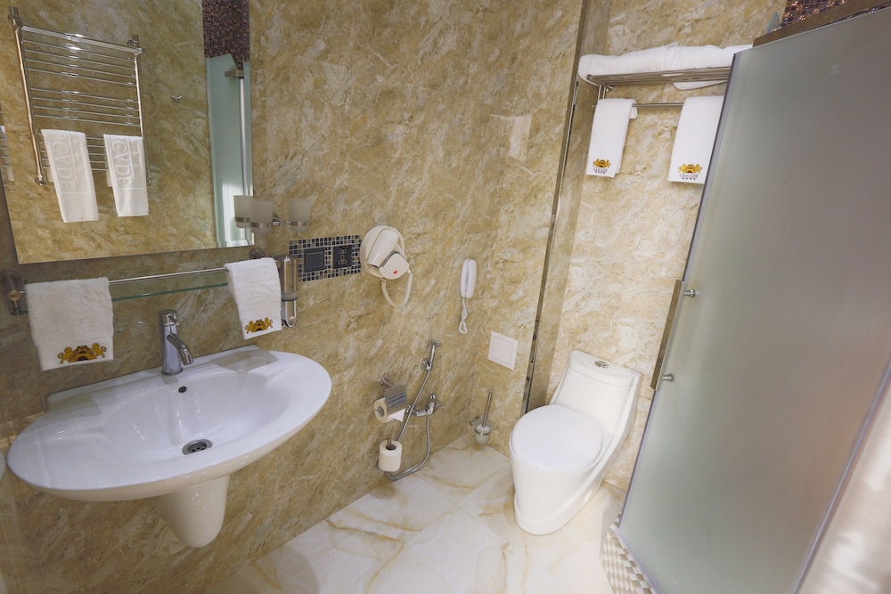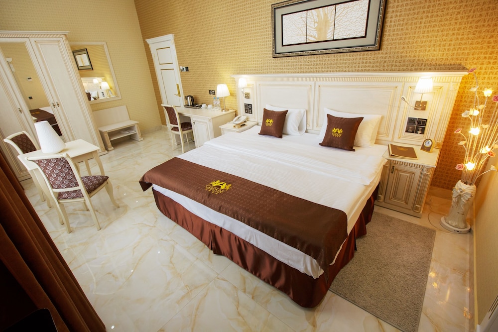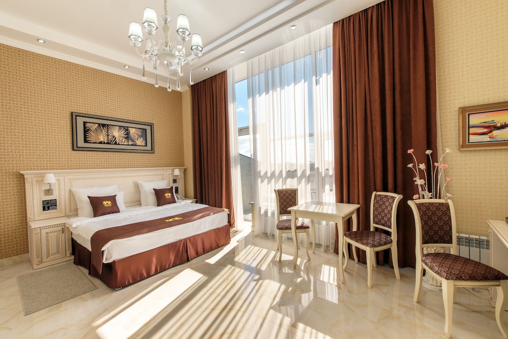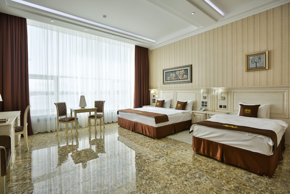 Останавливались с семьей. В Сызрани, это самое достойное и комфортное проживание. Ряд некоторых нюансов, конечно, удивили, но не омрачили нашего общего впечатления. Золотые унитазы, это, конечно пушка😂😂😂сильно повеселили и стали изюминкой пребывания в этом отеле. Удивил момент со СПА зоной, как оказалась, сауны вкл в 17 , бассейн с единой глубиной 2 м и, !внимание!, каждый вход оплачивается отдельно. Как правило, в других отелях, для проживающих гостей, спа и термальная зона входит в стоимость проживания, ну хотя бы несколько часов. Здесь такого нет. Если вышел, то чтоб зайти ещё раз, снова нужно платить. Этот момент огорчил, поскольку, мы ехали с детьми и взяли Их в свою деловую поездку, именно для того, чтоб провести вместе время, свободно поплавать, но не получилось. Но мы Нашли чем заняться и не омрачить этого время