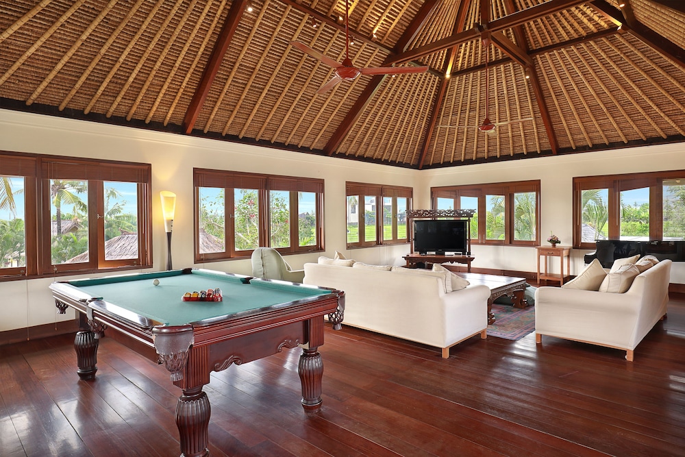 I love that the villa has the real feel of Bali with thatched roof pavilions and open-plan living areas. Everything is immaculately well maintained with a small army of staff looking after every little detail. This villa has everything you could ask for, including two pools and two pianos!