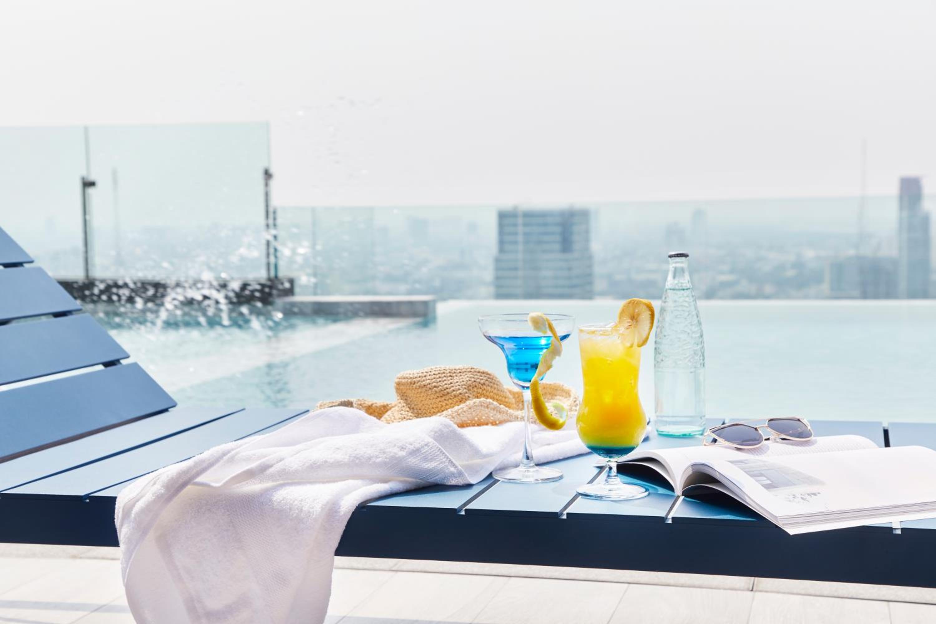 Die Aussicht auf die Skyline, der Pool, das Personal super freundlich und hilfsbereit, Betten total bequem.