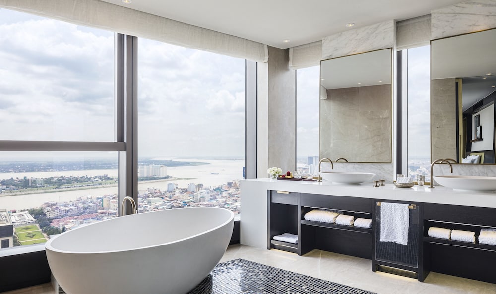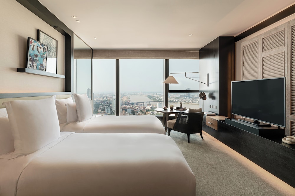 This place is very expensive, but is top notch. I stayed here through the AMEX Platinum FHR. The service is stupendous. I forgot the girl who was from my hometown city, Siem Reap and the guy who gave me Kampot pepper as a little souvenir as well. I think I was upgraded to one of the rooms that has a very nice view of the river and the market from the 32nd floor. The room is spacious, clean and luxurious. I actually stayed here since last year. I have been traveling and staying in many places, but never written reviews until now, so thought to leave my feedback here. There are definitely many options for your stays, but if you want to be a little extravagant and enjoy the view, Sora Bar with live music, and just the experience at one of the tallest hotels in Cambodia, definitely check out Rosewood Phnom Penh. I have not yet found a place that exceeded the service level as in this hotel. I might stay here again next time I am in Phnom Penh.
