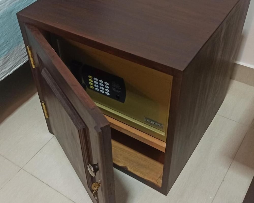 The property is located right on the main road and is very noisy at night when trying to sleep. My room was spacious and clean and secure. My room for a single person had a double and a single bed both bare mattresses. On the dbl bed was sitting two folded single sheets. Both not much value for the double bed. There was no tv or fridge or shampoo but there was a safe and a cake of soap. The room was comfortable enough but I was expecting a little more. I would not return to this hotel next visit.