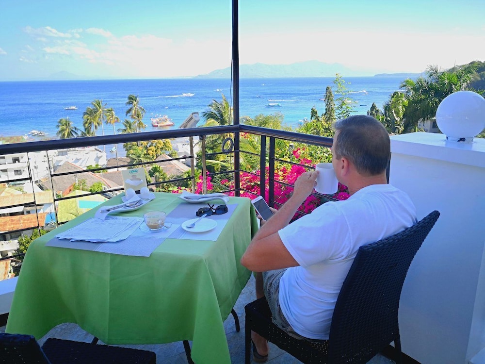필리핀 섬에서 있는 호텔치곤 컨디션은 괜찮은 편. 7층 높이의 객실의 뷰는 좋으나 경사가 급한 계단을 올라가야 한다. 써 있기론 3층이나 앞서 말한거 같이 7층 높이임. 6,7평정도 만한 수영장이 있긴하나 깊이 차이가 난다. 발목높이에서 7ft 깊이까지. 커플, 커플은 화이트 비치로, 남자끼린 사방비치로~