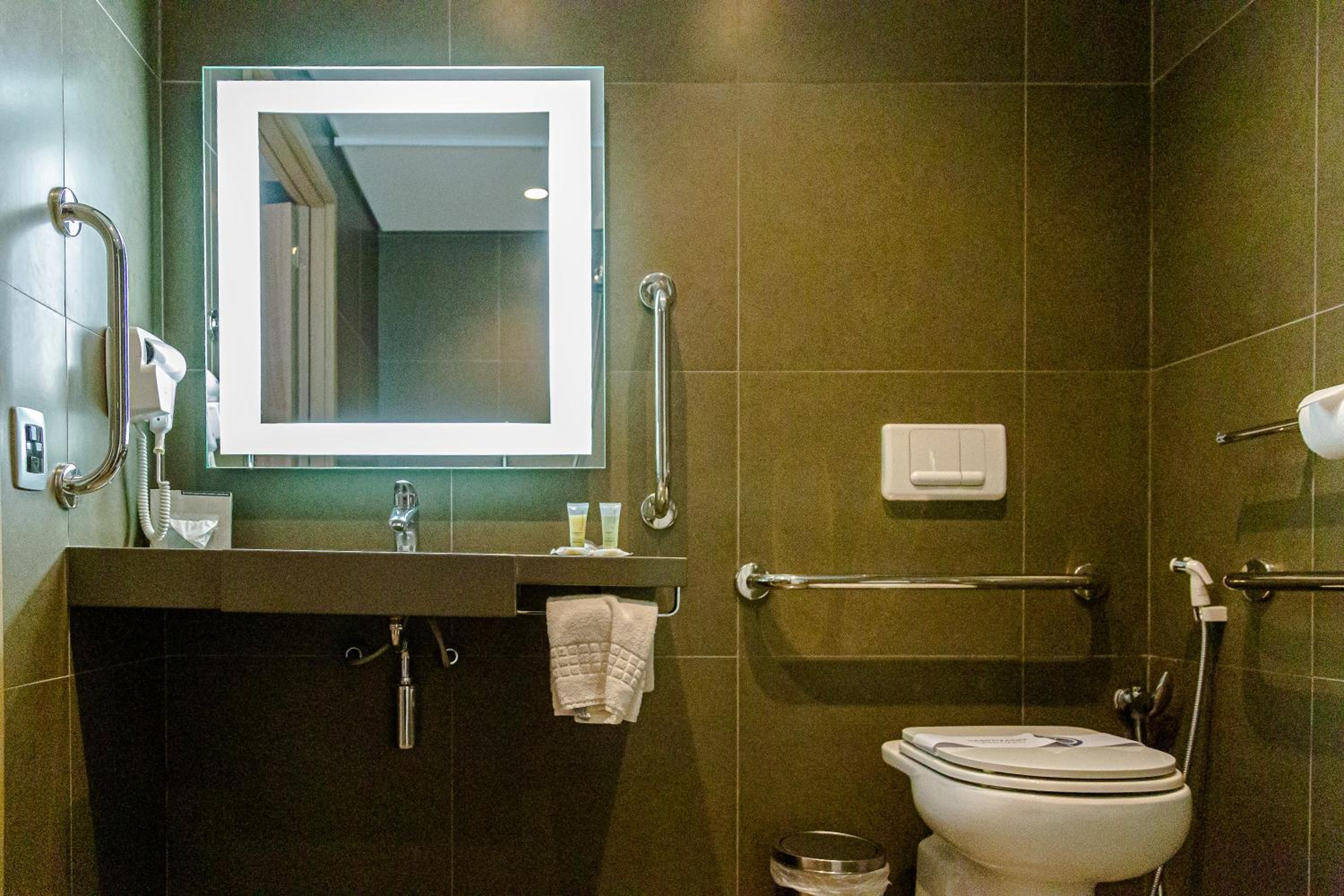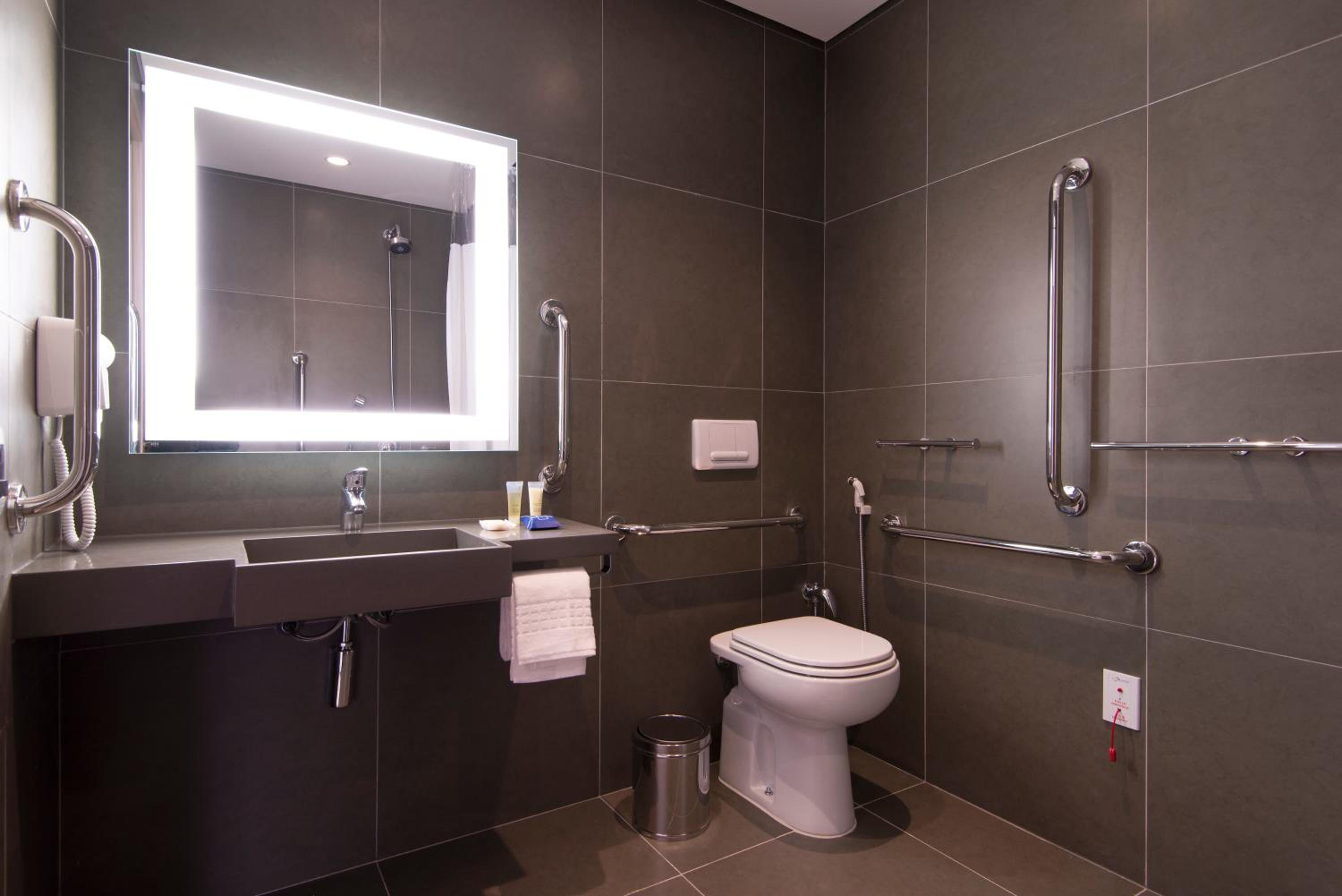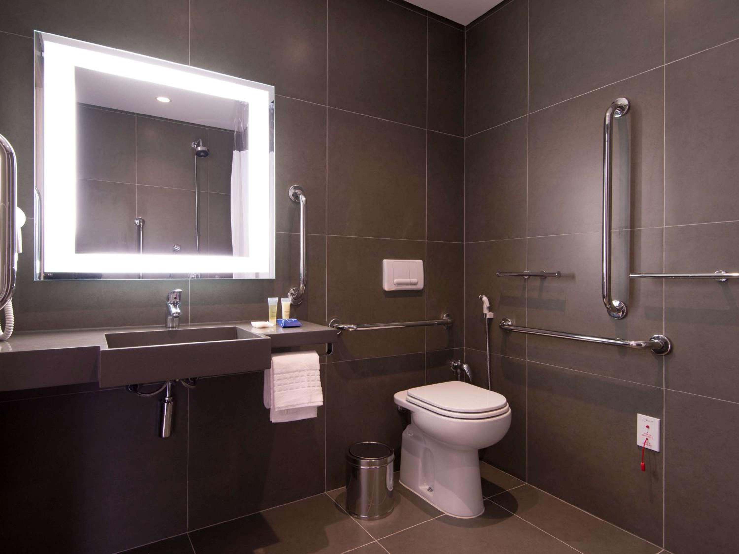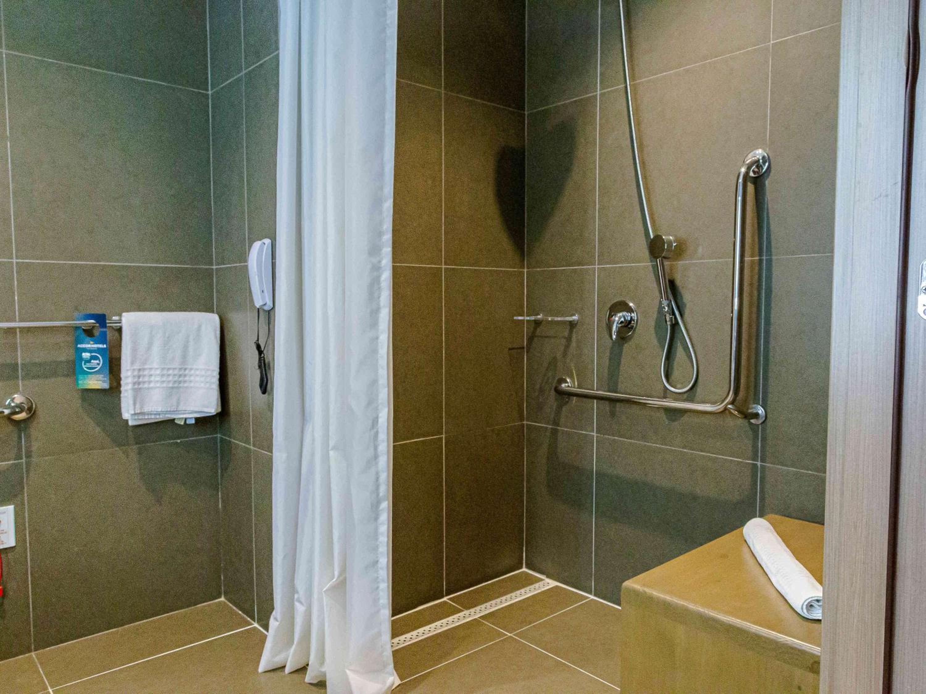 Chuveiro com muito pouca vazão. Incompatível com diária cobrada e local do vaso sanitário parece uma cápsula ejetável. Estacionamento e hall horríveis. Acesso ao hall x estacionamento péssimos. Descer com malas requer passeio e boa andança. No meu entendimento, incompatível com padrões do Novotel. Se eu fosse gerente da Accor, faria de tudo para abandonar esse imóvel e procurar outro e melhor local. Agora para quem faz tudo à pé, pode ser uma opção, até. O ponto é o preço cobrado e as deficiências reportadas.