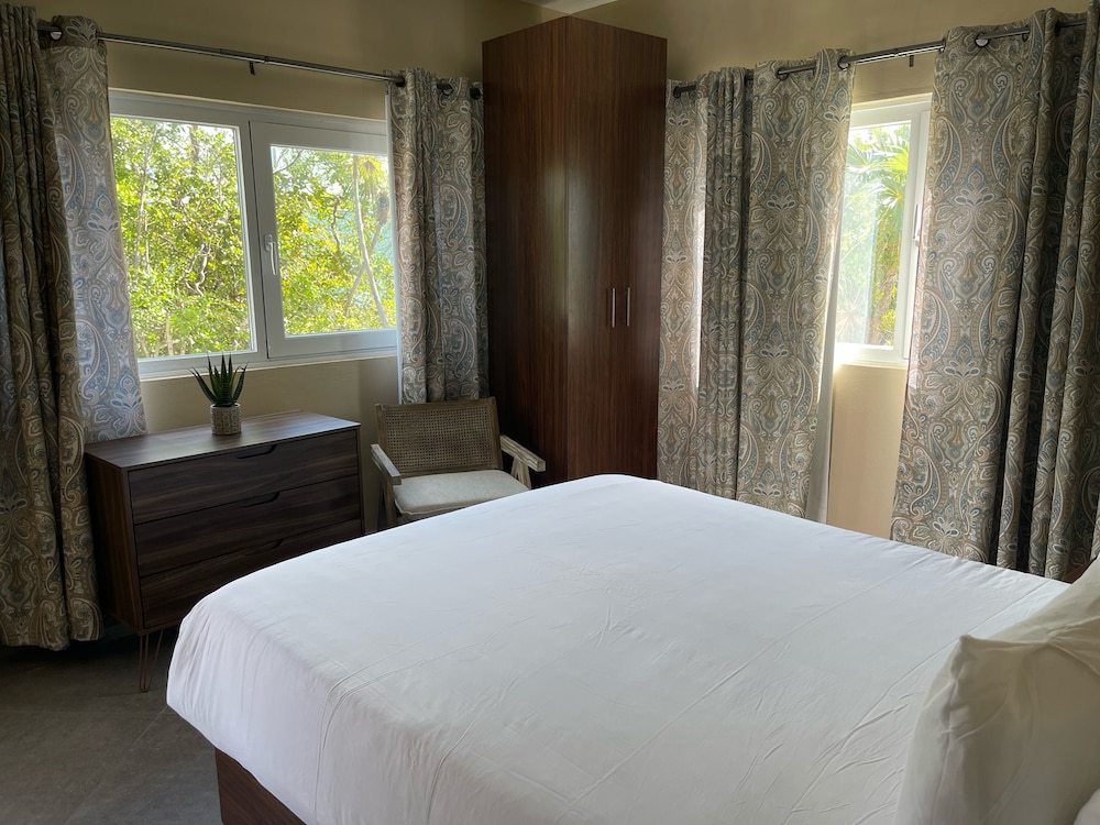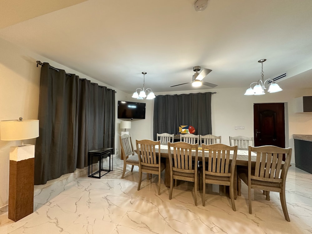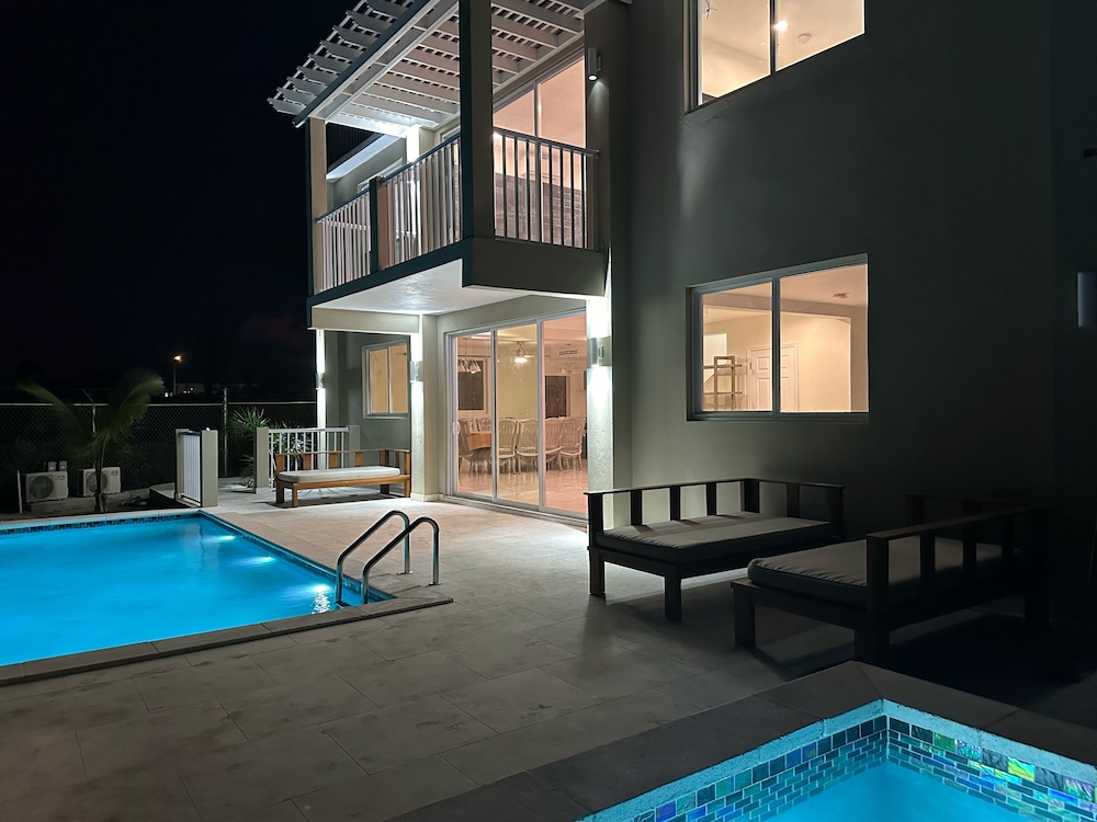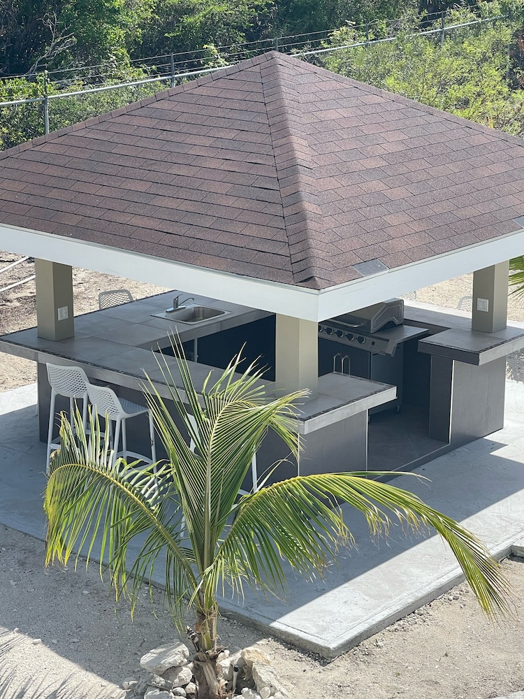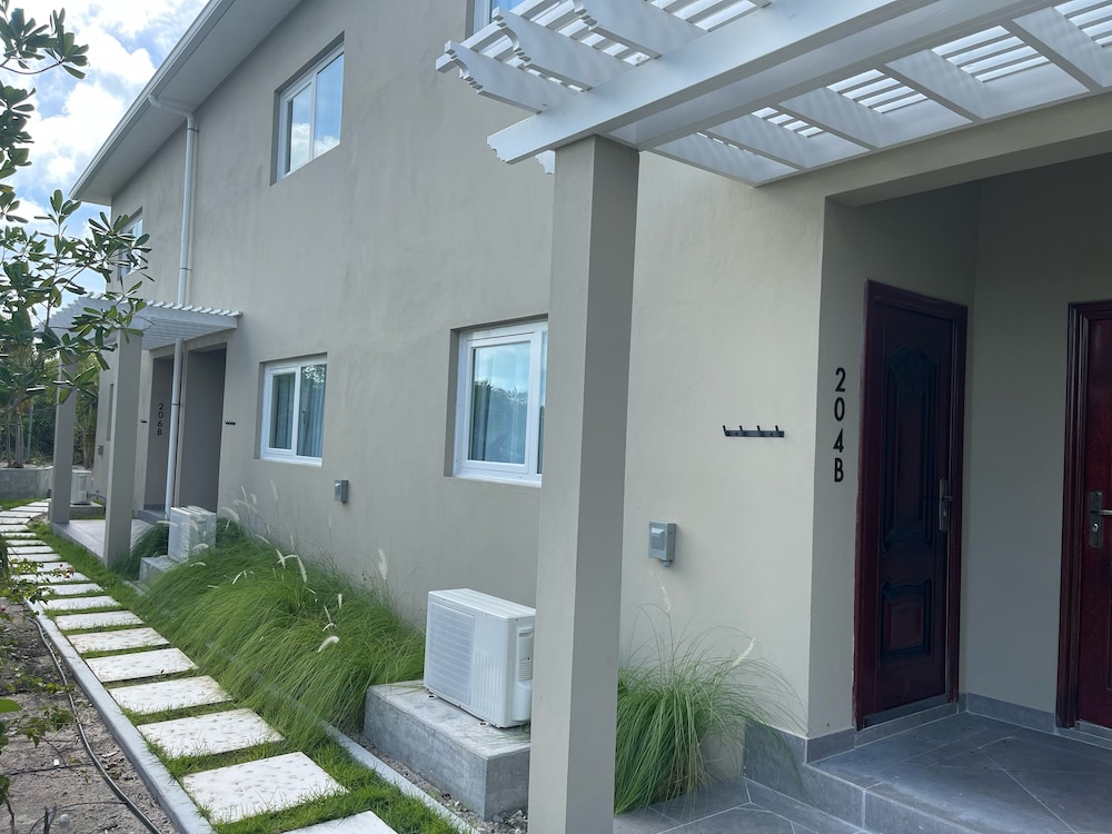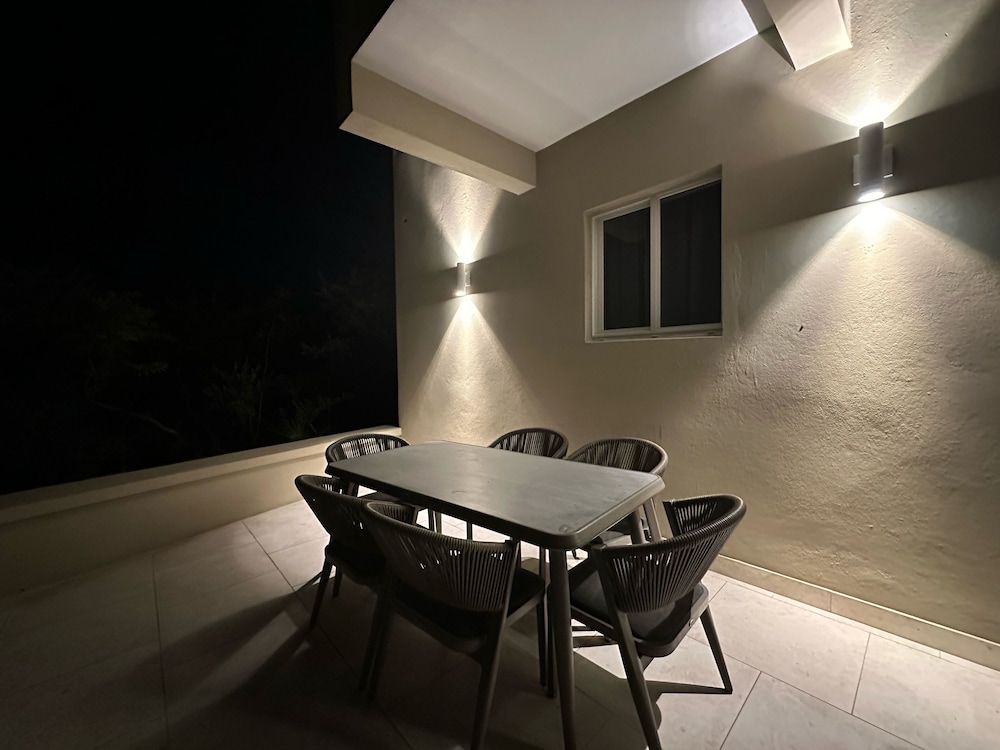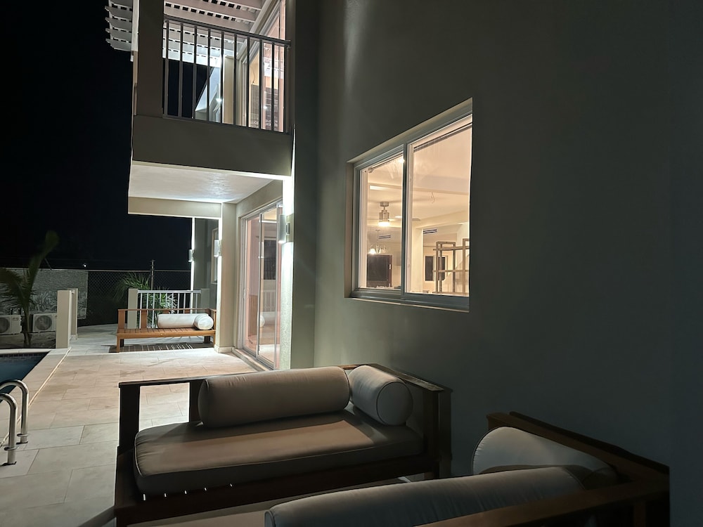 New/ still under construction. Drive way was unpaved and bumpy. Terrible first impression from gate two. Inside unit was beautiful. We were the first renters. Bedrooms, closets and bathrooms upstairs were huge! Very large unit. Plenty of room for full family. Nice having bedrooms upstairs and living area downstairs. Several issues while staying there. Both A/C units leaked water upstairs. Had to turn them off and sleep in the heat two nights! Handle on patio door was not attached. Dishwasher not attached, cardboard still in it. Did not use it. Pool was very nice. Far from town not great when choosing to walk in the heat. Taxis $8 per pp minimum one way.