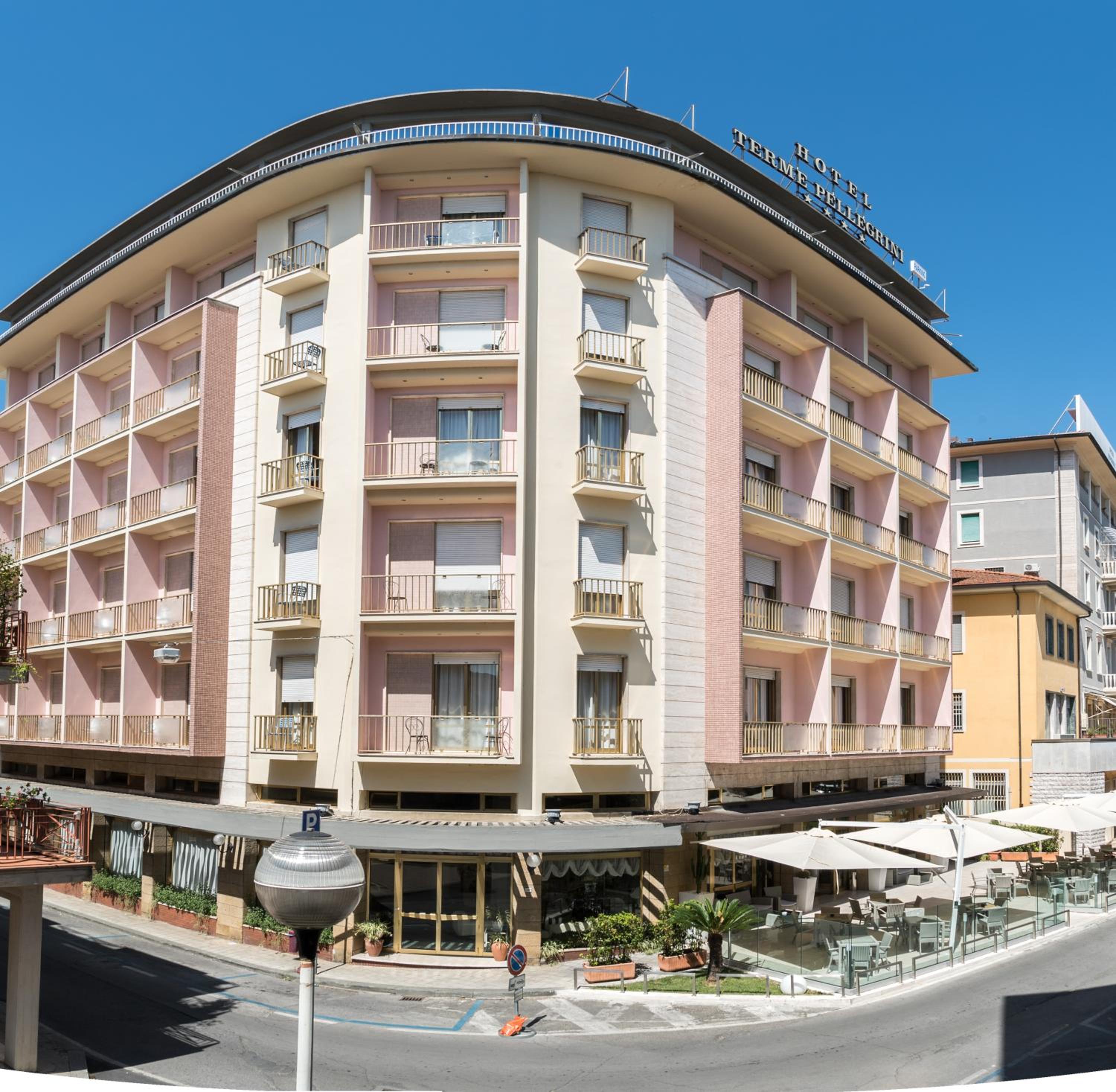 Hotel Terme Pellegrini offers elegant air-conditioned rooms with free WiFi and private bathrooms. Guests can also enjoy a drink at the bar before retiring to their comfortable rooms with modern amenities.
