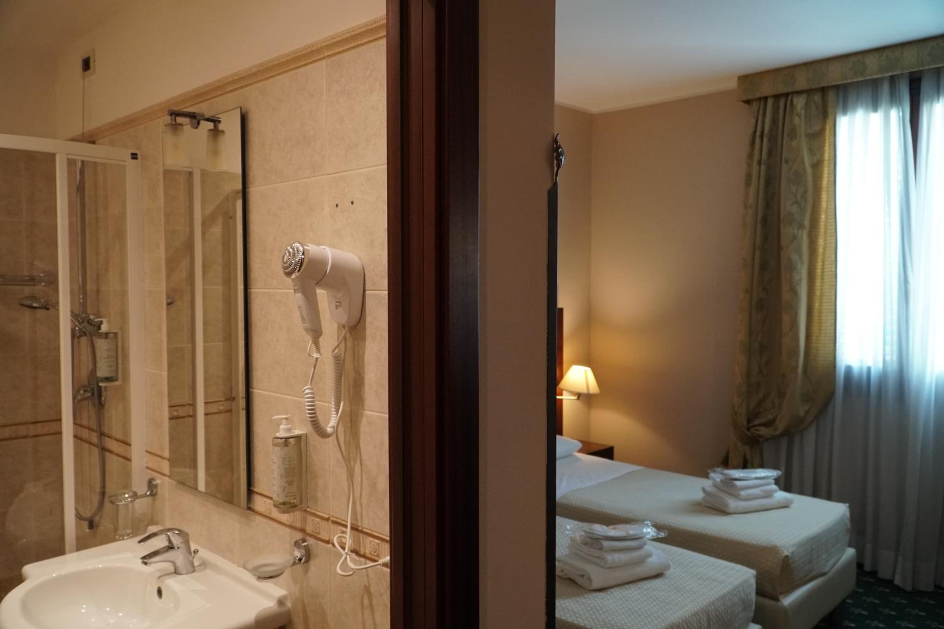 Niente da dire, tutto di ottimo livello considerando il prezzo onesto. Camera di dimensioni ok e bagno buono. Colazione ottima come scelta e servizio. Parcheggio interno e caffè offerti all'arrivo!