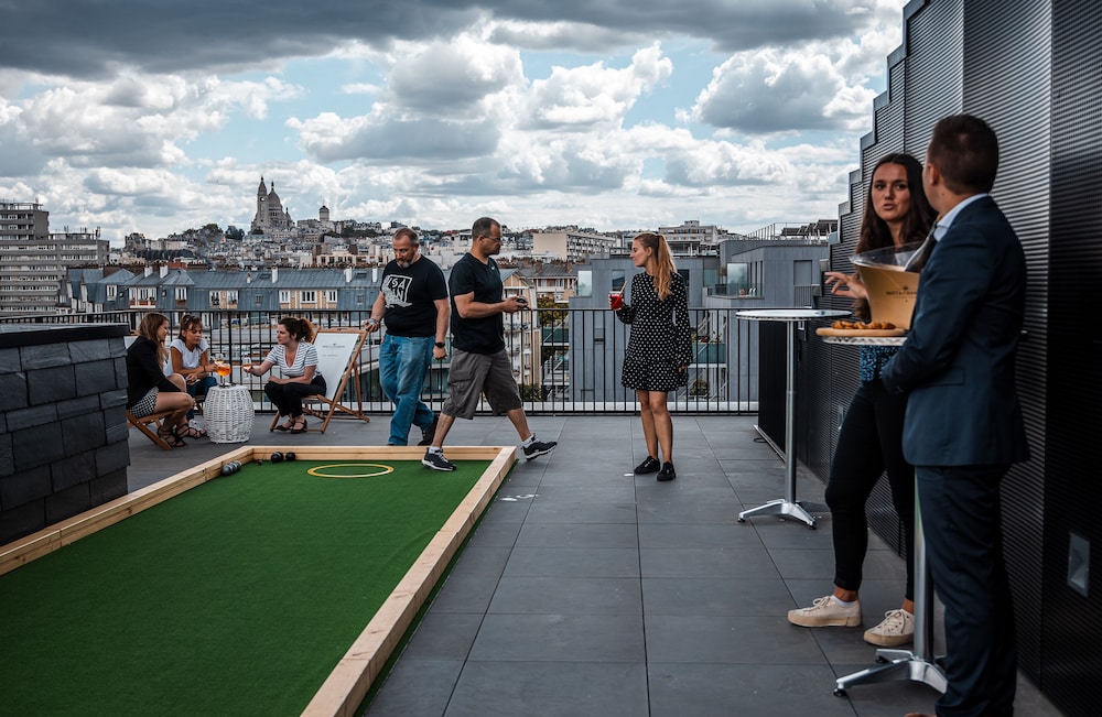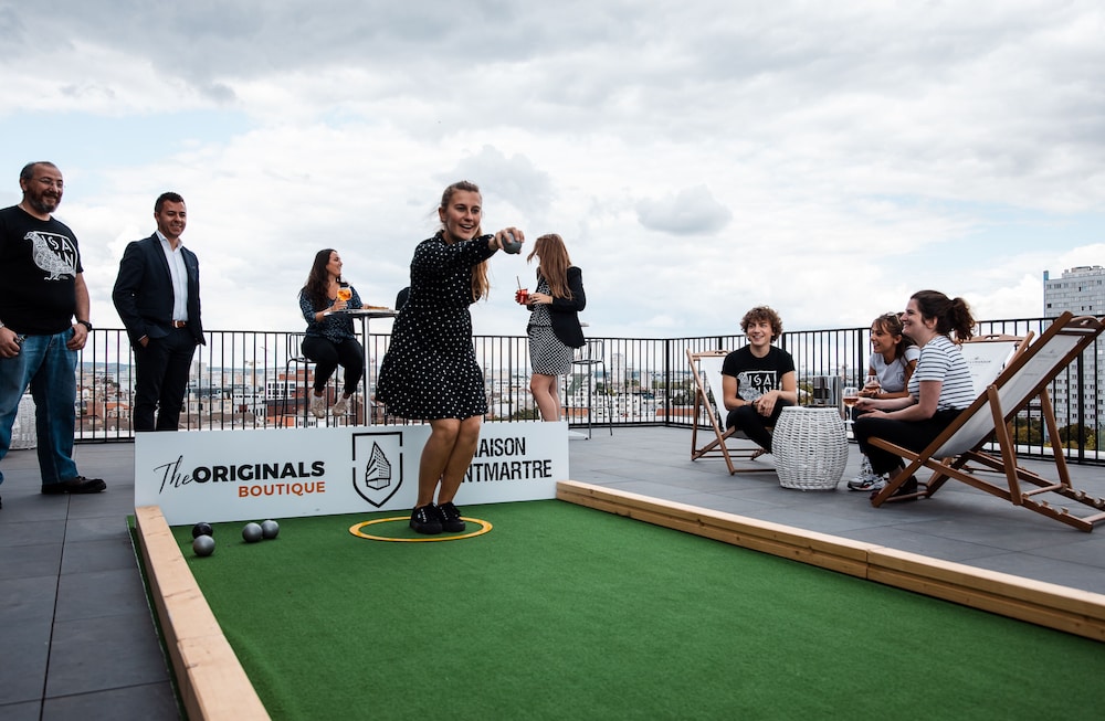 Nous avons testé le bar du rooftop. Franchement, les serveurs faisaient du bon boulot mais ils étaient débordés tant il y avait du monde le jeudi et le vendredi soir. Le boulodrome est vraiment sympa; nous avons fait de nombreuses parties avec nos enfants. Si vous n'aimez pas marcher un peu vous pouvez prendre le bus ou le tramway à proximité de l'hôtel, sinon vous pouvez rejoindre le métro, ligne 12 arrêt Jules Joffrin.