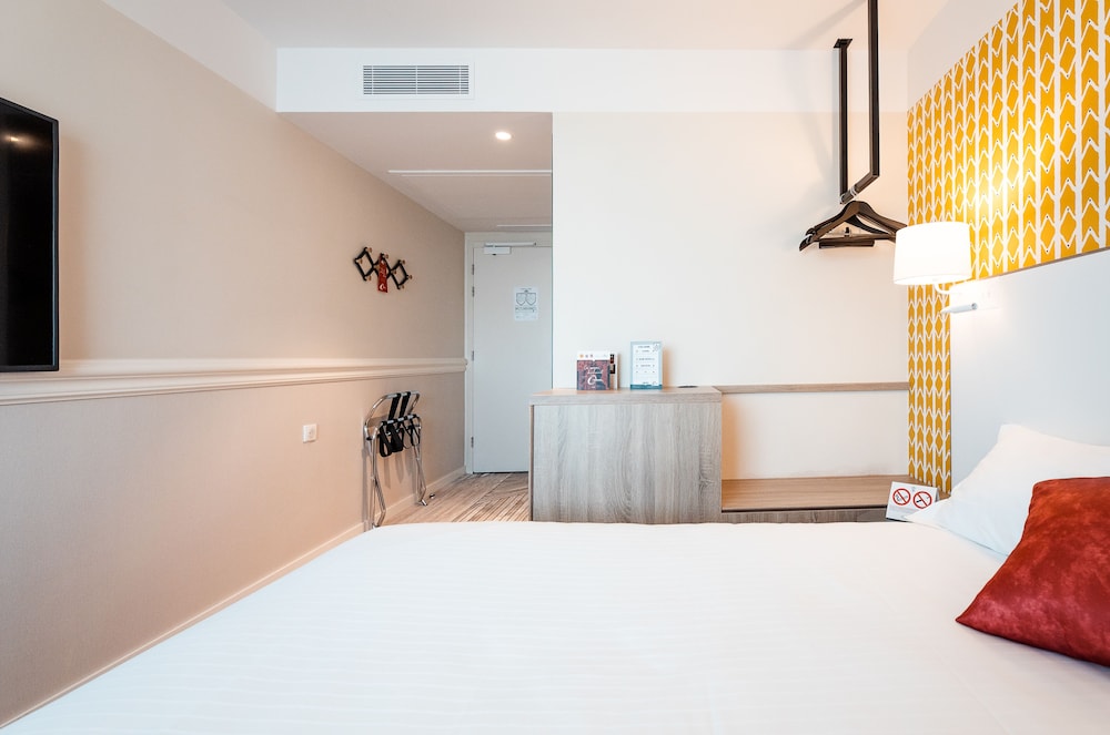 L'hôtel se trouve le long du périph mais depuis le rooftop, on entend pas trop la circulation qui, rappelons-le, est limitée à 70 km/h. Si vous ouvrez la fenêtre de votre chambre, là, vous avez le bruit mais pas besoin. Les chambres sont spacieuses et confortables.