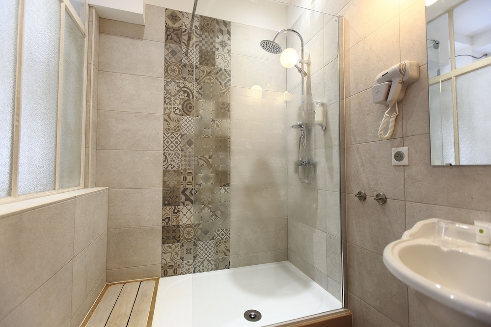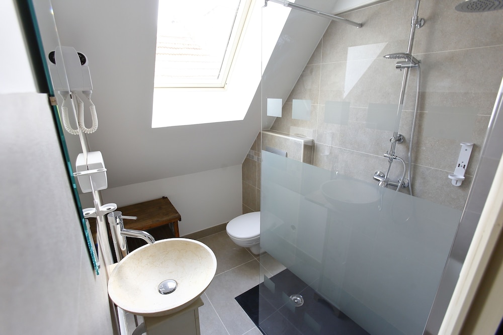 la chambre est très mal agenacée, la salle de douche un vrai frigo, la température et le débit de la douche change tout le temps, on passe du froid au brûlant en 15 secondes, les toilettes, très étroites, permettent d'éviter de glisser sur la lunette des toilettes qui glisse sur la cuvette..., marrant mais une chambre sinistre. lumières allumées dans la cour toute la nuit, bruits de passage de voitures. Je recommande d'éviter.