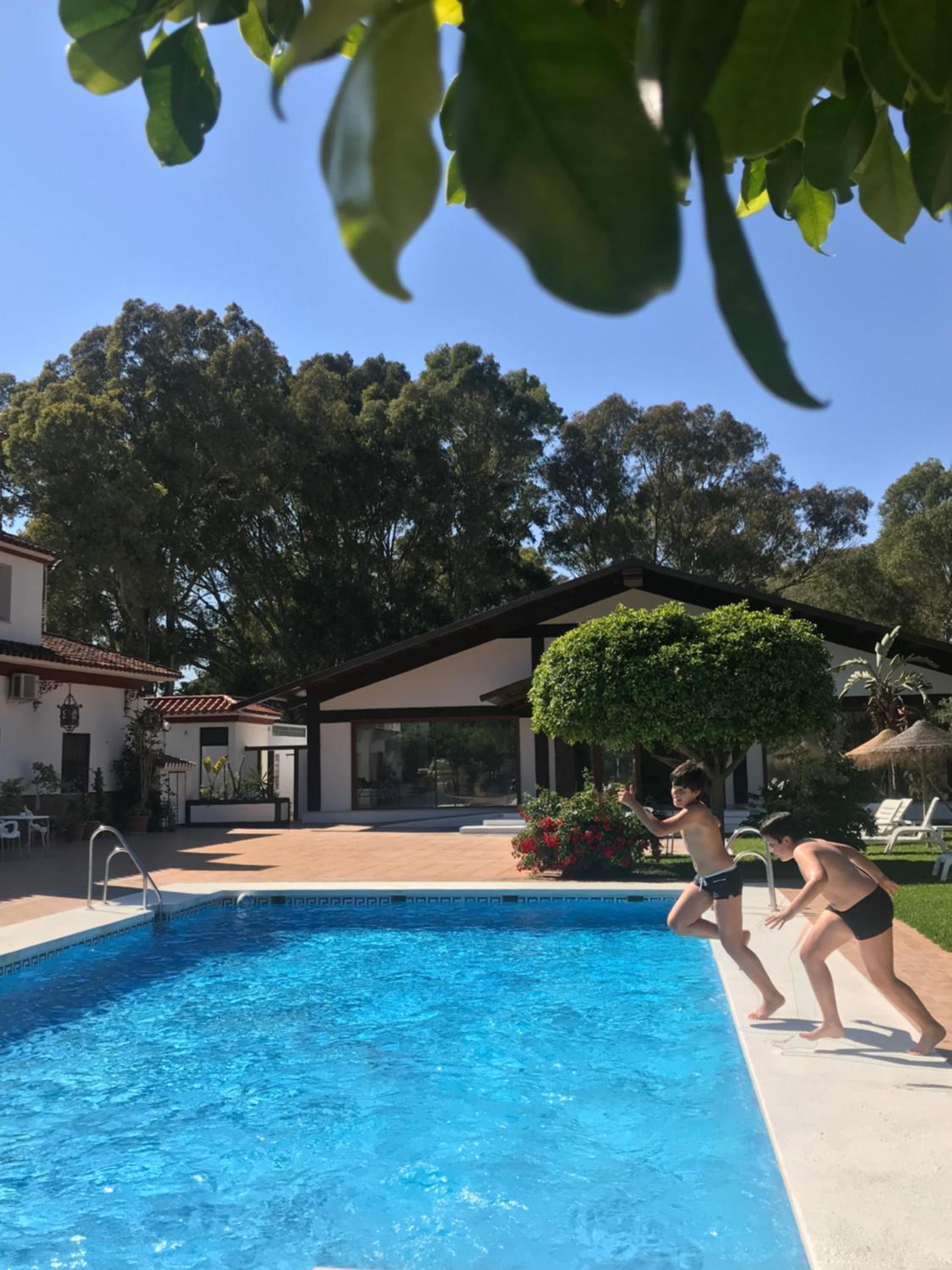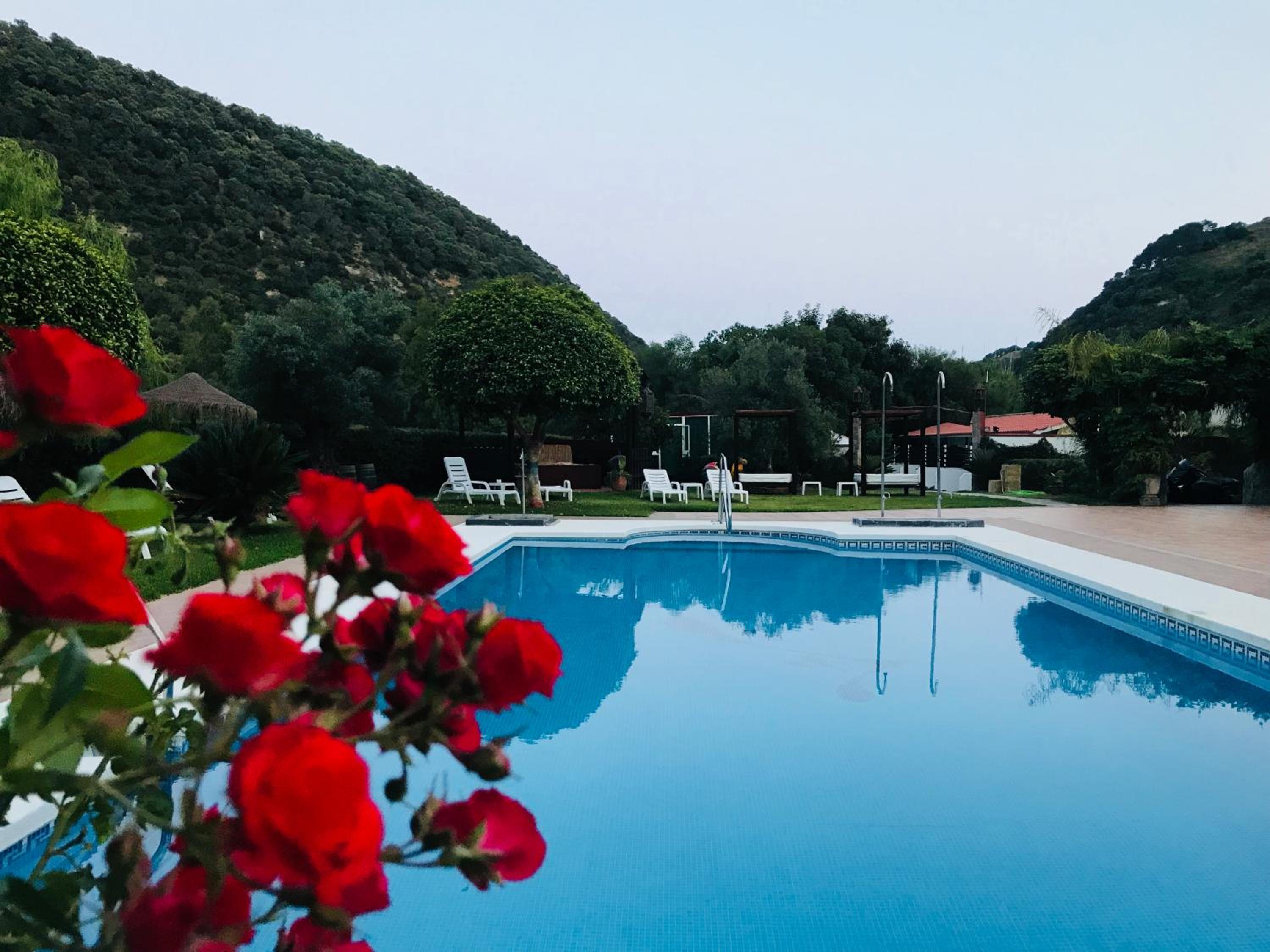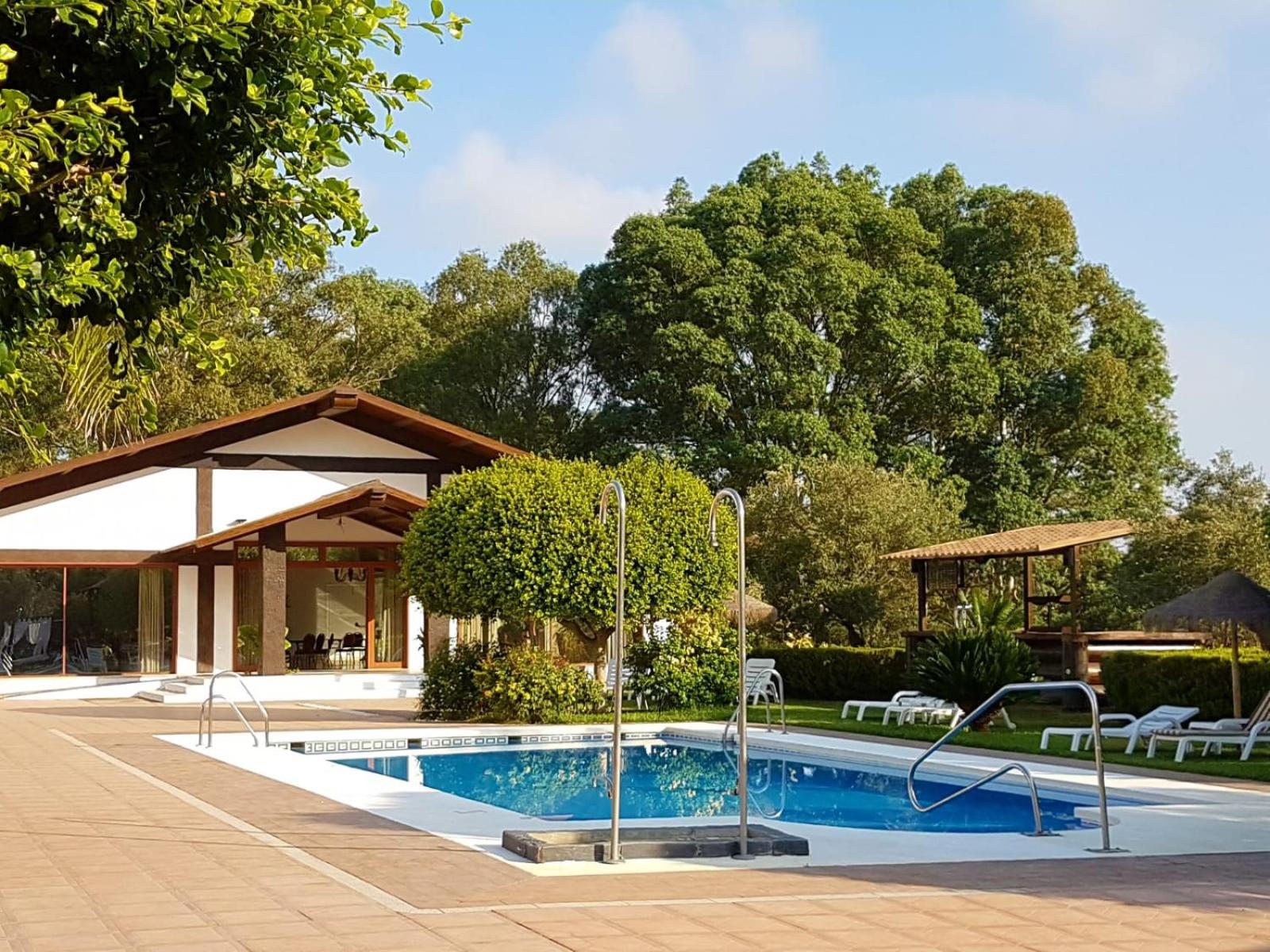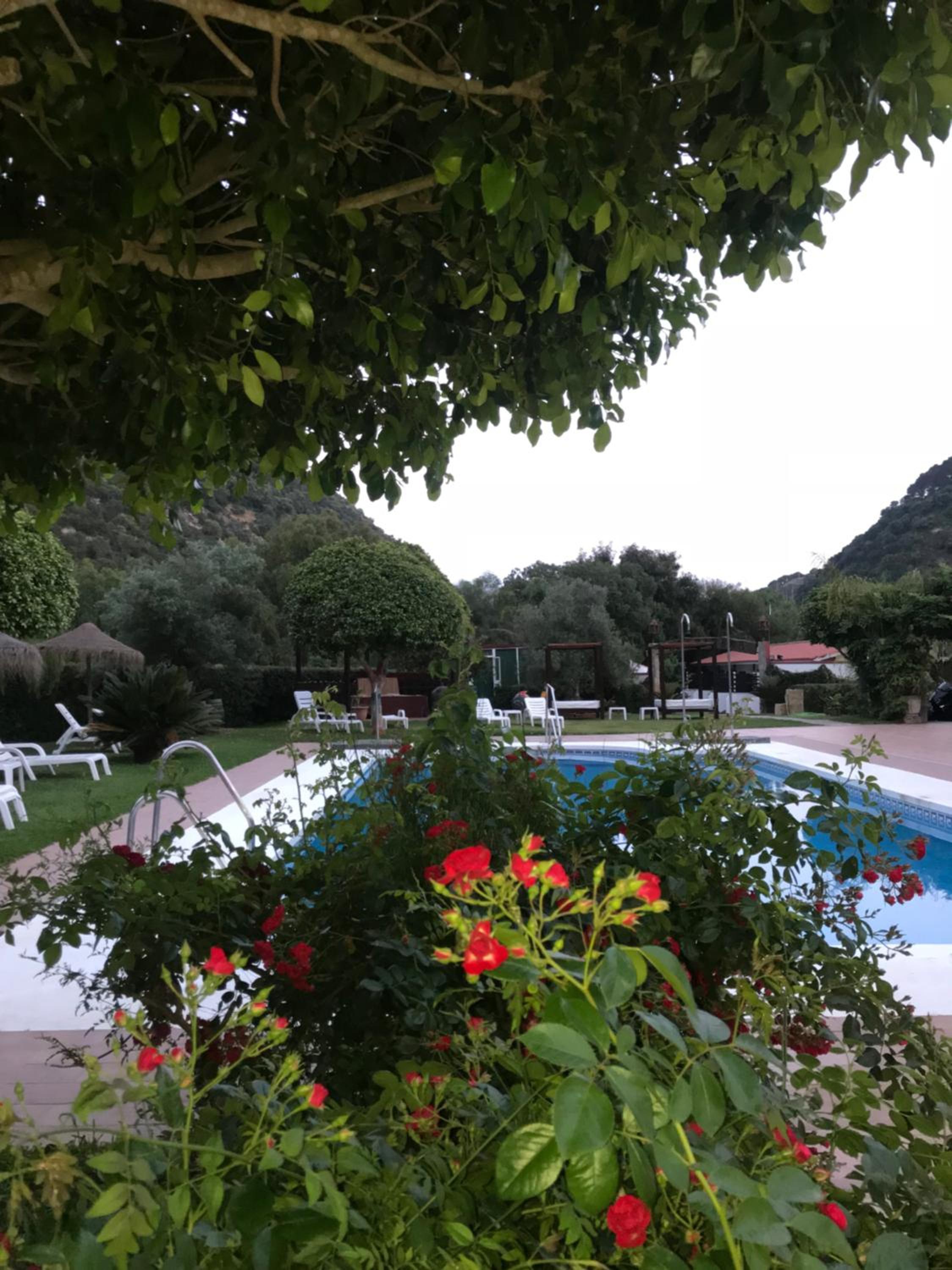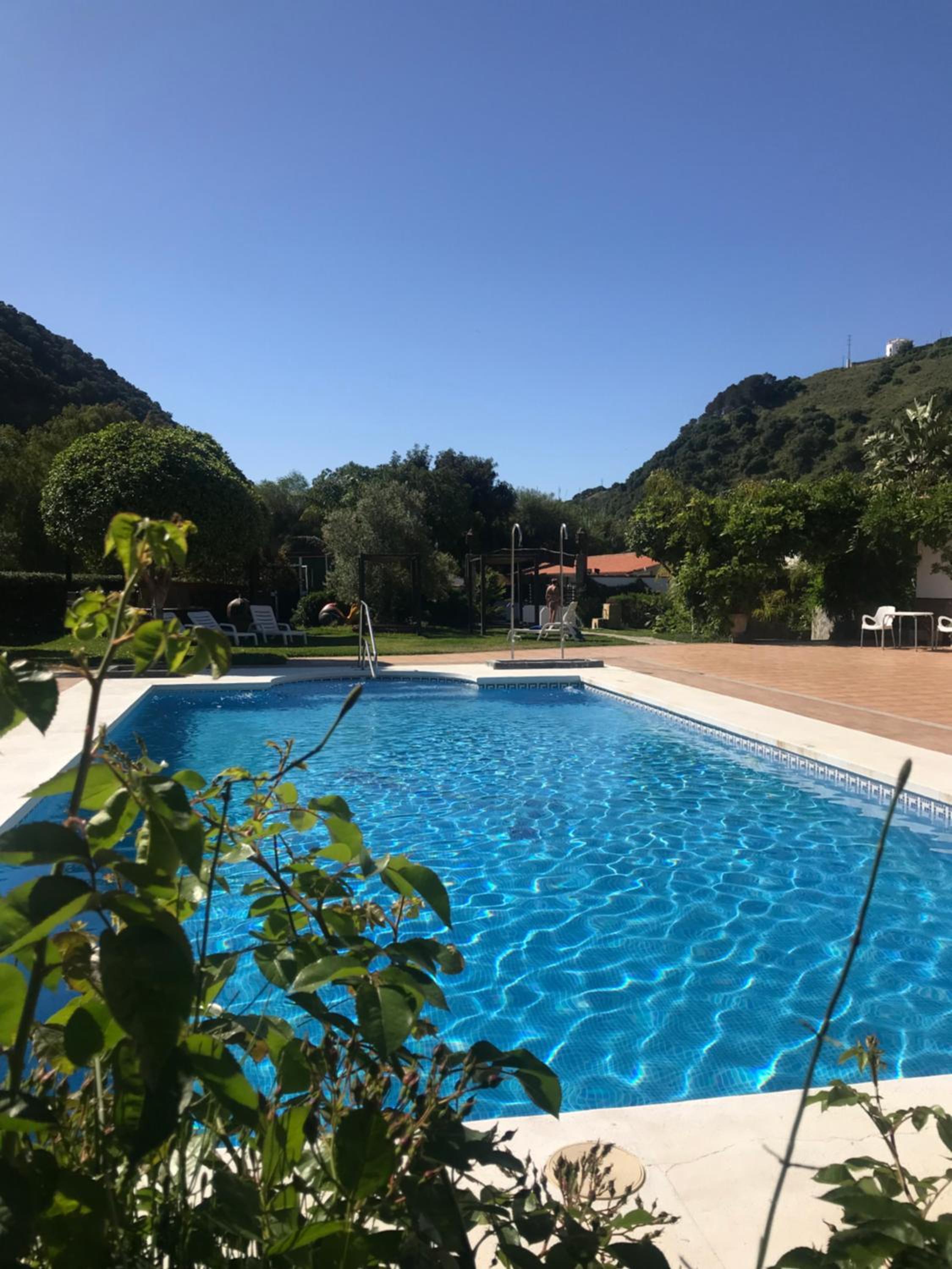 La zona del jardín y piscina es increíble. Para los días que haya Levante por Cádiz es una alternativa muy buena. Bastante tumbonas y sombrillas para estar en la sombra y cómodo.