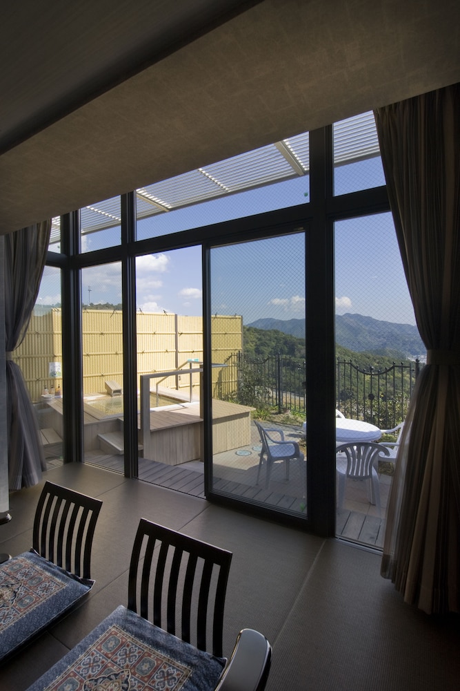 露天風呂付きのお部屋を頼みました。朝食、夕食が付いてるプランで内容が何も書かれては無かったので 全く分からず宿泊だったのですが 舟盛り伊勢海老付きお造りや 食べきれないほどの海の幸に感動!部屋風呂も気持ちよく入りましたが 大浴場も高台からの海が素晴らしい眺め!娘達にも大浴場に行っておいでと早朝から起こして行かせましたが綺麗で感動して帰ってきました!またゆっくり滞在したいなぁっと 家族で話しています!