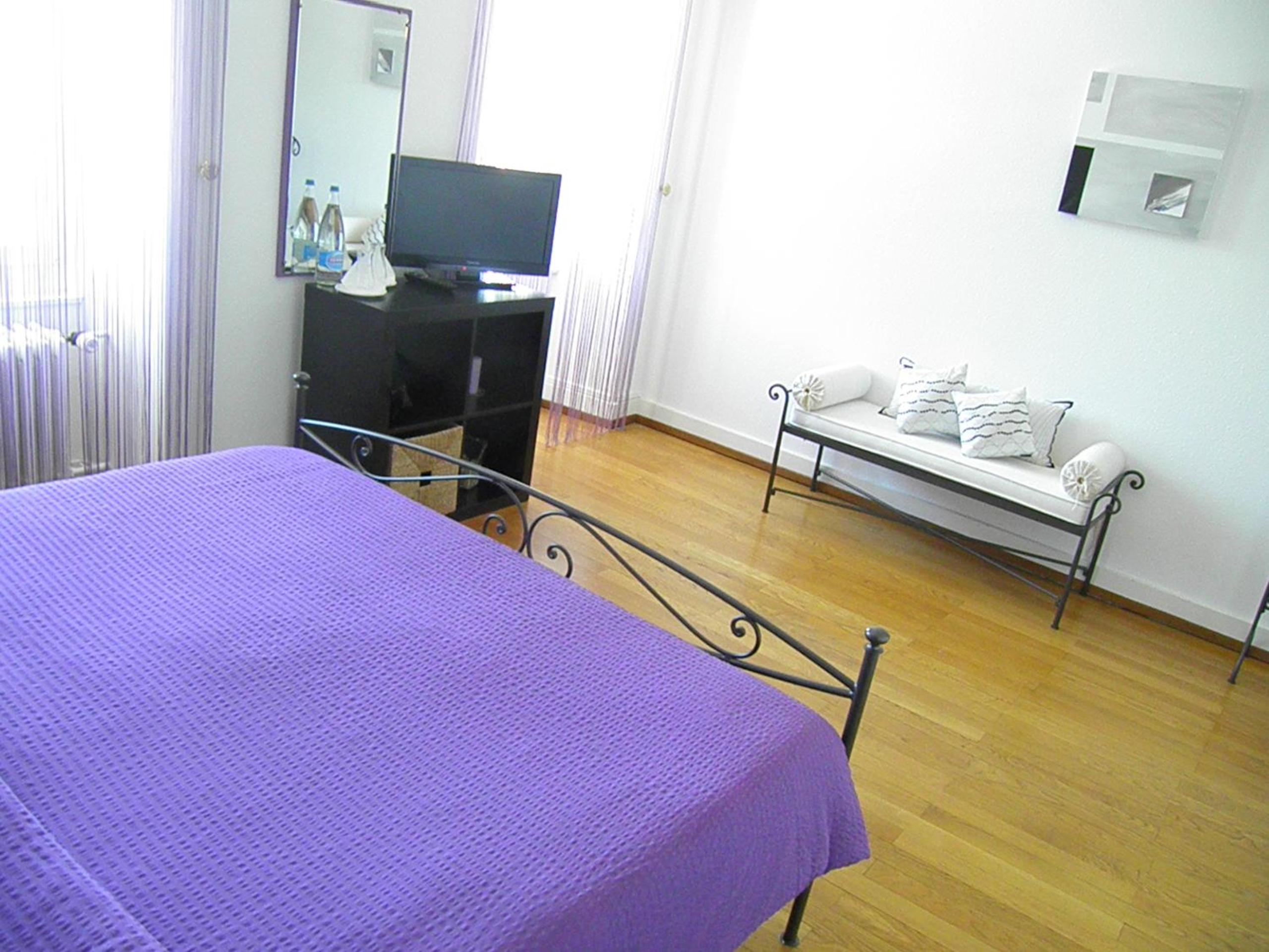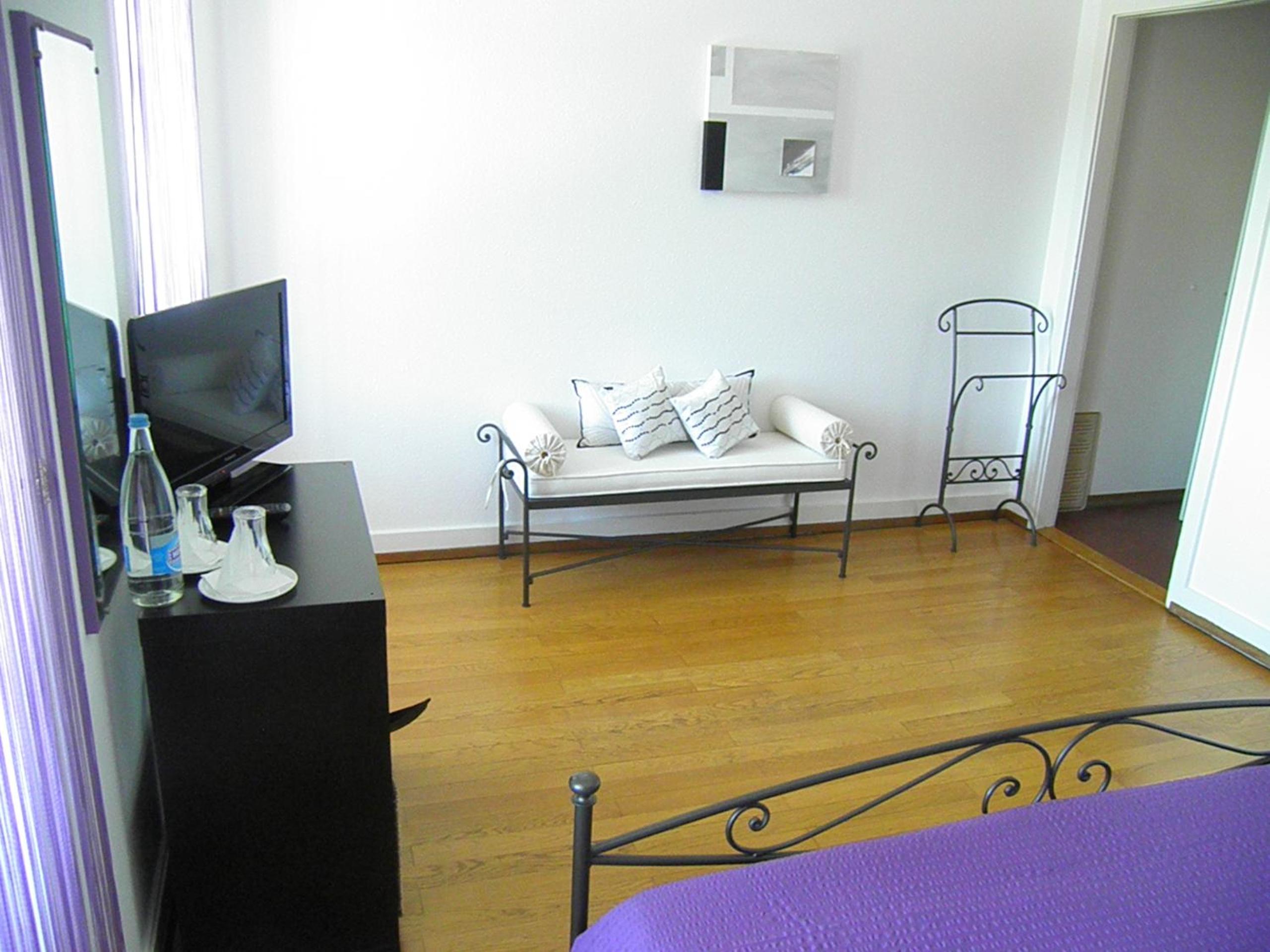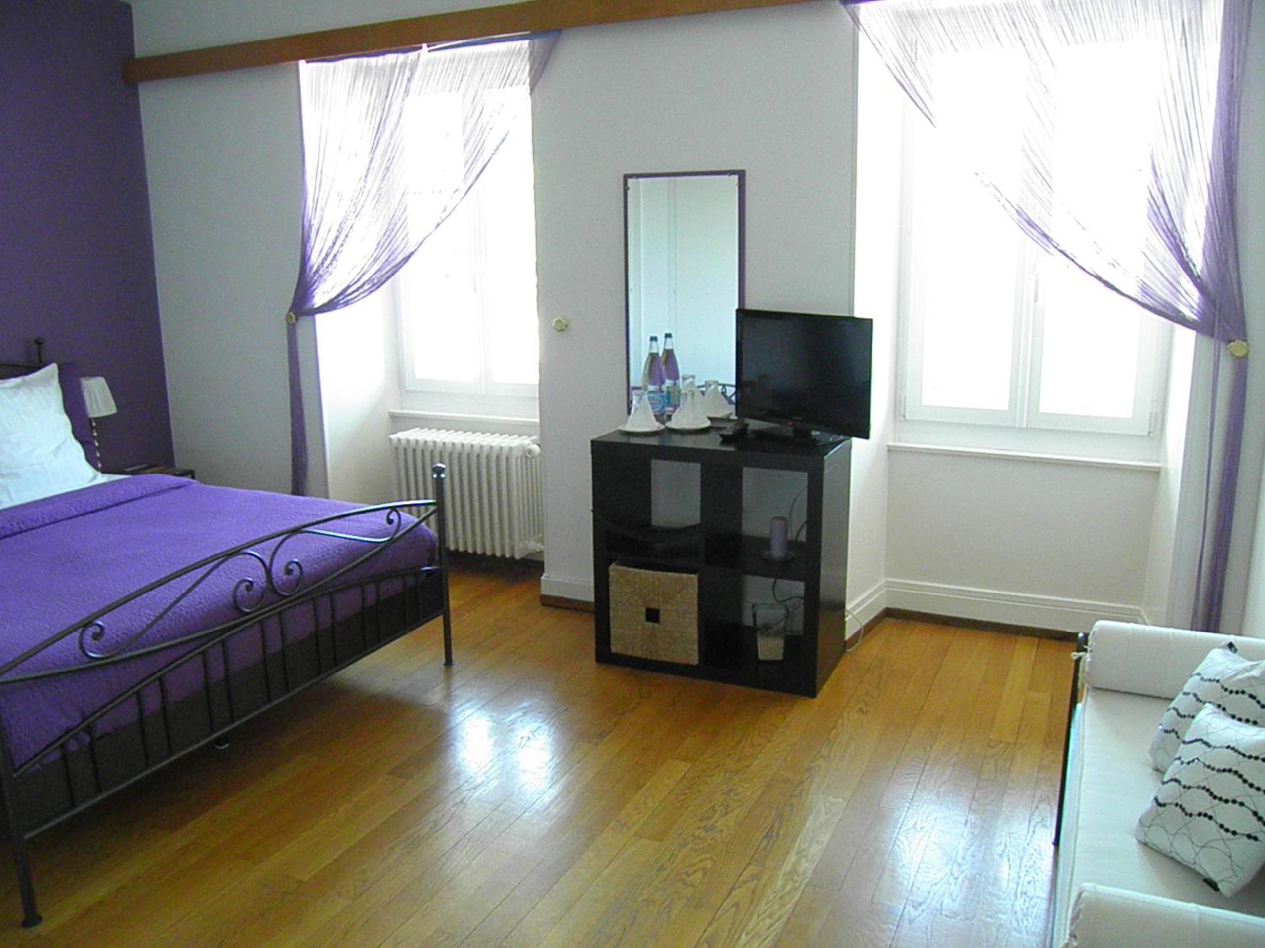 Indulge in our guest rooms, each featuring a distinct color theme, parquet flooring, and panoramic views of the mountains and the lake. Relax in comfort with amenities like a private bathroom and a flat-screen TV.
