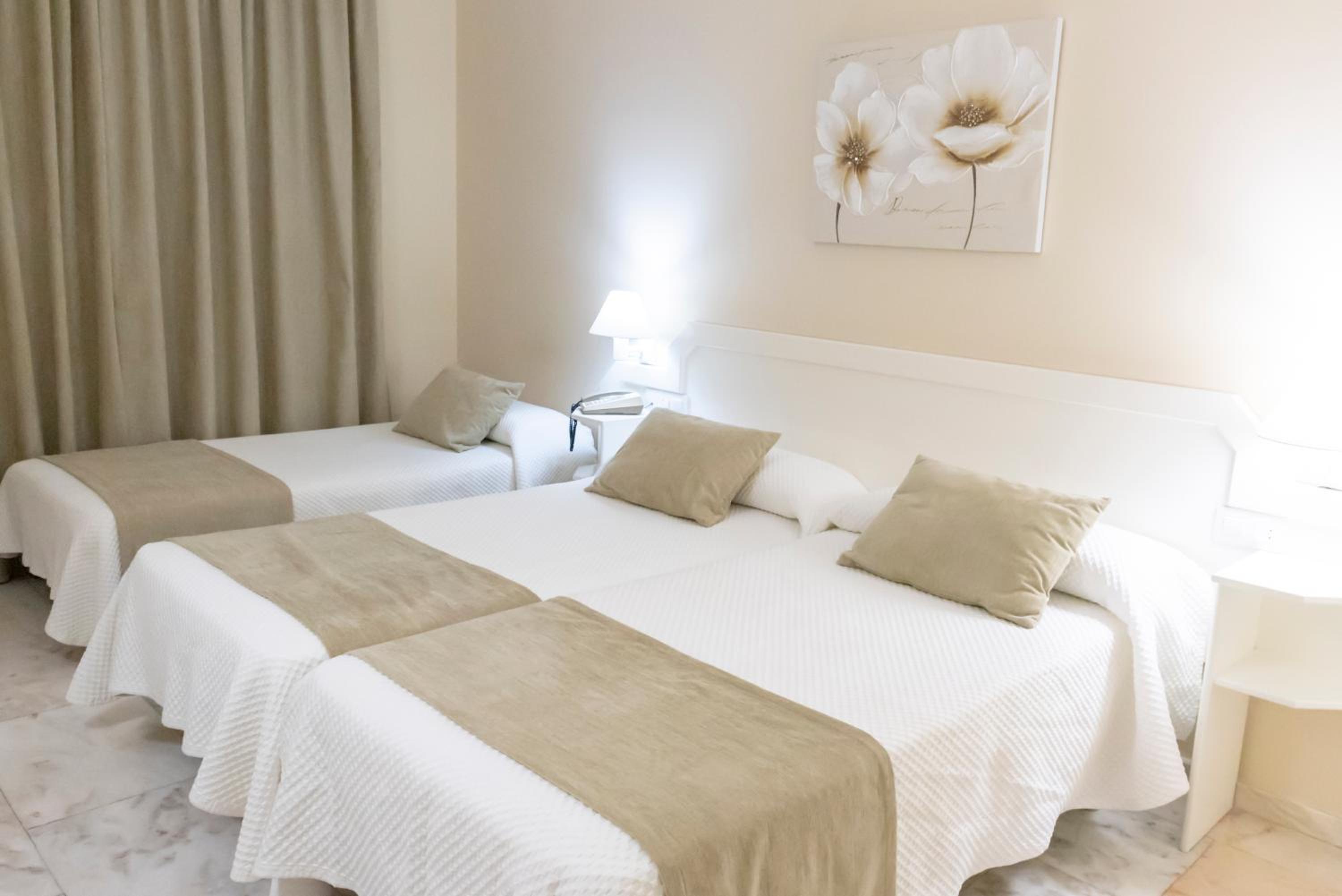 The rooms at Hotel Ramomar feature a simple and modern decor, offering a comfortable stay with amenities such as a flat-screen TV, air conditioning, and complimentary Wi-Fi access.