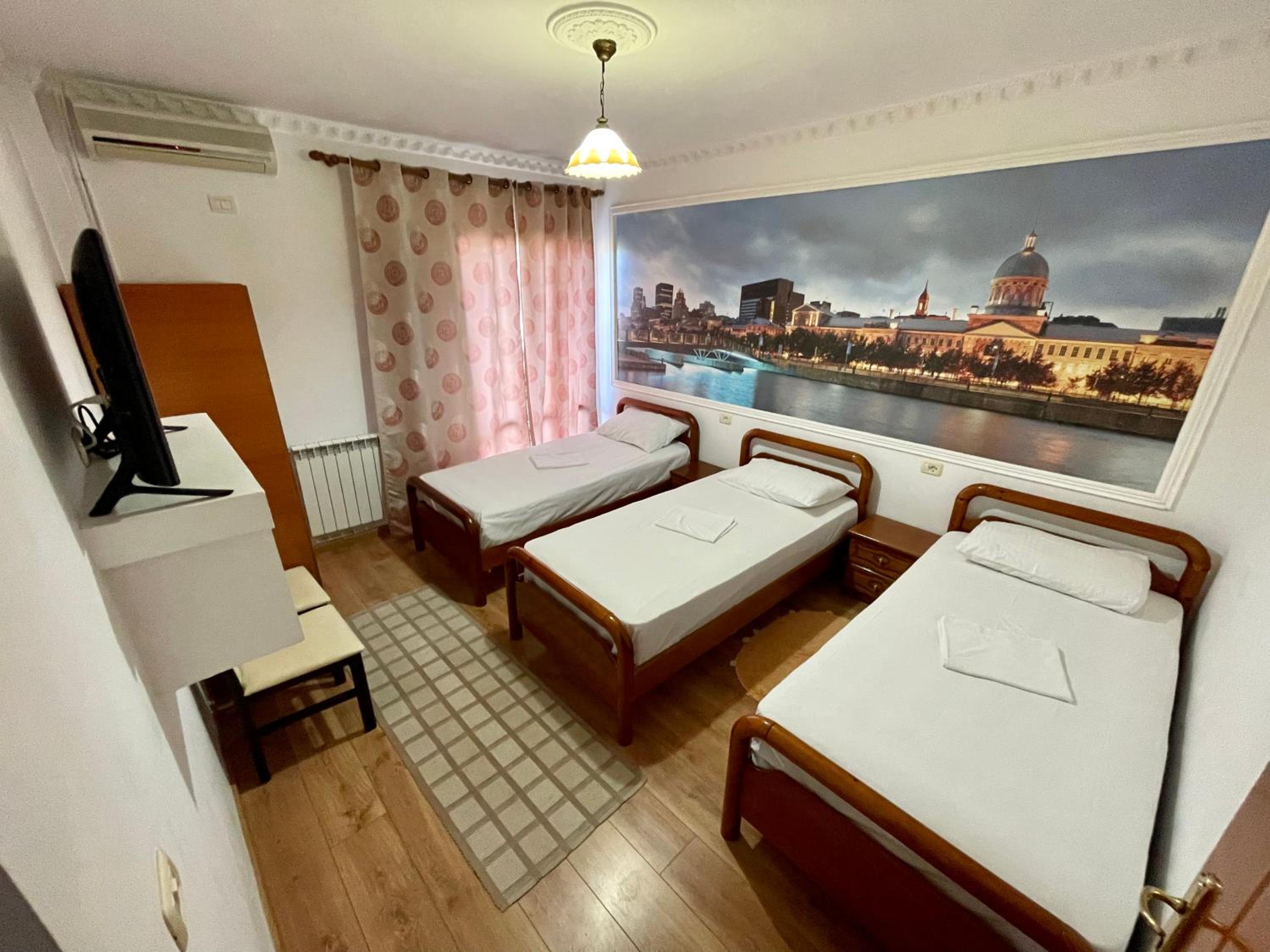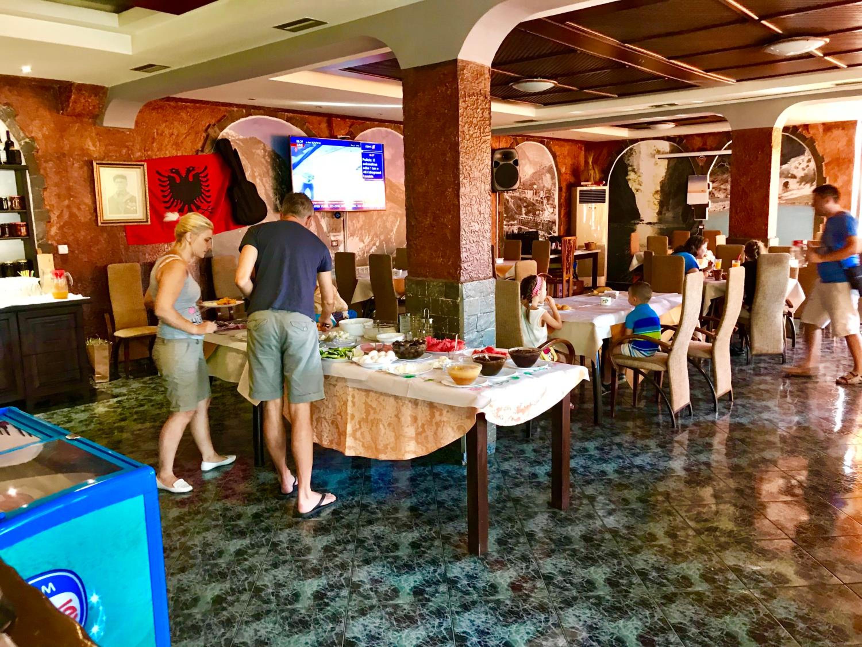 Het personeel was super vriendelijk en behulpzaam. Het hotel heeft een parking recht tegenover de deur en ze zijn zeer reactief via whatsapp. Ze hielpen ons bij het organiseren van Raften en gaven ons tips over waar te gaan eten. Een van de vrienden moest ook vroeger weg met de bus, hiermee hielpen ze direct mee en belde zelf de buschauffeur om te maken dat onze vriend mee kon en extra info te krijgen. De Albanese vriendelijkheid was hier zeker aanwezig!