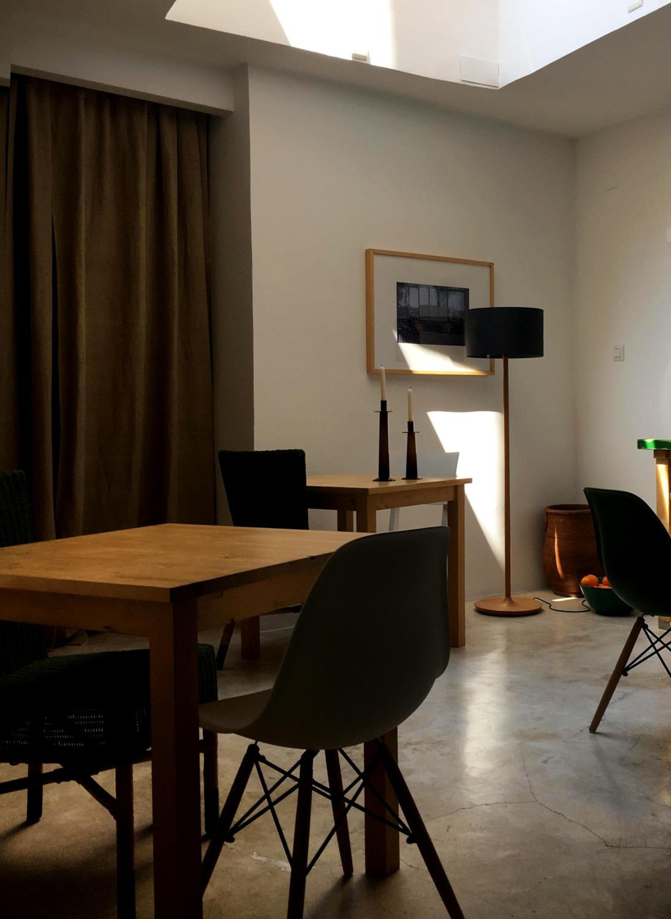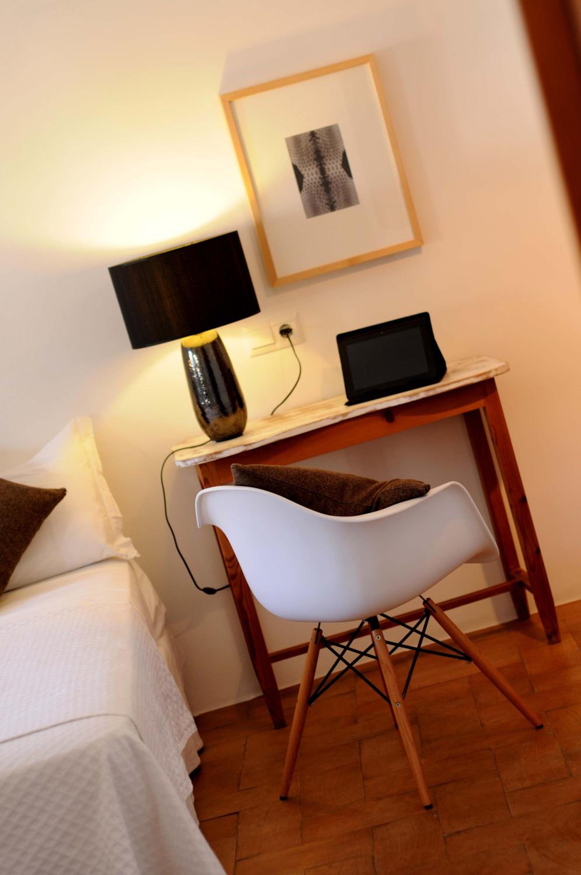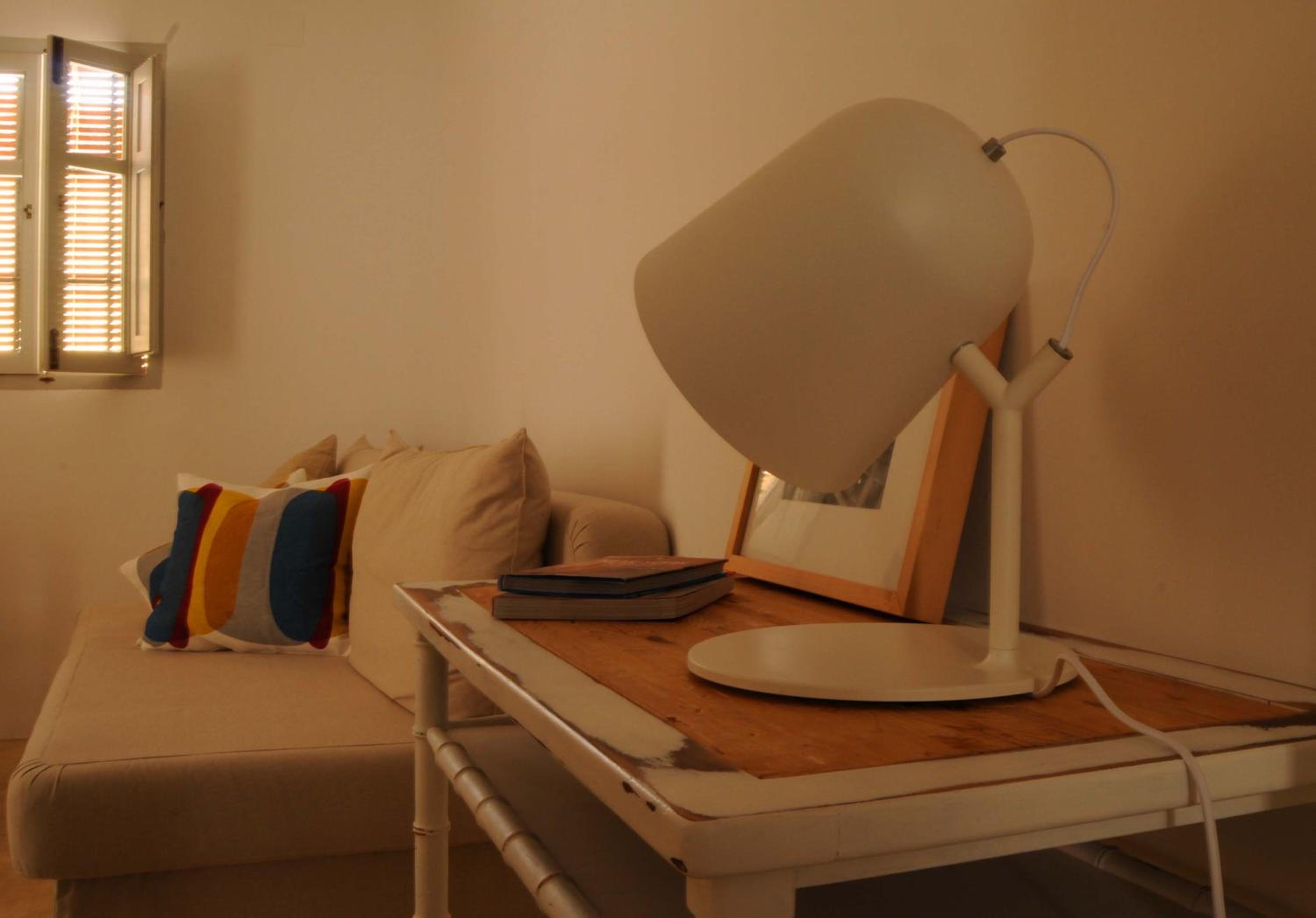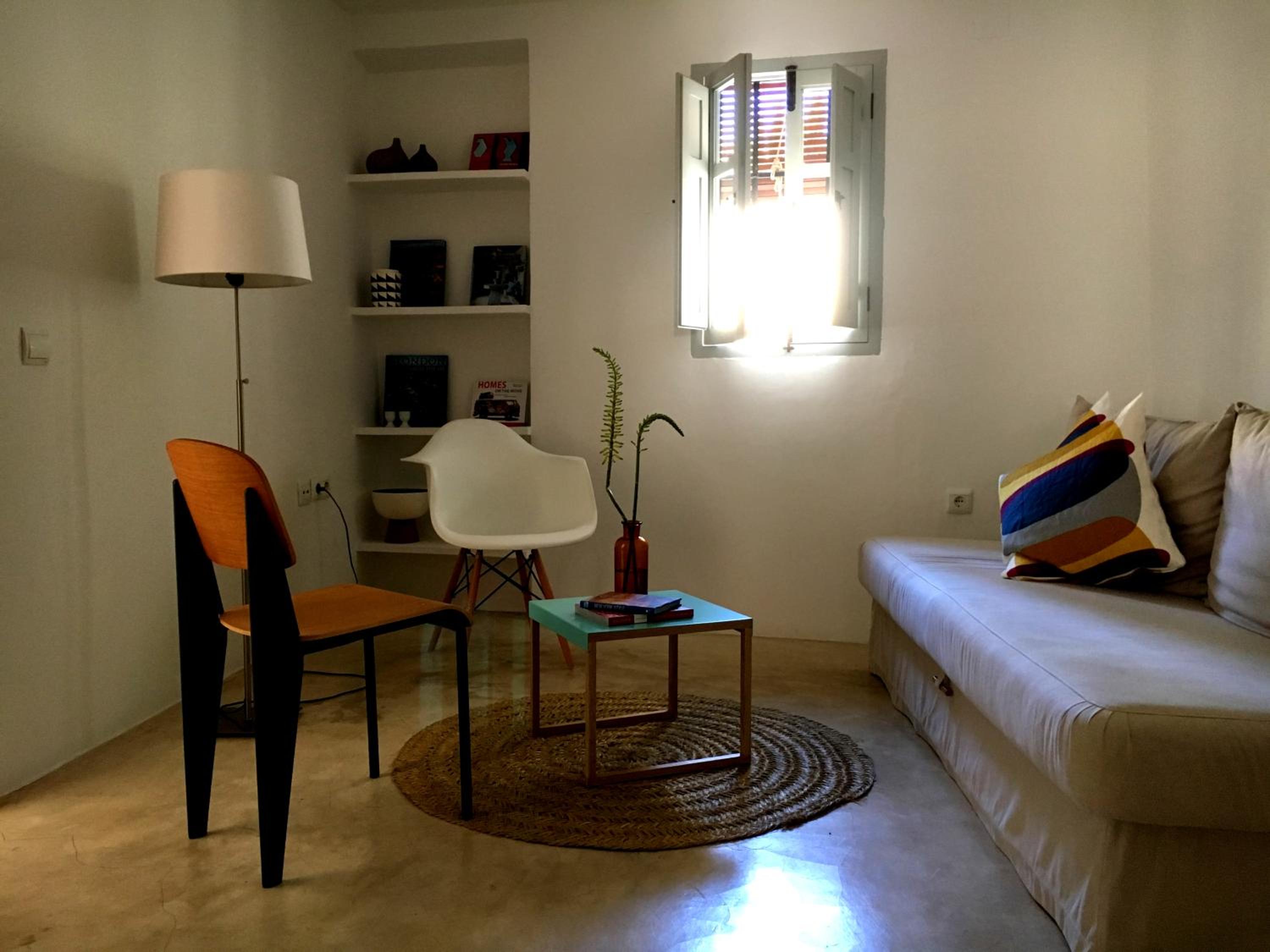 Stylish Rooms with Modern Amenities: Experience comfort in rooms featuring whitewashed walls, terra cotta floors, air conditioning, and free Wi-Fi.