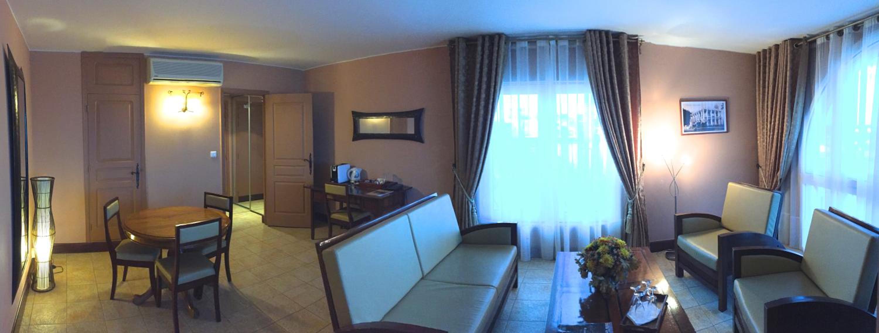 Bon petit déjeuner, personnel adorable, situation idéal rue Colbert. La piscine et grande et très belle. Chambre spacieuse et propre. Pas de panne de courant en continue. Une petite coupure d'eau , mas vite rétablie.