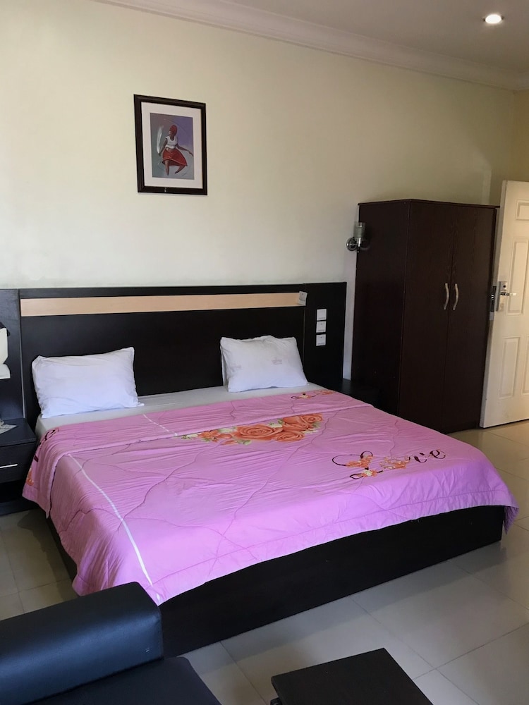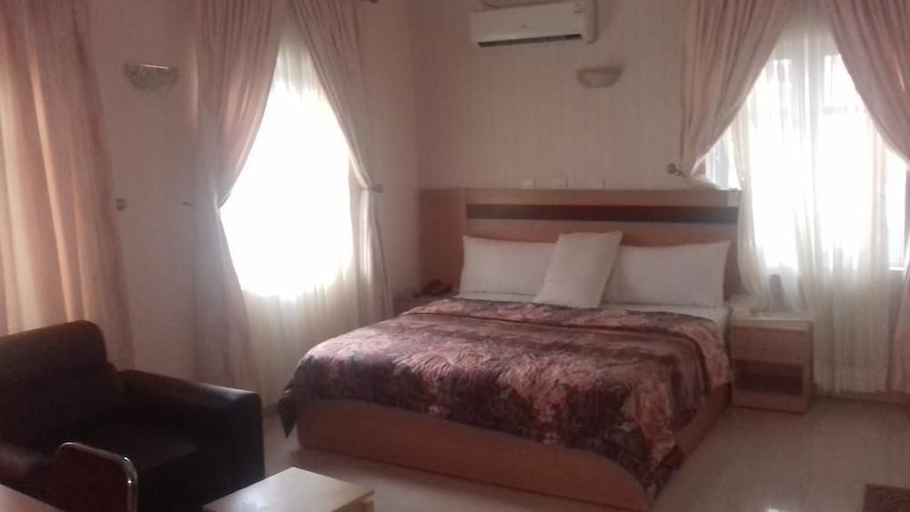 Garden Views & Services Take in scenic garden views while enjoying complimentary wireless internet and concierge services. Dining & Room Comfort Dine at the hotel's restaurant with a chic bar/lounge or opt for convenient room service. Enjoy deep soaking bathtubs, rainfall showerheads, and flat-screen TVs with satellite programming in your air-conditioned room. Additional Amenities Benefit from limo service, dry cleaning, and a 24-hour front desk. Explore nearby attractions like Jabi Lake Mall and Nigerian National Mosque. Book your stay at Sumed Suites for a delightful Abuja experience.