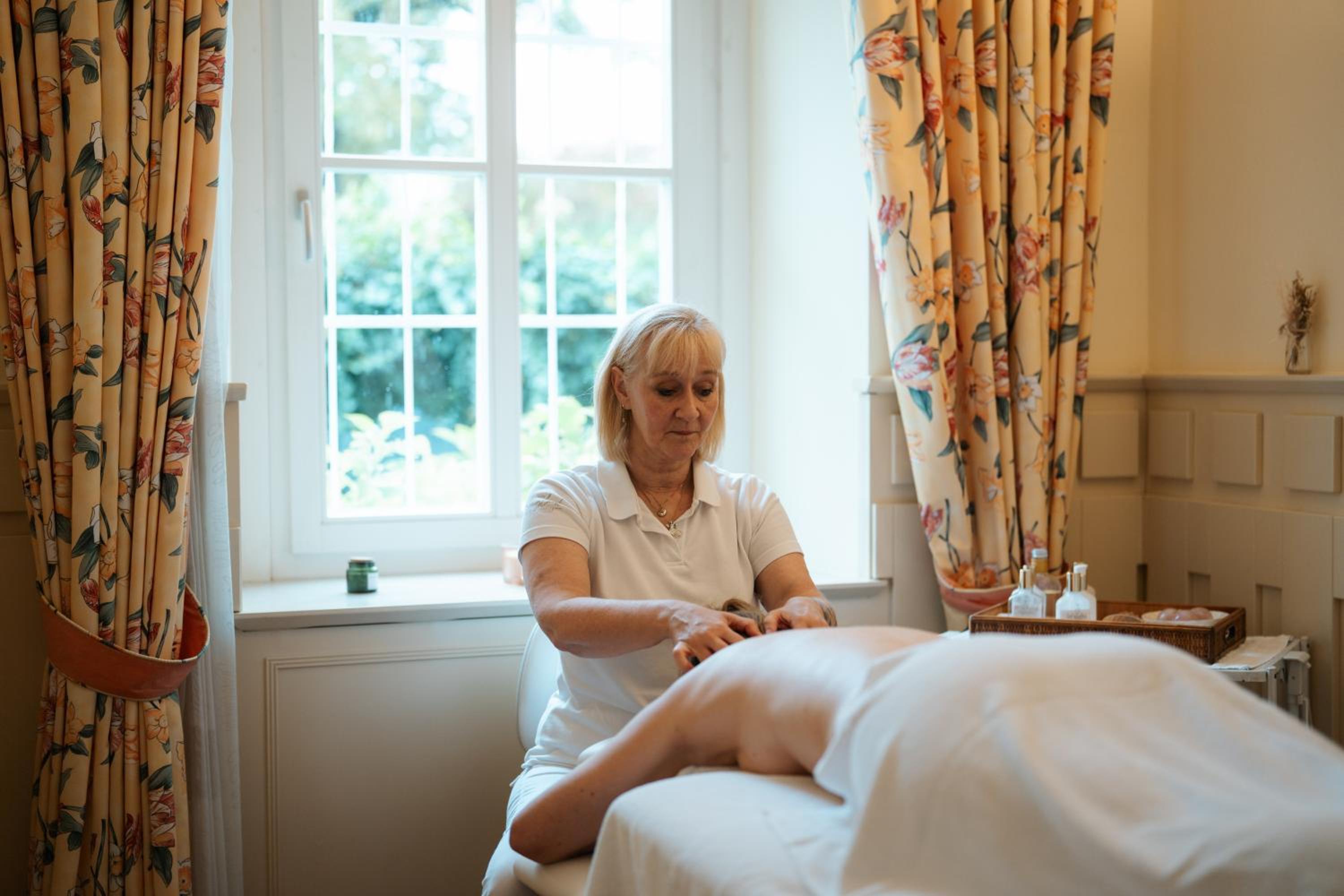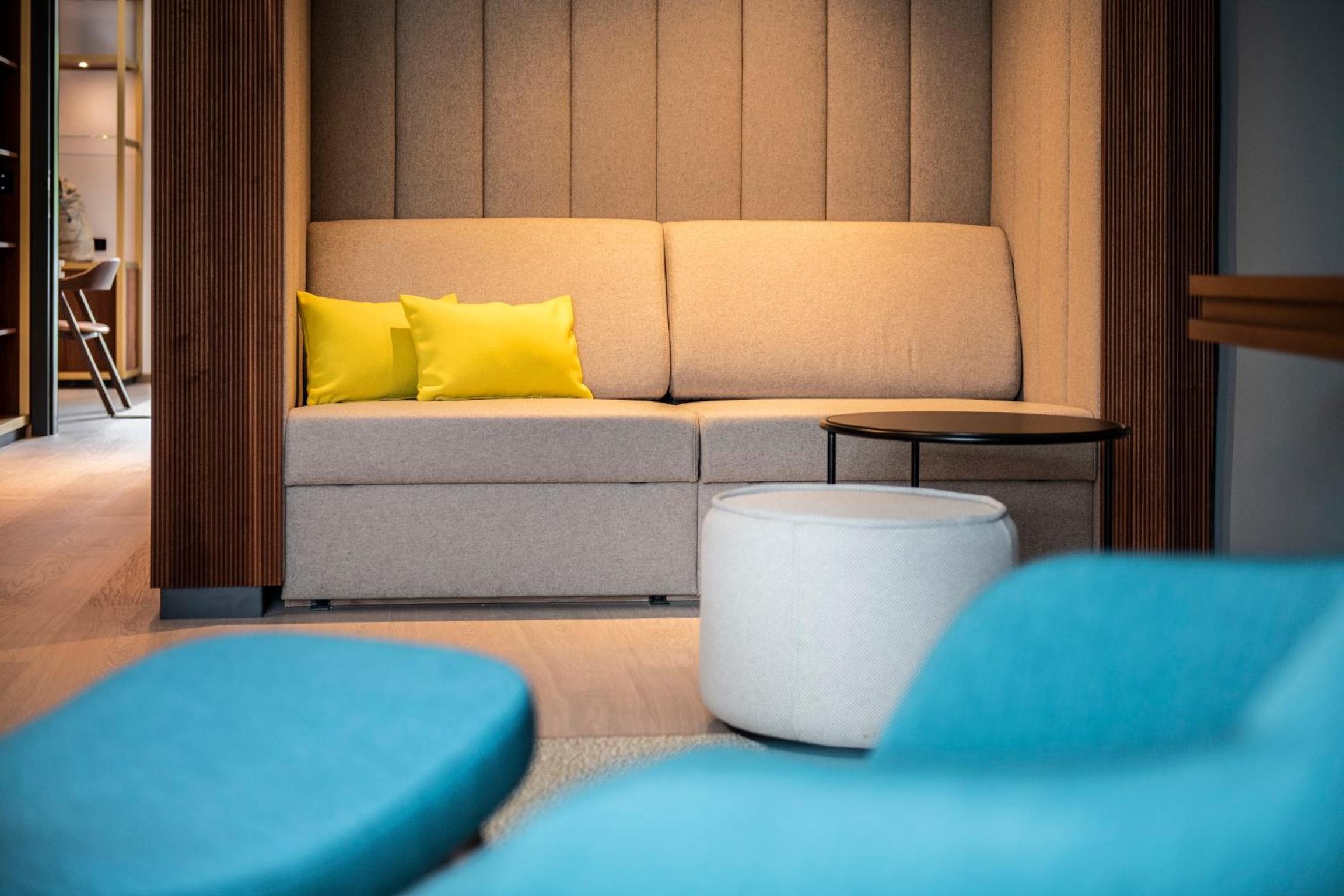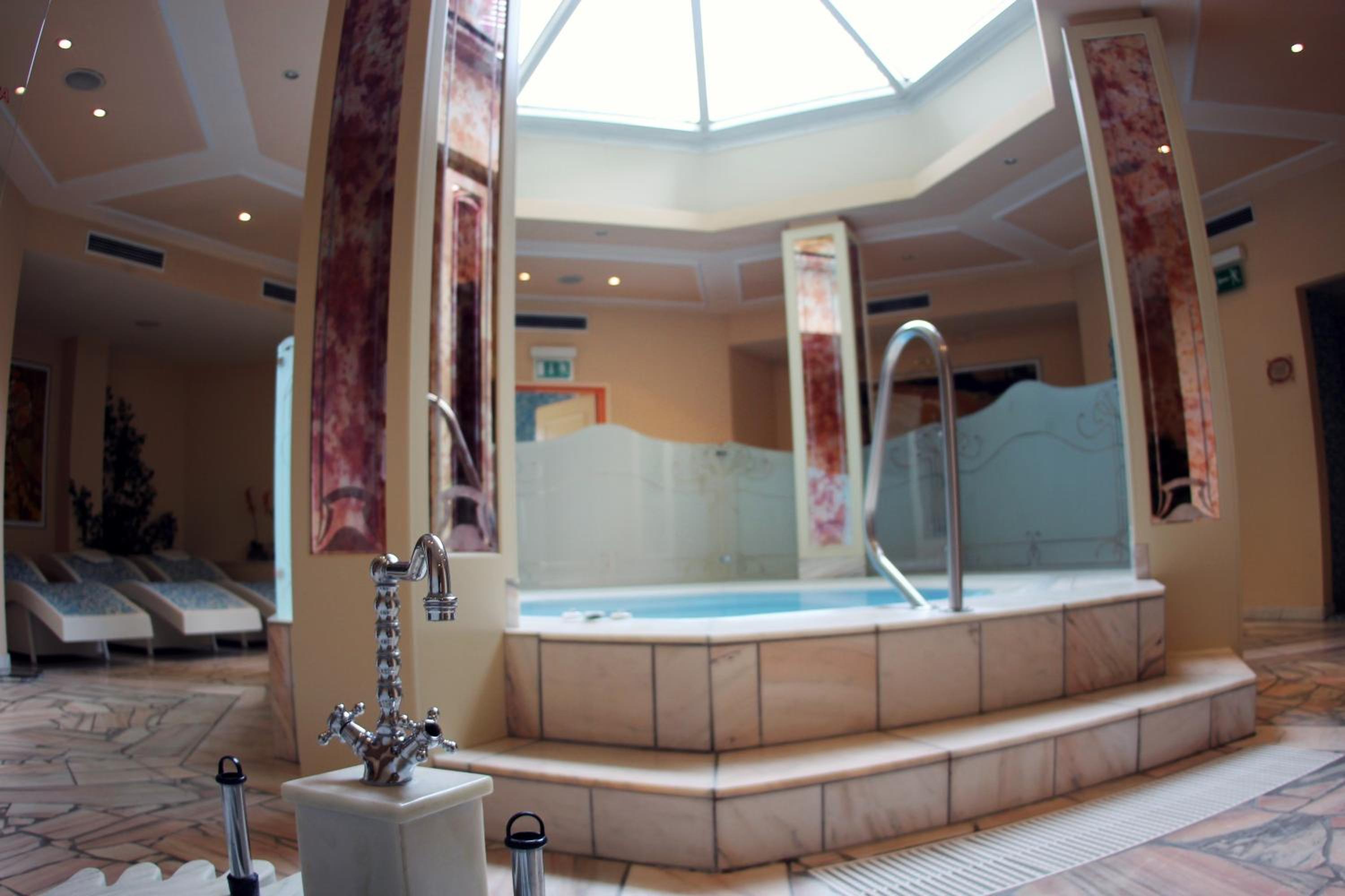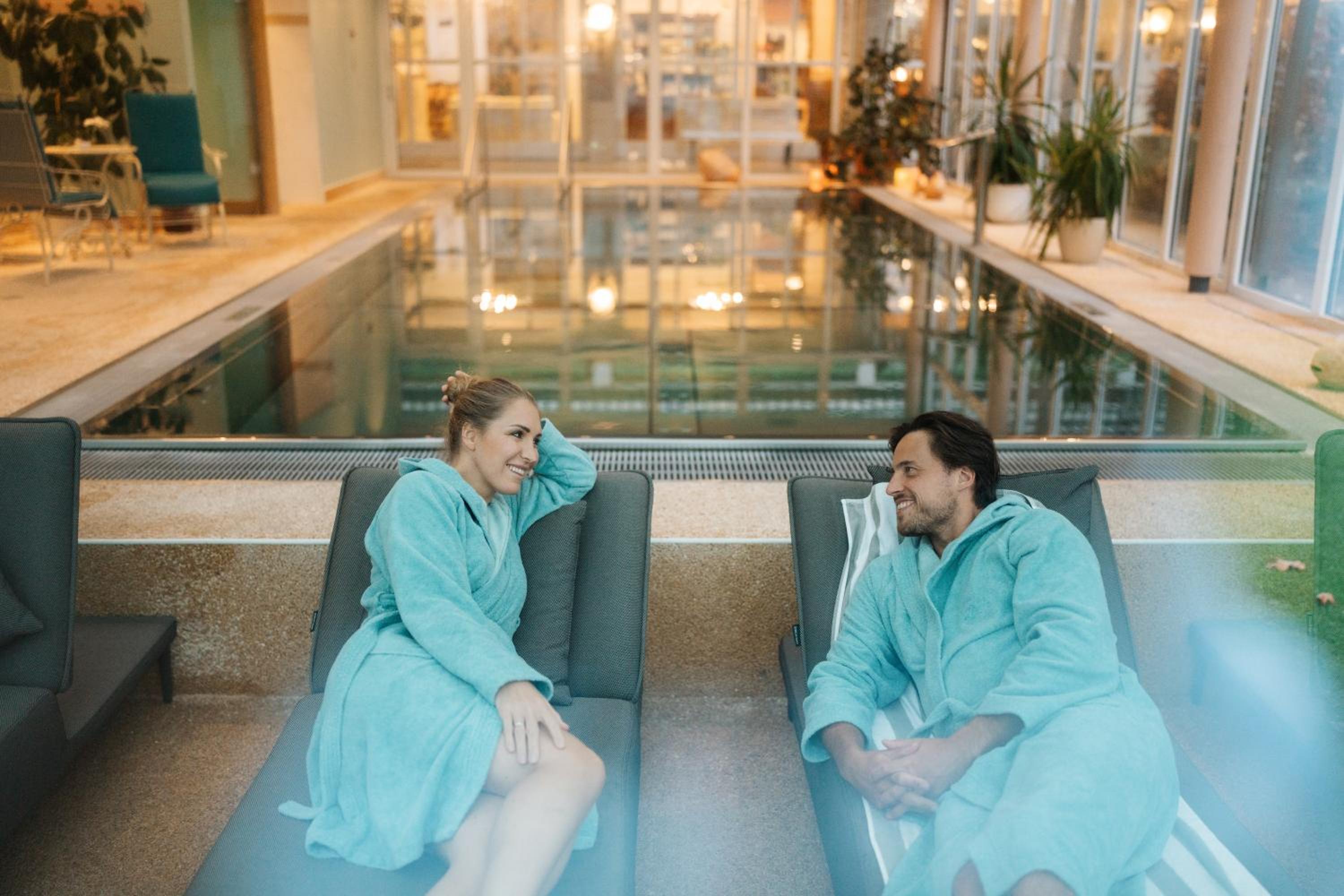 Indulge in the beauty and wellness oasis L'Aqua with various saunas, a steam bath, hot tub, and fitness room. Treat yourself to soothing treatments like mud packs or enjoy massages using premium products.