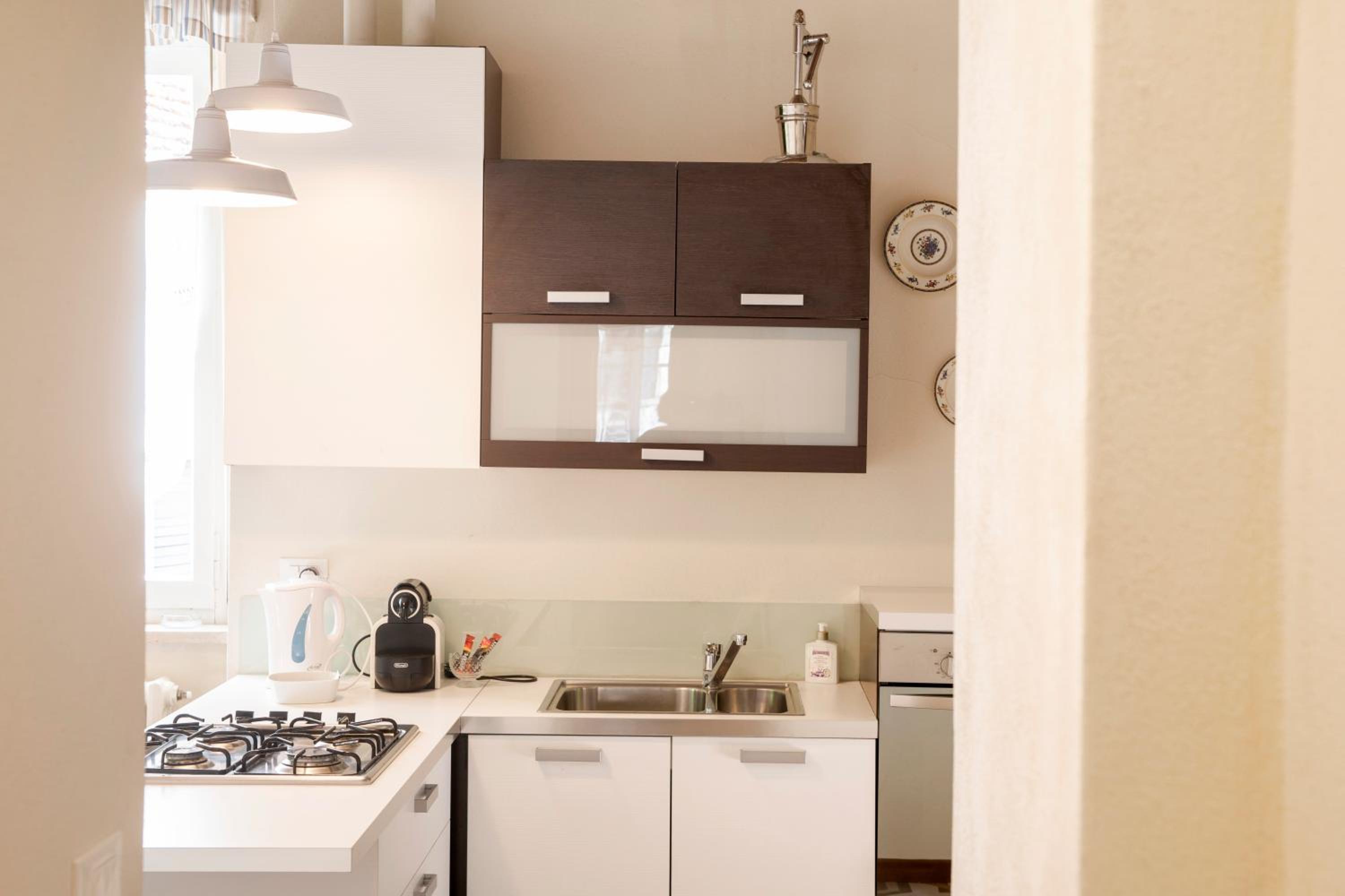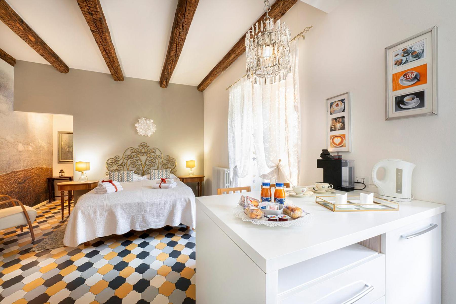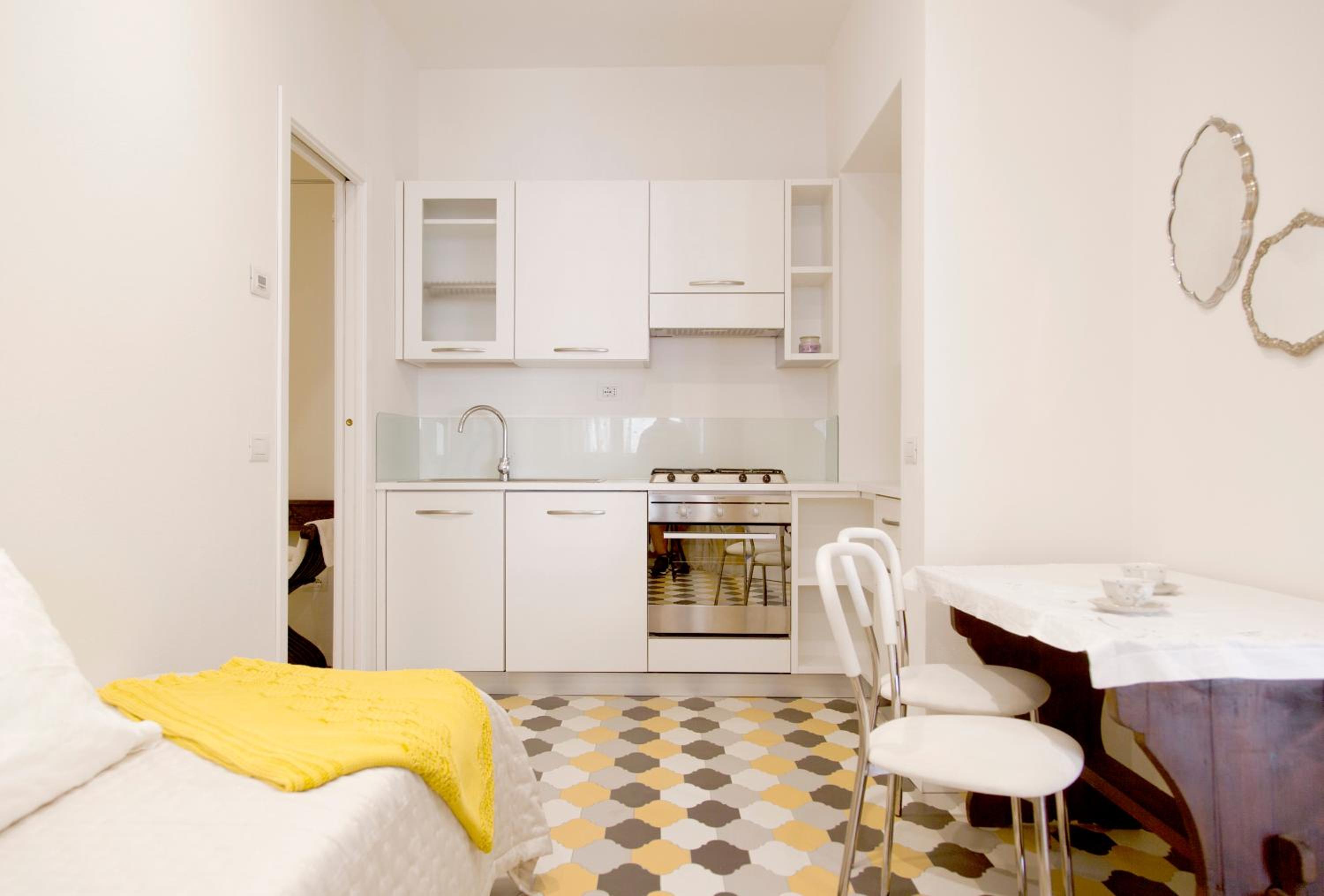 Experience the perfect blend of history and comfort in our fully furnished apartments, each equipped with a kitchenette, TV, and either tiled or wooden floors. Some units even feature a convenient washing machine, ensuring a hassle-free stay.