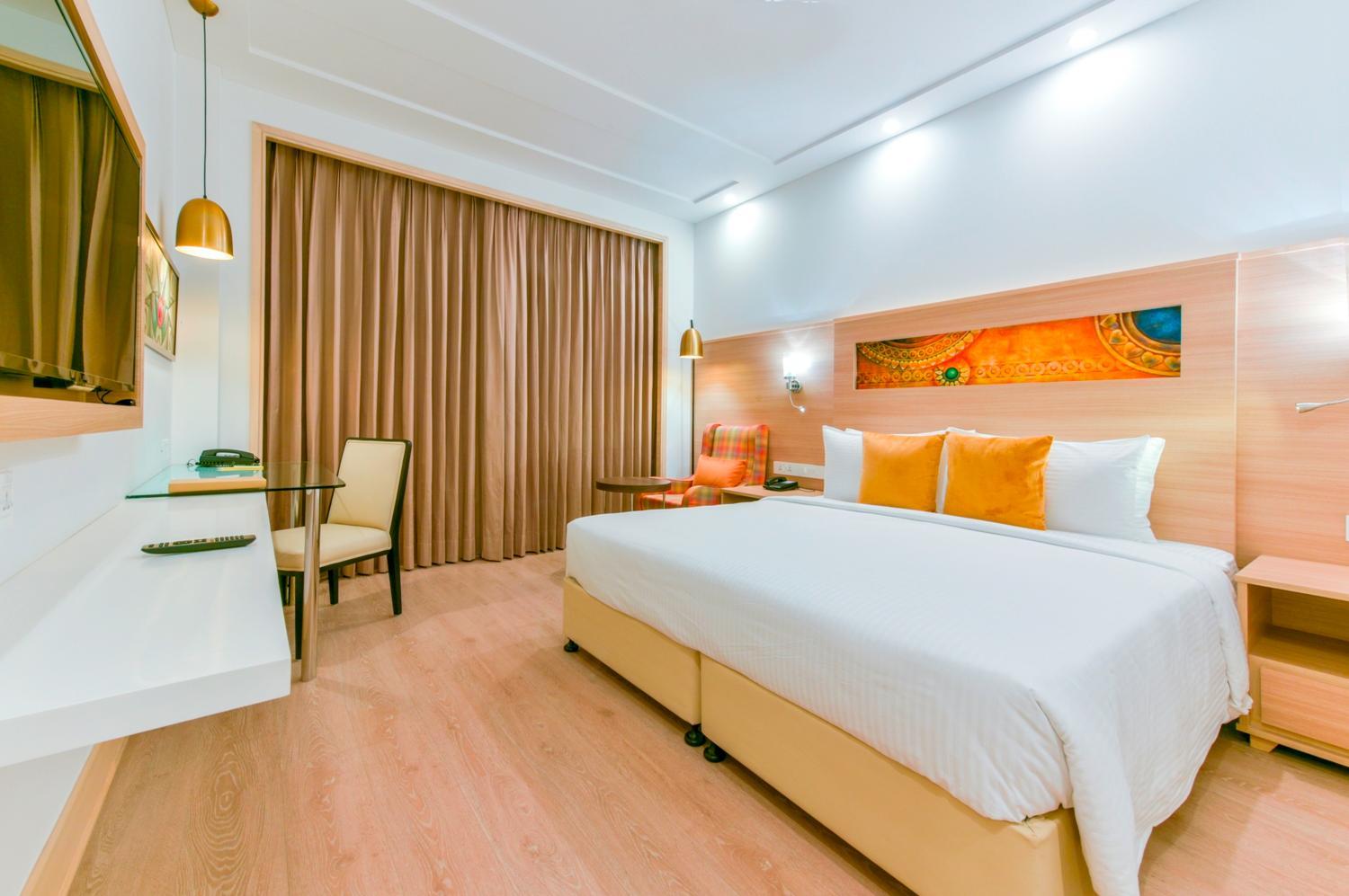 Lemon Tree Hotel Jammu offers stylish 4-star rooms with modern amenities, including free WiFi and a seating area. Each room features a private bathroom and a TV with satellite channels.