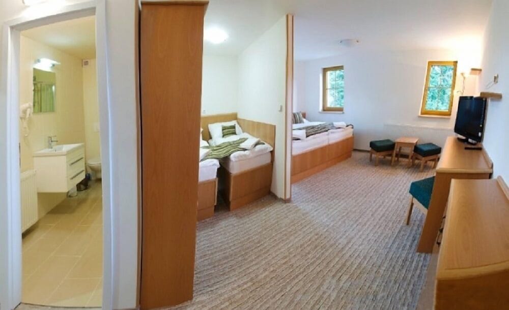 Ein schönes Hotel mit viel Potential, tolle Lage, tolle Aussicht. Leider ist es wieder mal so typisch für Tschechien in den Hotels: man ist zwar der zahlende Gast, hat aber immer das Gefühl, man stört das Personal . Man wurde gekonnt ignoriert, nicht gegrüßt... Zum Glück waren Gäste im Haus, die auch zukünftig in großer Runde kommen werden. Da klappte es dann mit einem guten Frühstück und auch im Restaurant wurde man nach 22 Uhr bedient. Dort war das Personal übrigens sehr gut und freundlich. Frühstück gibt es erste ab 9 Uhr. Am ersten Tag war um 9:30 Uhr noch nicht mal Personal anwesend. Wir mussten ohne Essen und Kaffee los, da wir einen Termin hatten 😟😔.