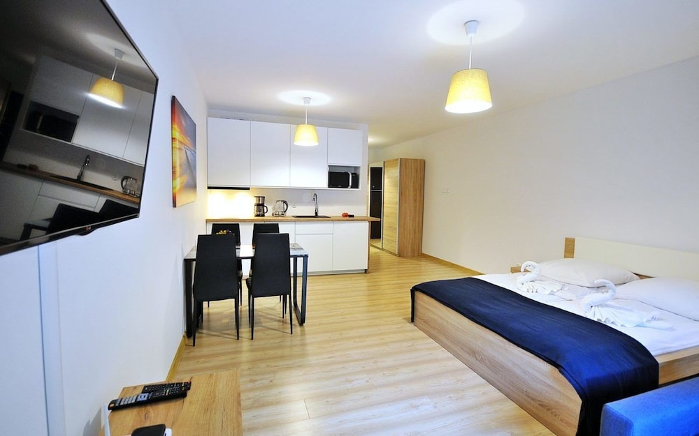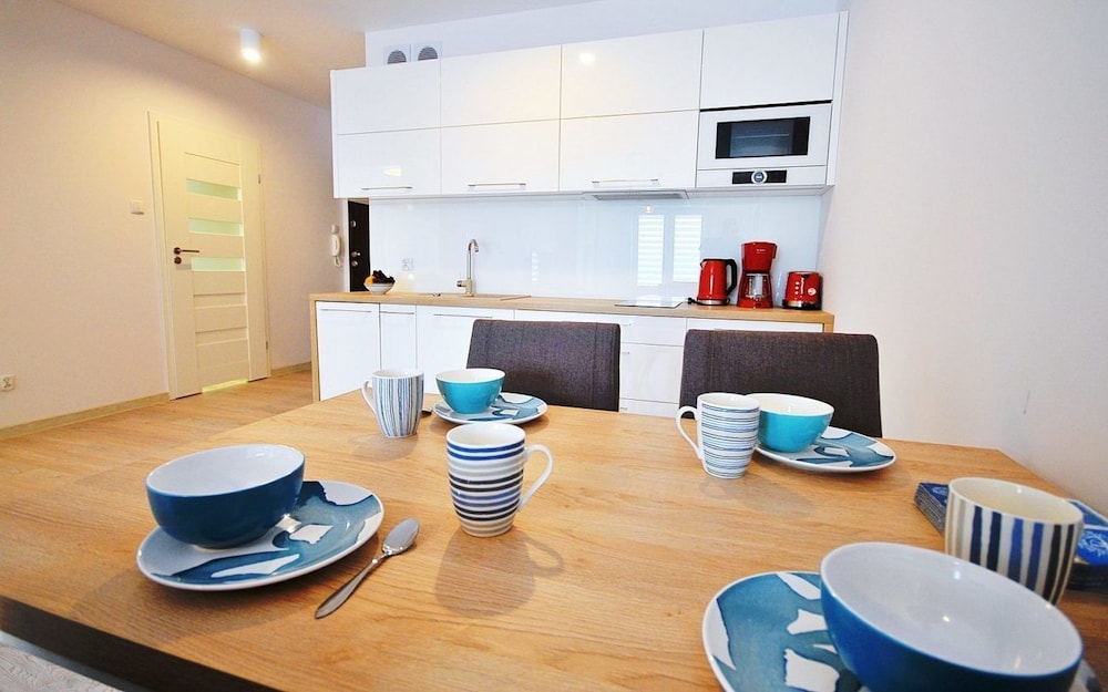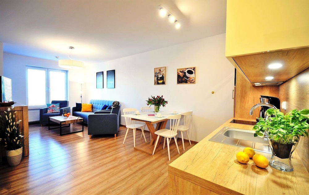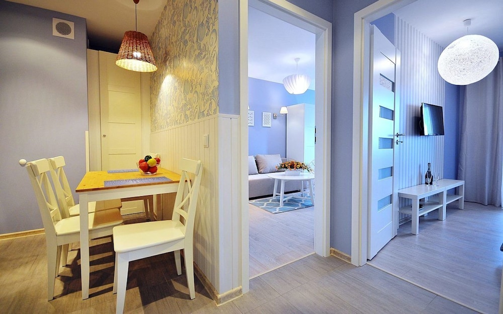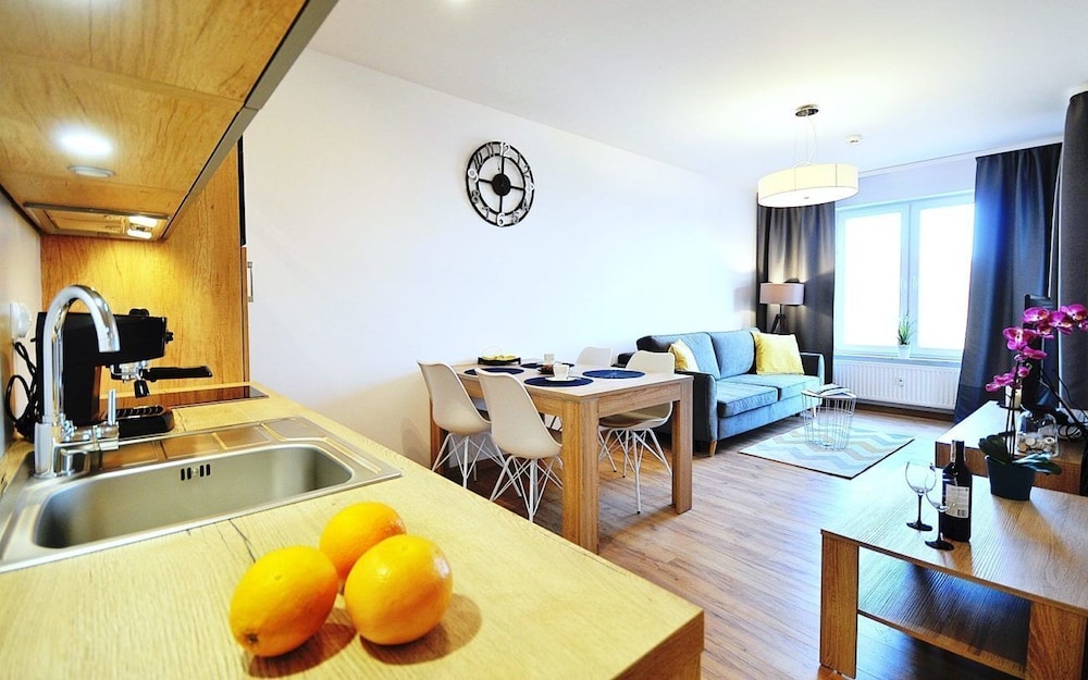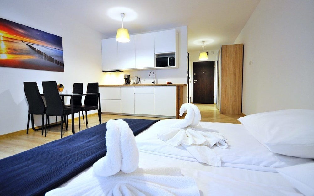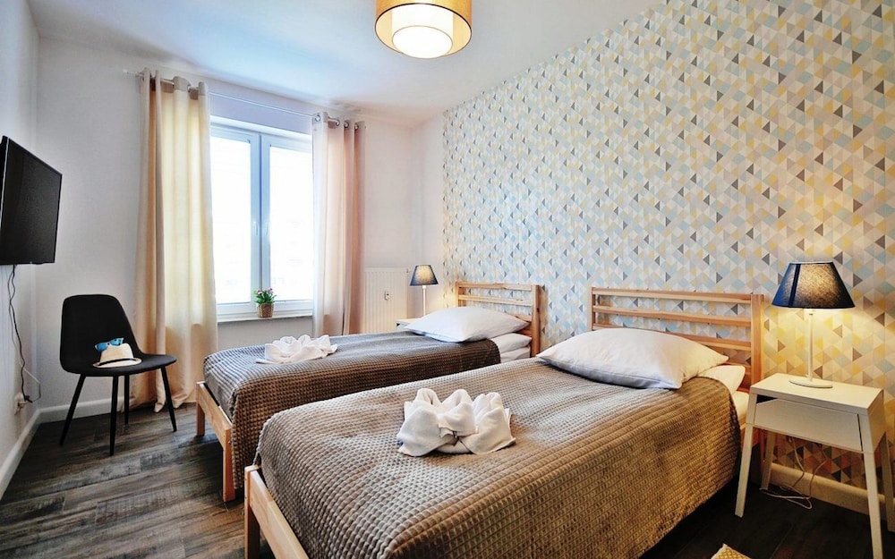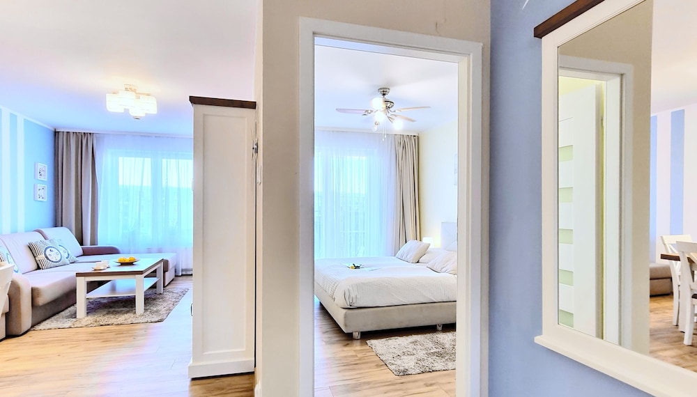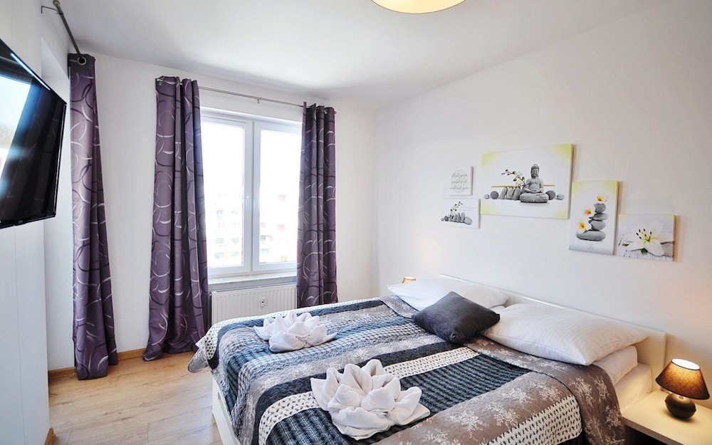 Jeg tror det er kulturelt, og måske noget med, at vi ikke kan polsk eller tysk. Men oplevede personalet som ret grove og meget lidt servicemindede. En af dagene tvang to medarbejder sig adgang til lejligheden uden vi forstod hvad de skulle (det vidste sig de skulle sprøjte mod insekter på balkonen). Det var ret ubehageligt. Kunne ellers godt finde på at komme igen.