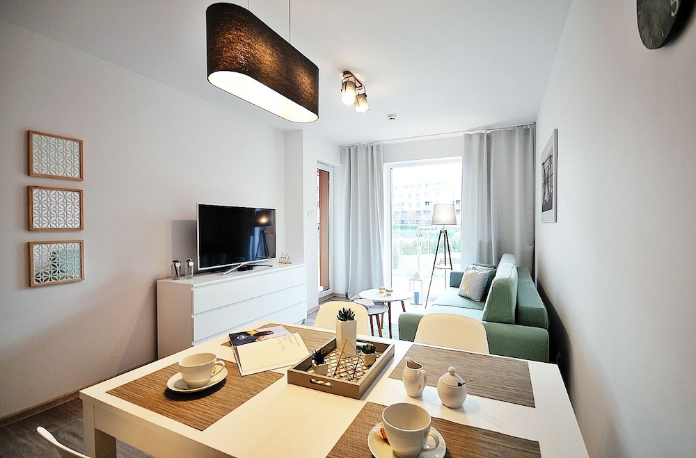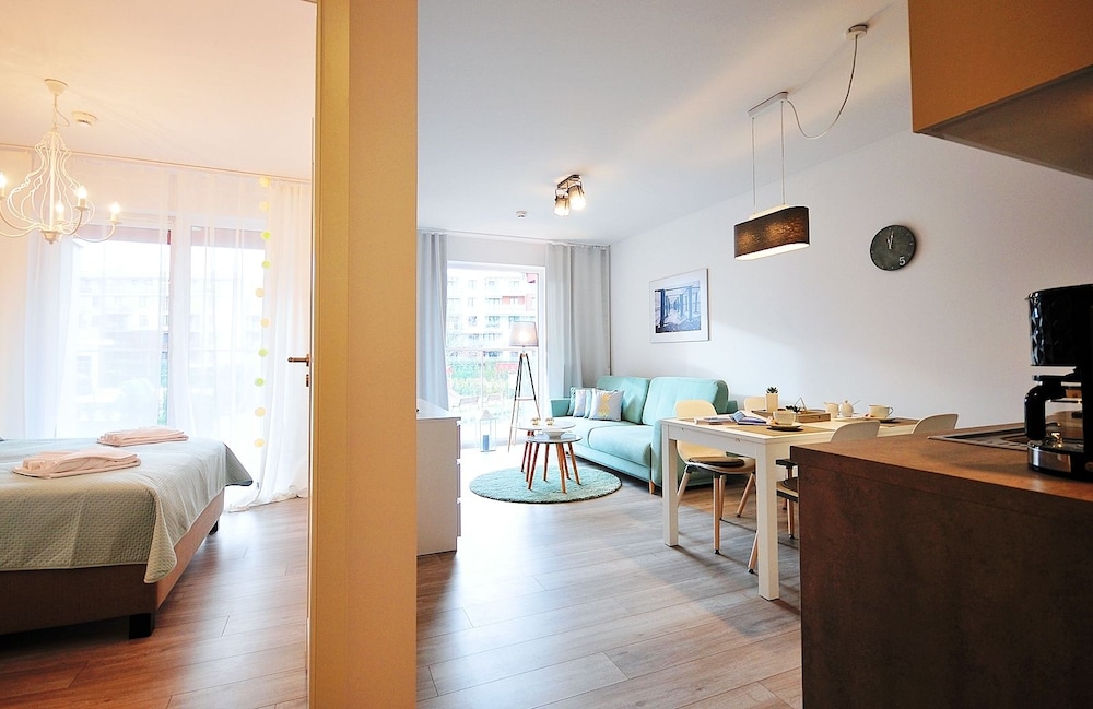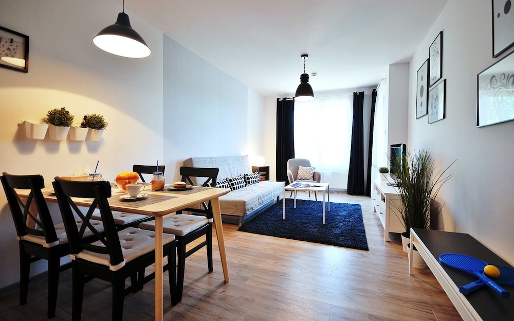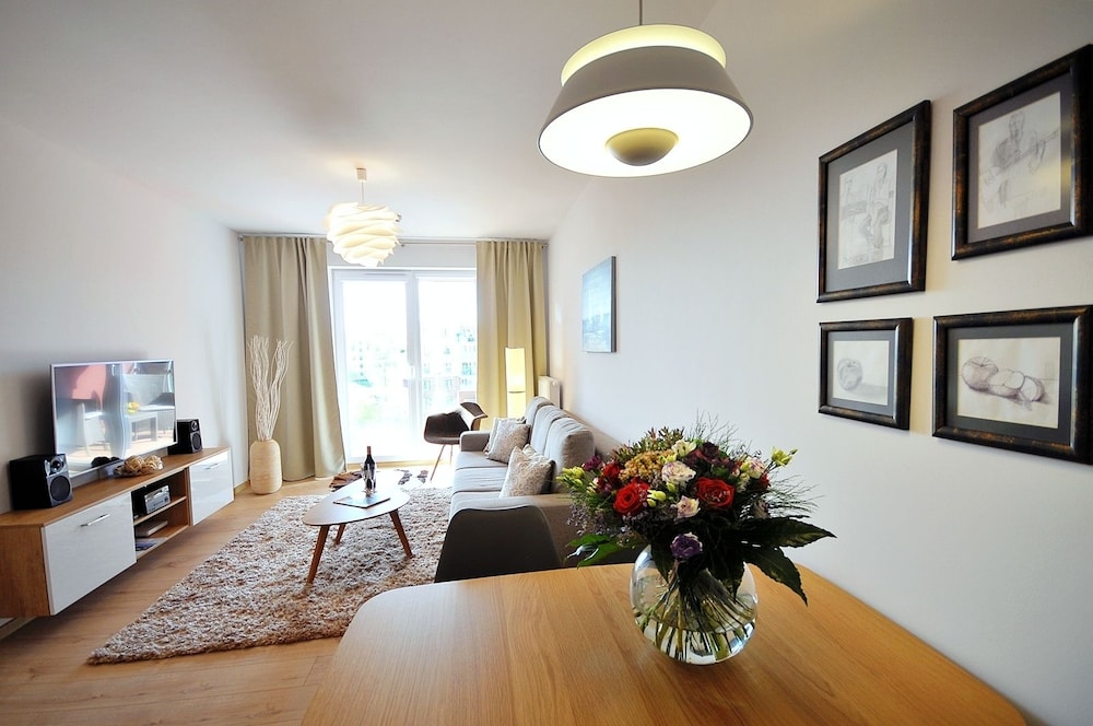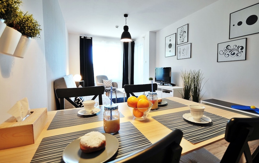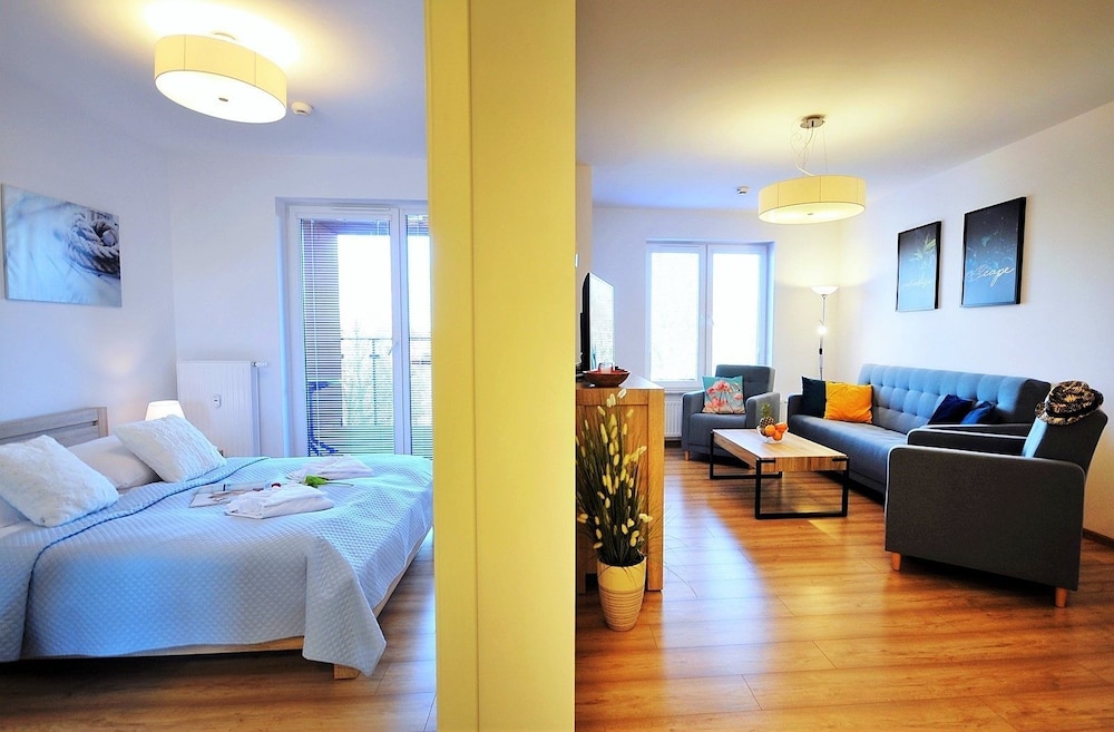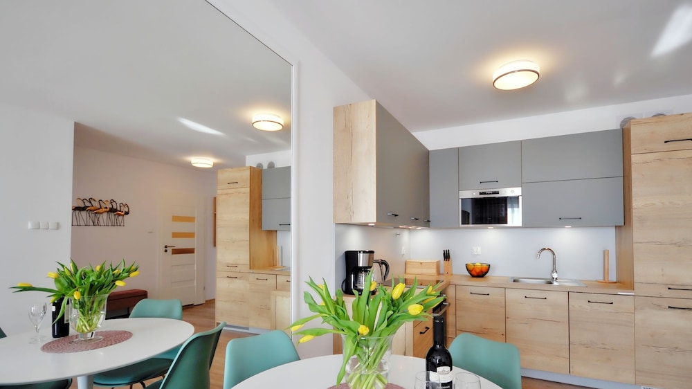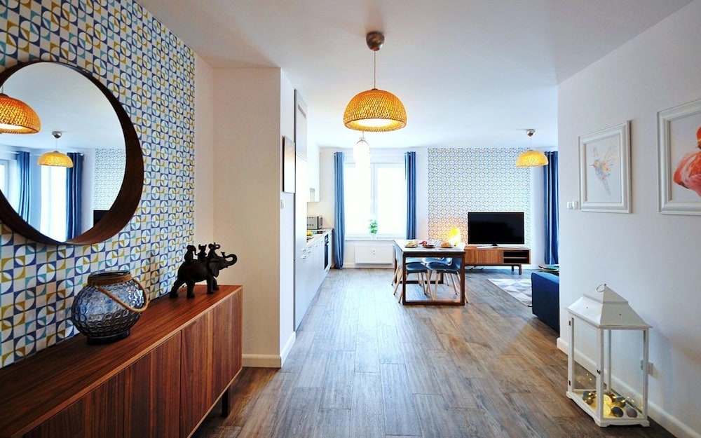 Jeg tror det er kulturelt, og måske noget med, at vi ikke kan polsk eller tysk. Men oplevede personalet som ret grove og meget lidt servicemindede. En af dagene tvang to medarbejder sig adgang til lejligheden uden vi forstod hvad de skulle (det vidste sig de skulle sprøjte mod insekter på balkonen). Det var ret ubehageligt. Kunne ellers godt finde på at komme igen.