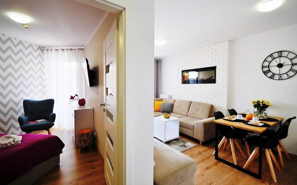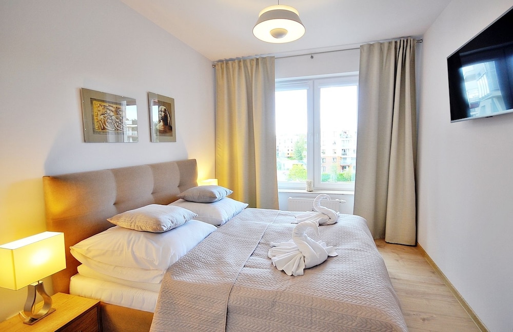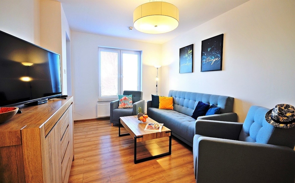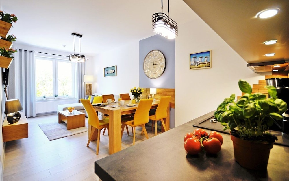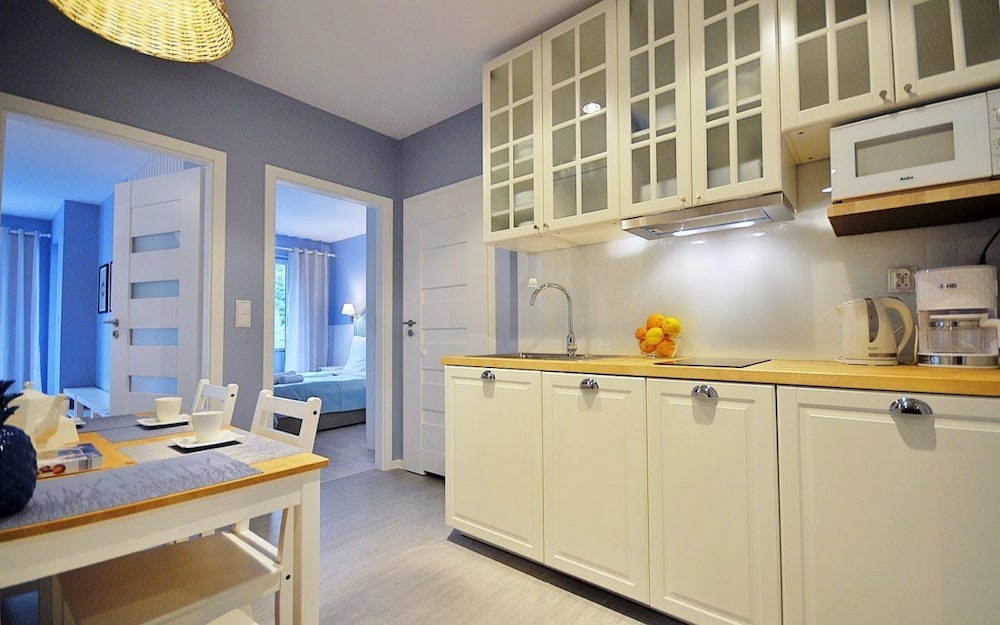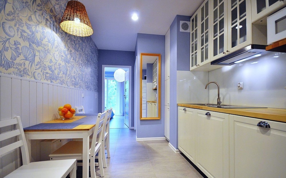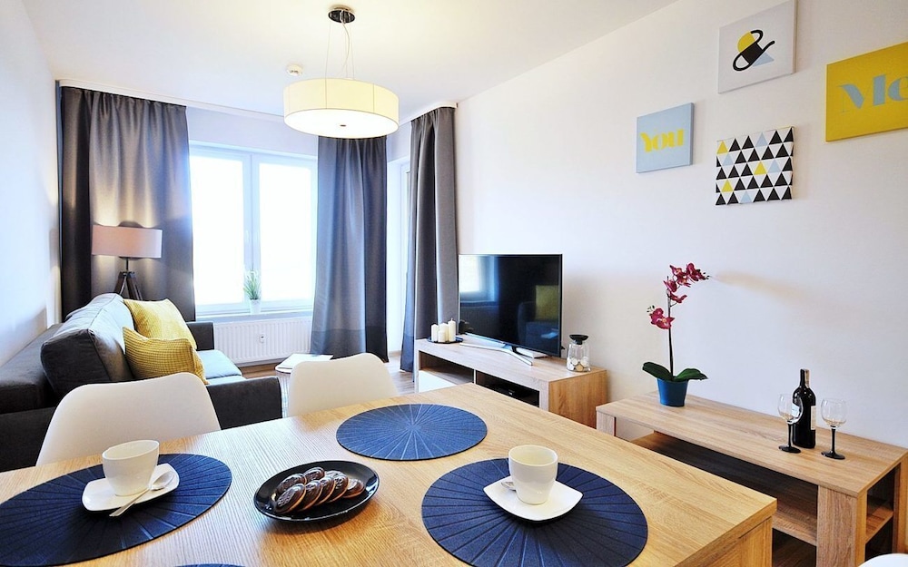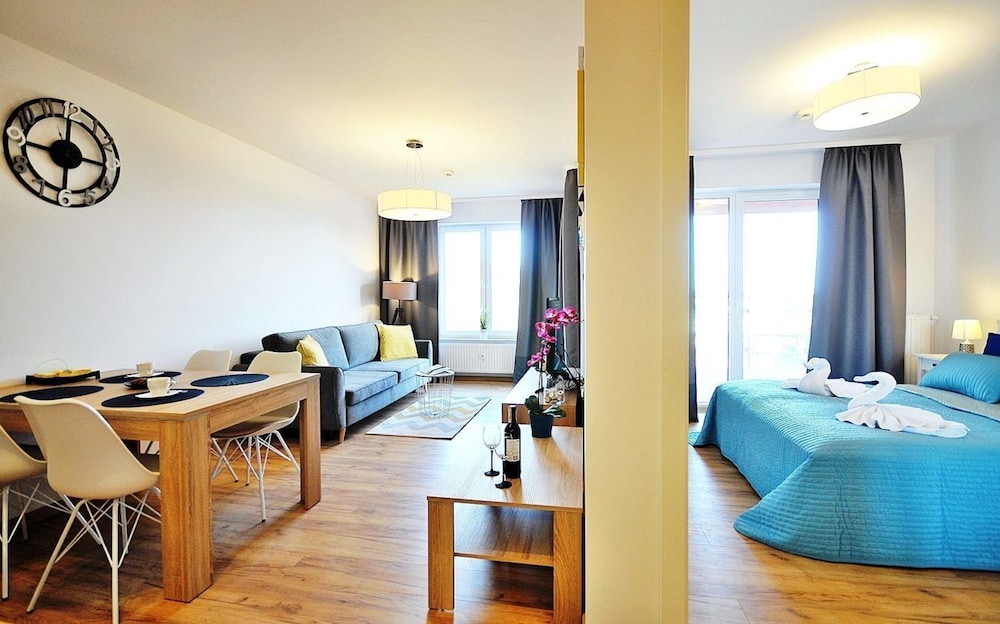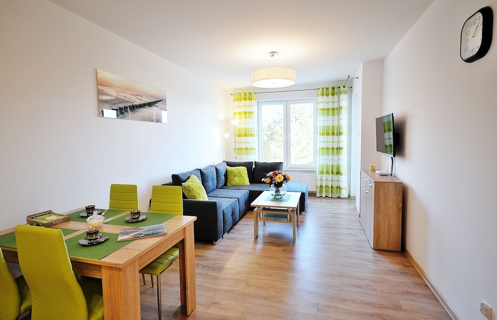 Jeg tror det er kulturelt, og måske noget med, at vi ikke kan polsk eller tysk. Men oplevede personalet som ret grove og meget lidt servicemindede. En af dagene tvang to medarbejder sig adgang til lejligheden uden vi forstod hvad de skulle (det vidste sig de skulle sprøjte mod insekter på balkonen). Det var ret ubehageligt. Kunne ellers godt finde på at komme igen.