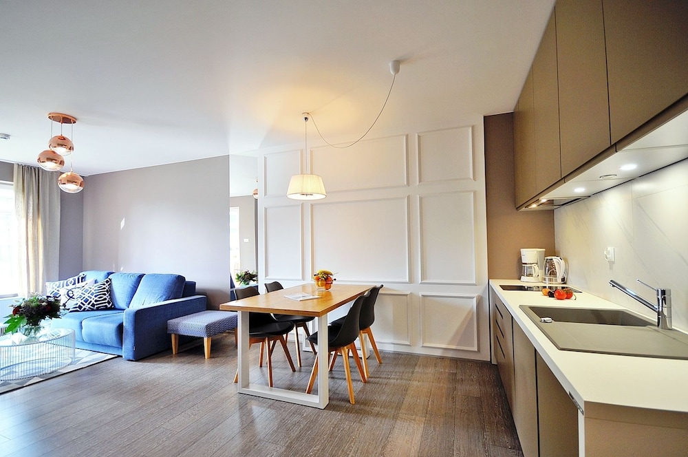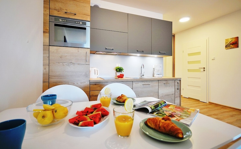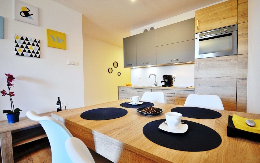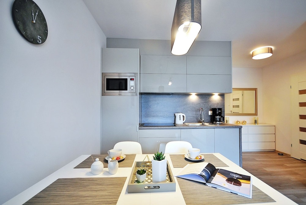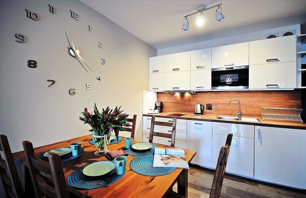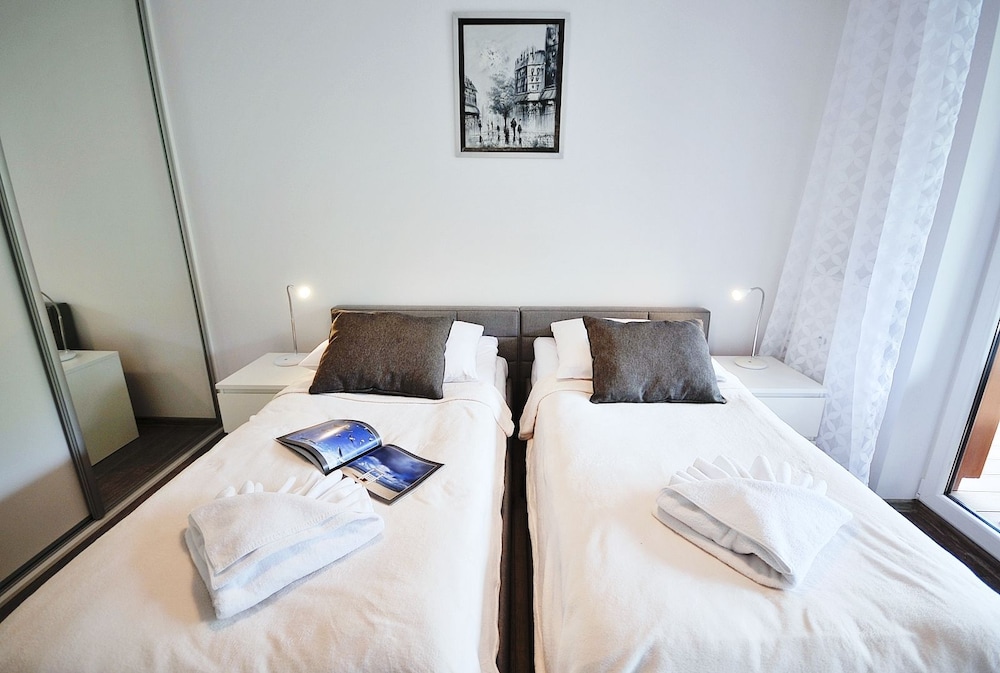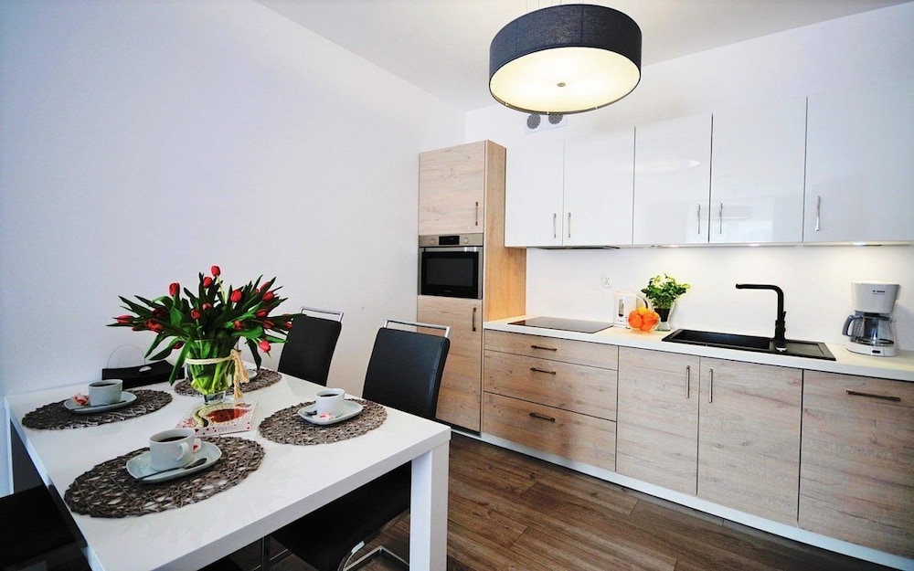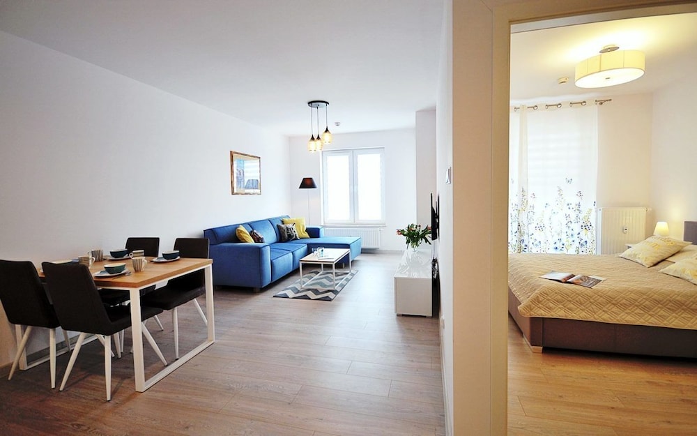 Jeg tror det er kulturelt, og måske noget med, at vi ikke kan polsk eller tysk. Men oplevede personalet som ret grove og meget lidt servicemindede. En af dagene tvang to medarbejder sig adgang til lejligheden uden vi forstod hvad de skulle (det vidste sig de skulle sprøjte mod insekter på balkonen). Det var ret ubehageligt. Kunne ellers godt finde på at komme igen.