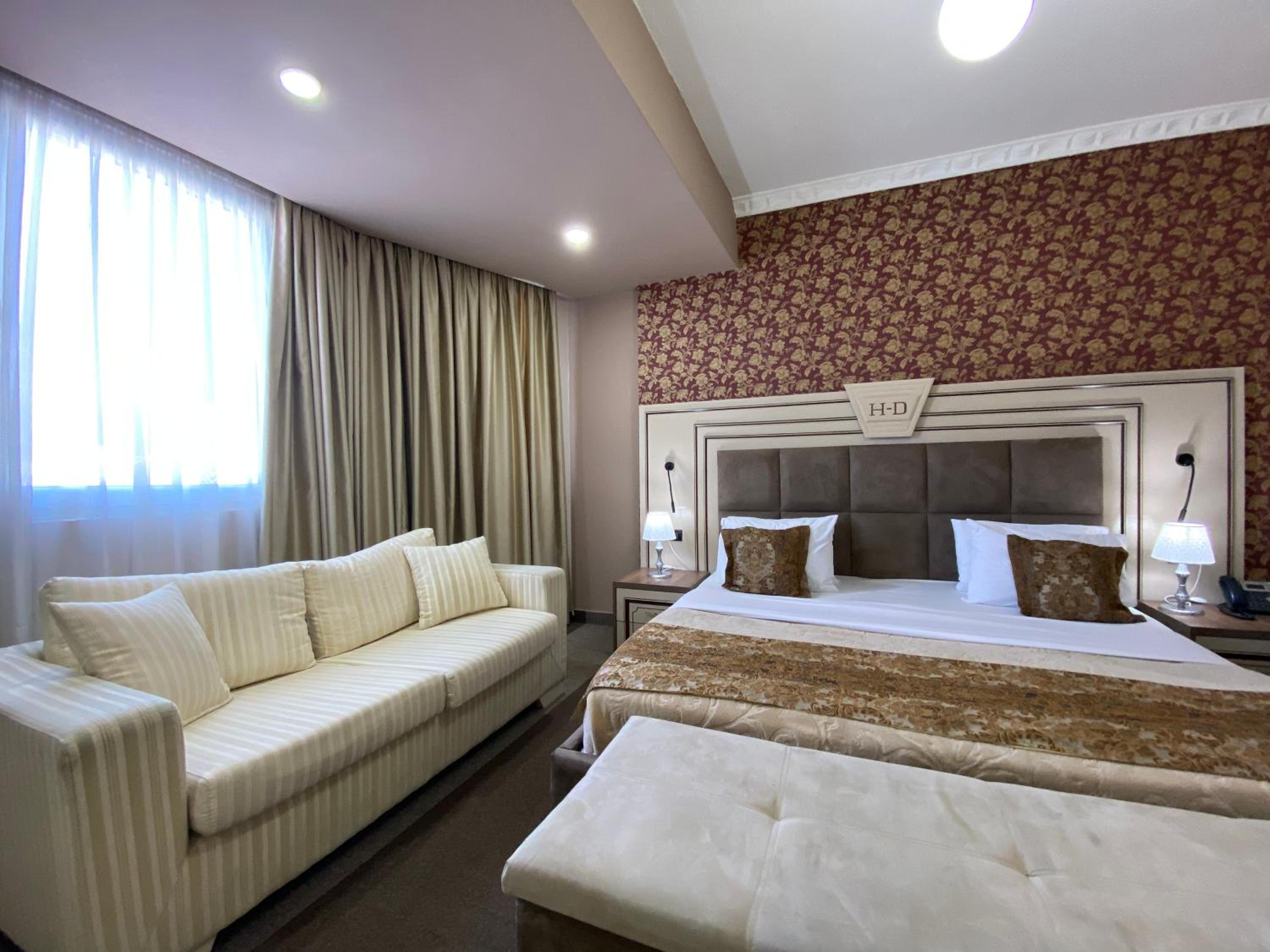 Hotel Deluxe in Tirana offers 4-star air-conditioned rooms with free WiFi, a private bathroom, and a flat-screen TV. Each room also features a cozy seating area and a work desk, ensuring a comfortable stay for guests.