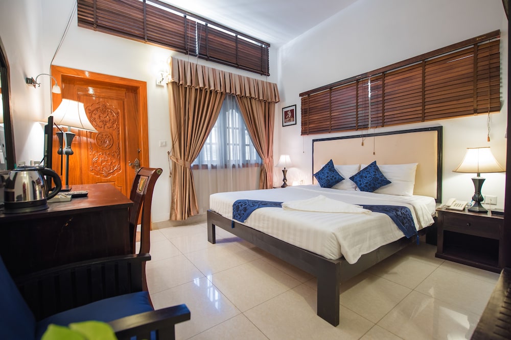 Hôtel situé au sud du centre ville, tuk tuk mais faisable à pied jusqu'au marché central. Personnel très accueillant et serviable. Ménage pas fait durant le séjour de 2 nuits. Emplacement calme, restaurants aux alentours.