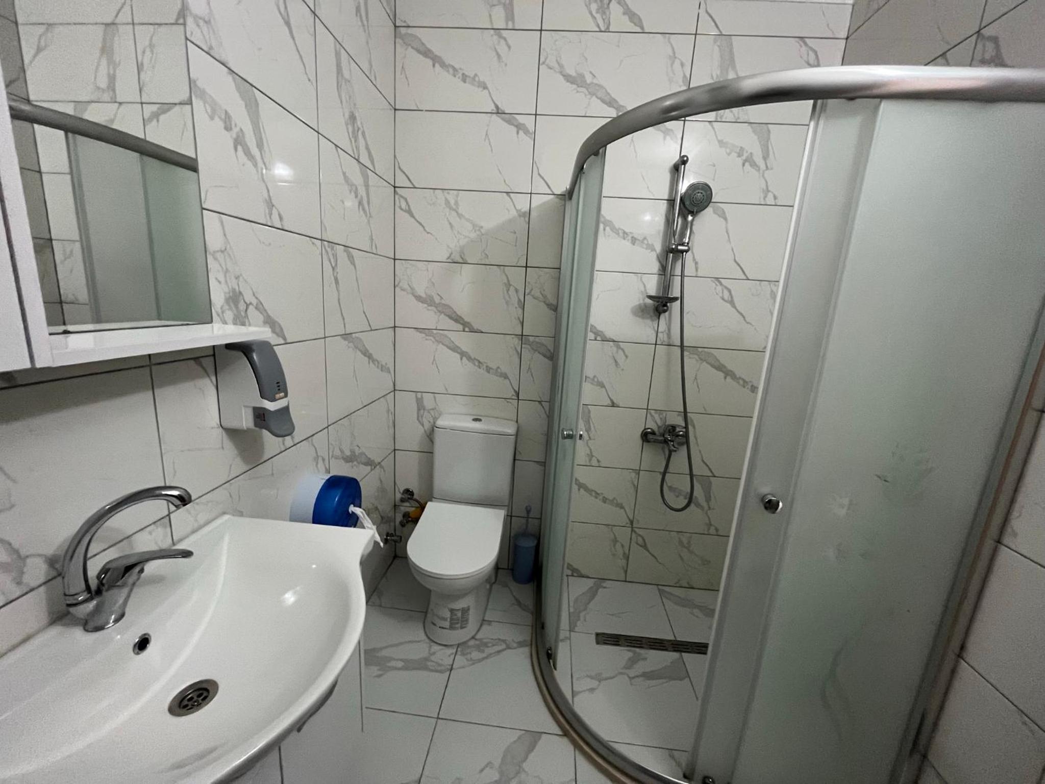 Мебель и ремонт в ужасном состоянии. В туалет течёт труба и весь пол в воде. Нам не дали ничего, чтобы укрыться. Я попросил доя этого 5 простыней по количеству человек, но мне дали всего 4. Потом ещё нагрубили.