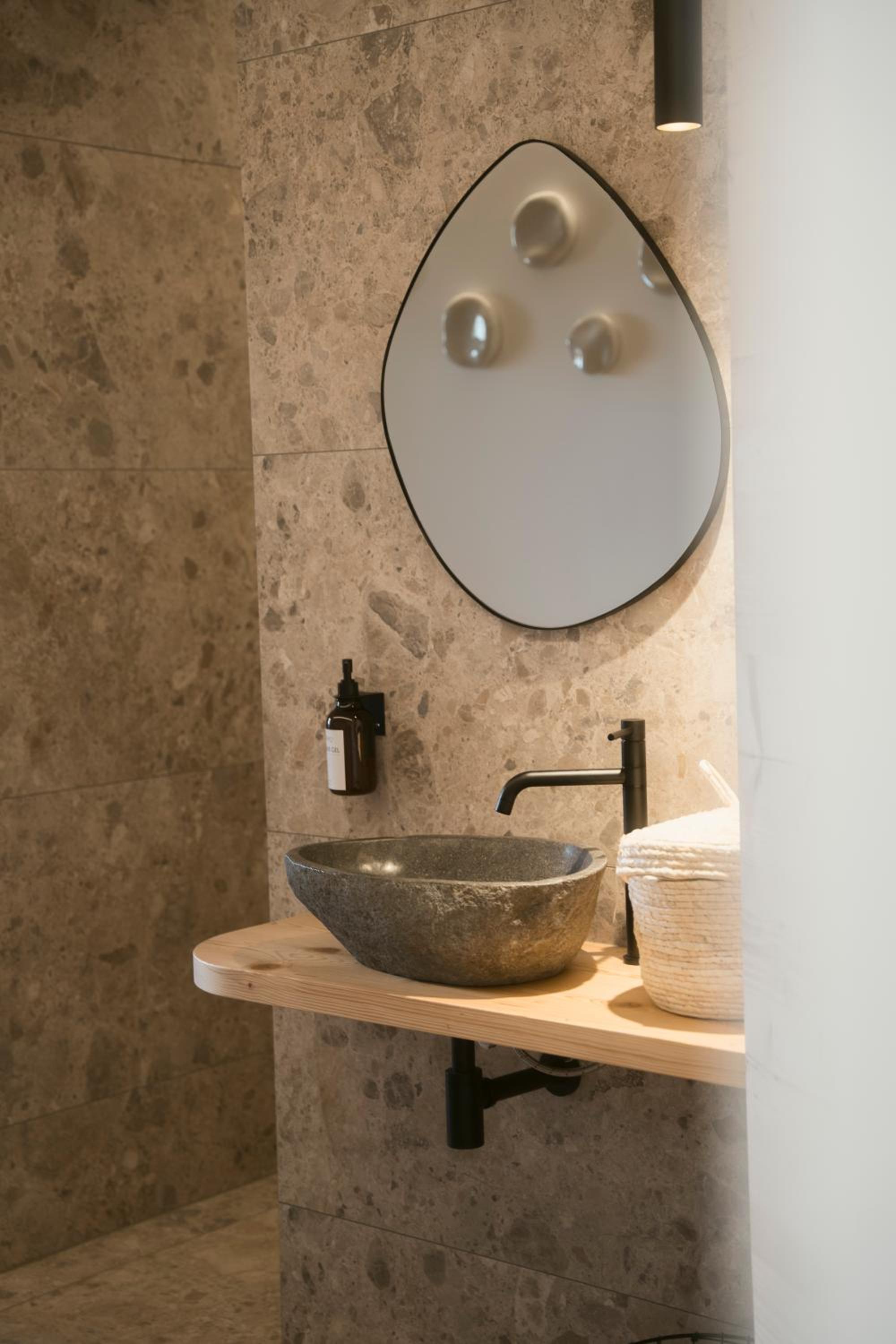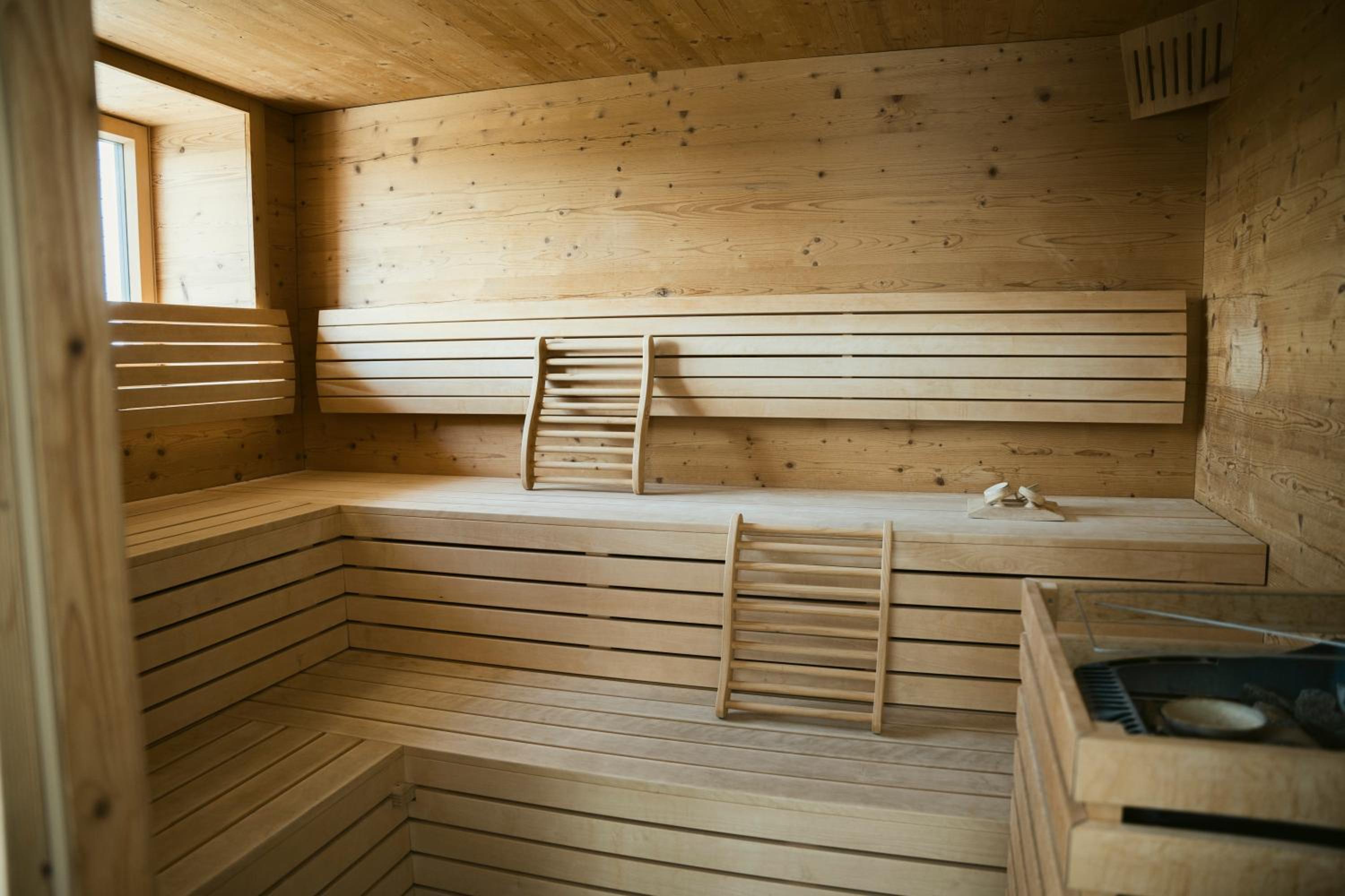 Прекрасная сауна, пол с подогревом в номере, идеальная чистота везде. Удивило, что есть лифт - в здании всего 2 этажа . Красивый сад.