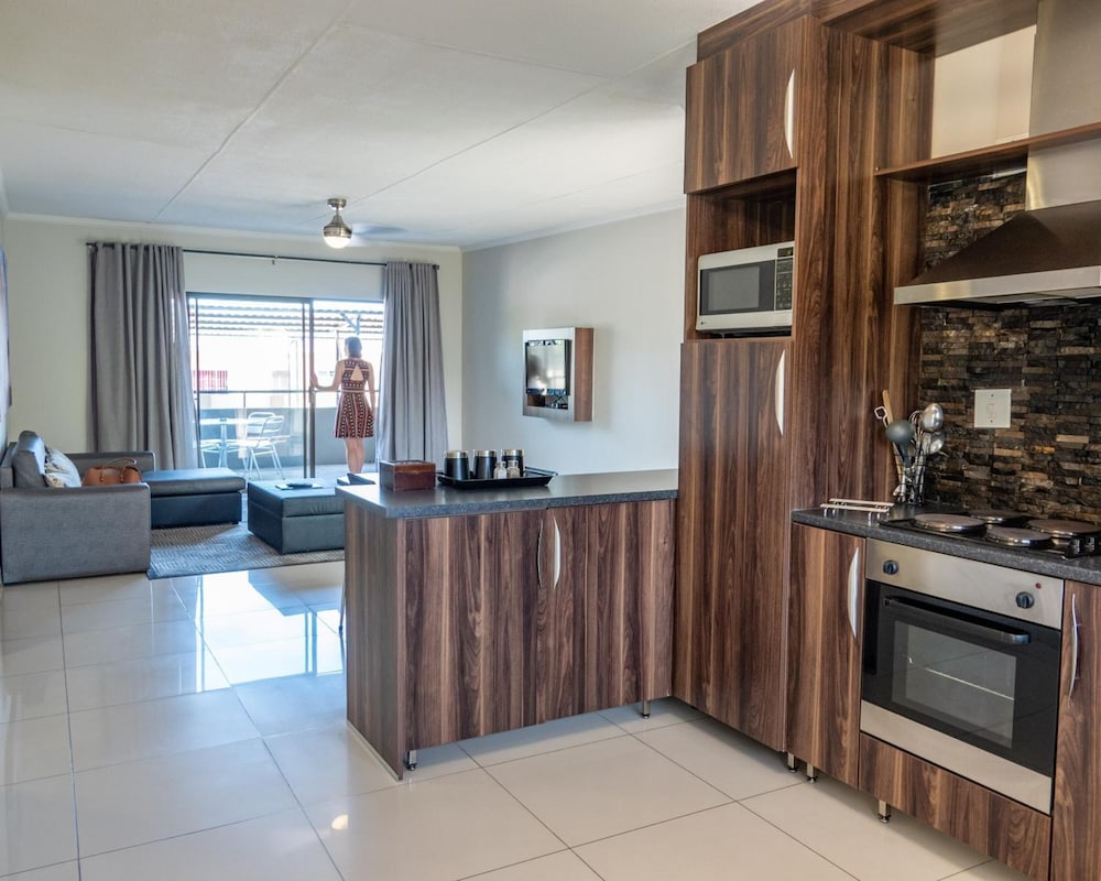 Luxury apartments with full on kitchen and Lounge ideal for short and long stay business and tourist trips. So you can eat out or stay in and self cater or cook your own meals. Very clean, friendly and accommodating staff. Quick, easy continental breakfasts available. Centrally located in Windhoek close to business district and all other amenities. 30 min countryside drive to airport. Will definitely use again. Thank you!