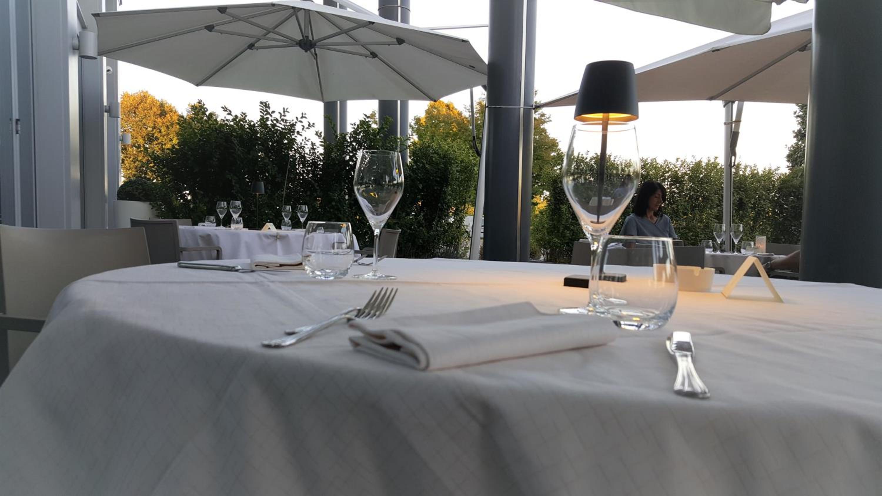 location stupenda con personale molto gentile ed efficiente. il ristorante elegante e raffinato dove abbiamo mangiato spaghettini freddi con crema di pistacchio e quenelle di ricciola squisito, millefoglie con crema pasticcera e fragole un vero peccato di gola. la camera spaziosa e moderna pulitissima tutto 5 stelle contentissimi