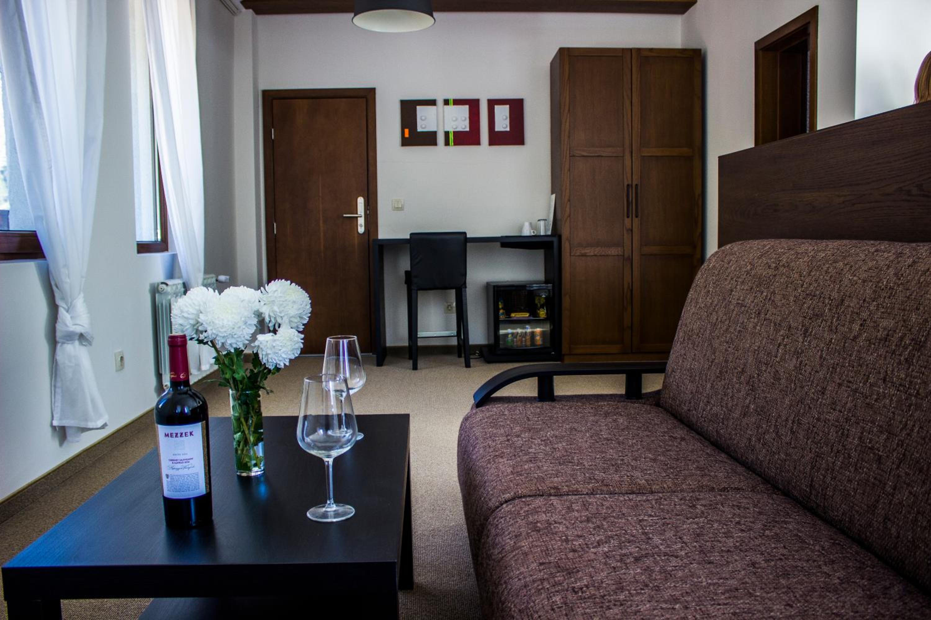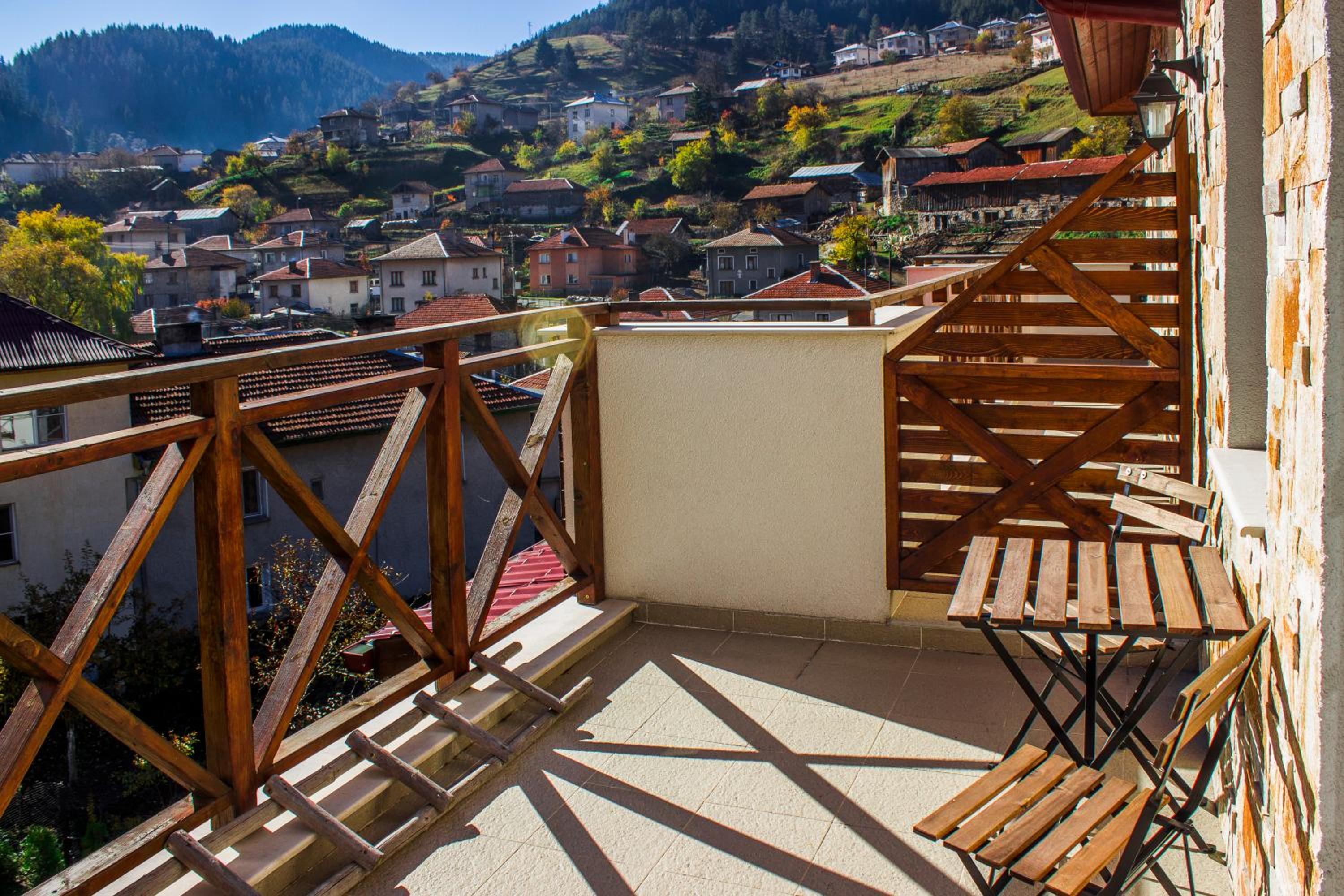 Scenic Views and Modern Amenities: Enjoy breathtaking views of Trigrad village and the mountains from your room, equipped with a flat-screen TV, safe, and a private bathroom. Upgrade to a unit with a balcony and minibar for added comfort.