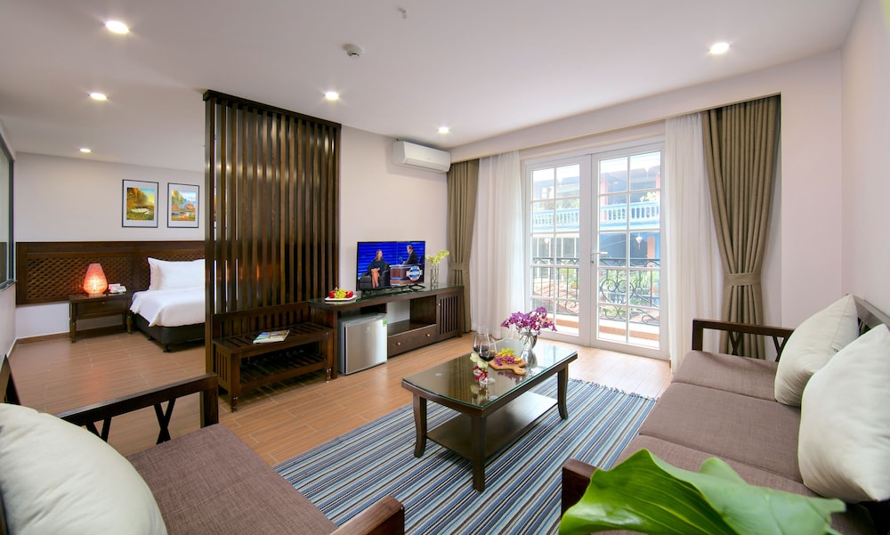 Værelset var stort og veludstyret med køleskab, AC, TV, føntørrer, el-kedel og flere stole og borde. Alt i fin stand. Der var også en god lille balkon med udsigt. Morgenmaden var rigelig, og det var buffet med æg, ris, nudler, suppe, brød, pølse, frugt, grønt osv. Godt udvalg, og venligt personale.