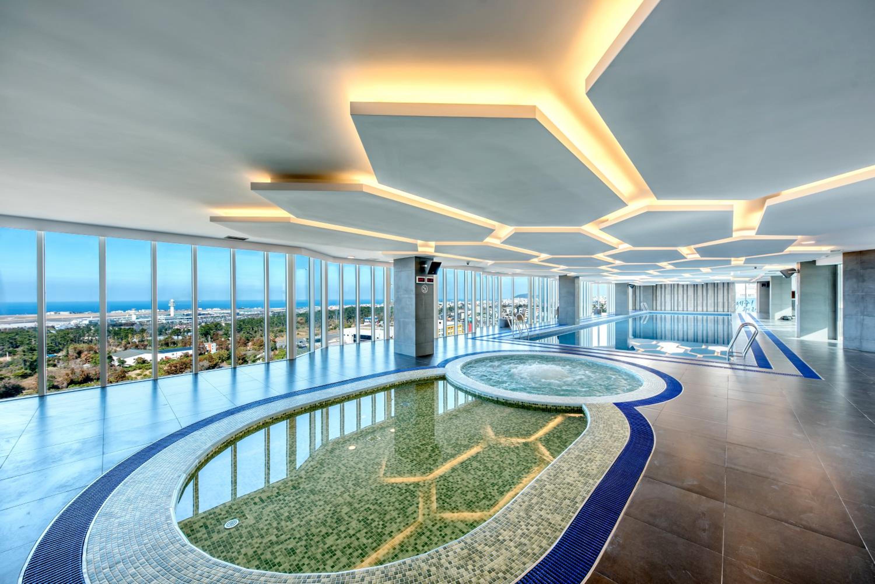 Impressive Facilities and Convenient Location The hotel's 10th-floor indoor swimming pool provides a breathtaking view of the airport runway, while the fitness center and versatile banquet halls cater to various needs. Conveniently situated just a 5-minute drive from Jeju International Airport, Hotel Sirius is also within walking distance of Shilla Duty Free and Jeju Paradise Casino.