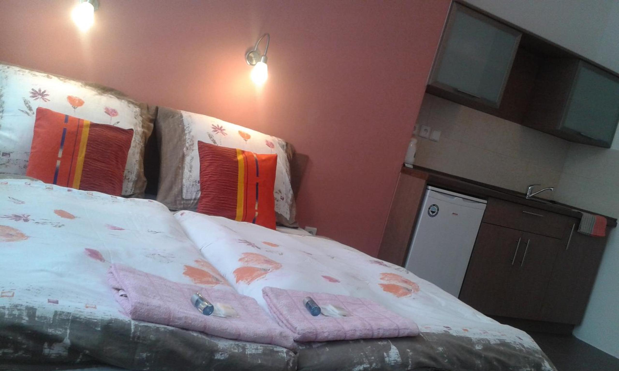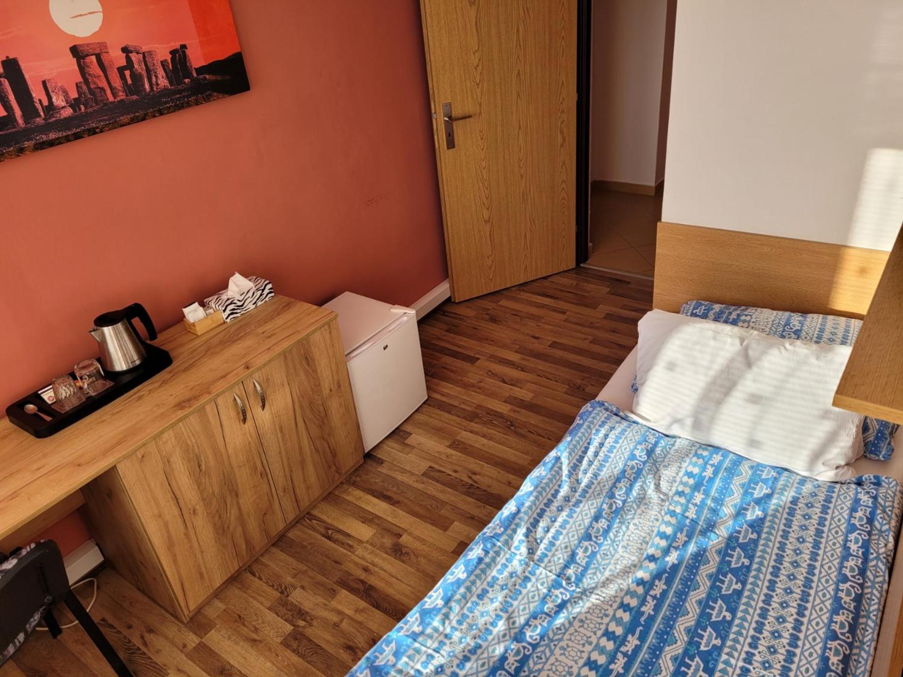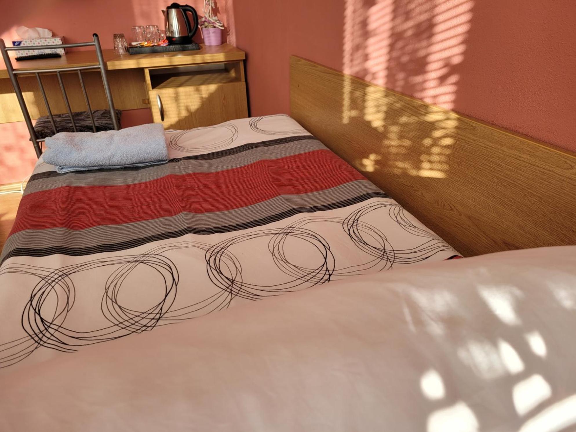 Veľmi pozitívne hodnotíme obsluhu a tiež ubytovací automat a možnosť prístupu cez čipovú kartu v noci. Na izbe bola kanvica, čaj a rozpustná káva. Dostatok hygienických potrieb v kúpelni