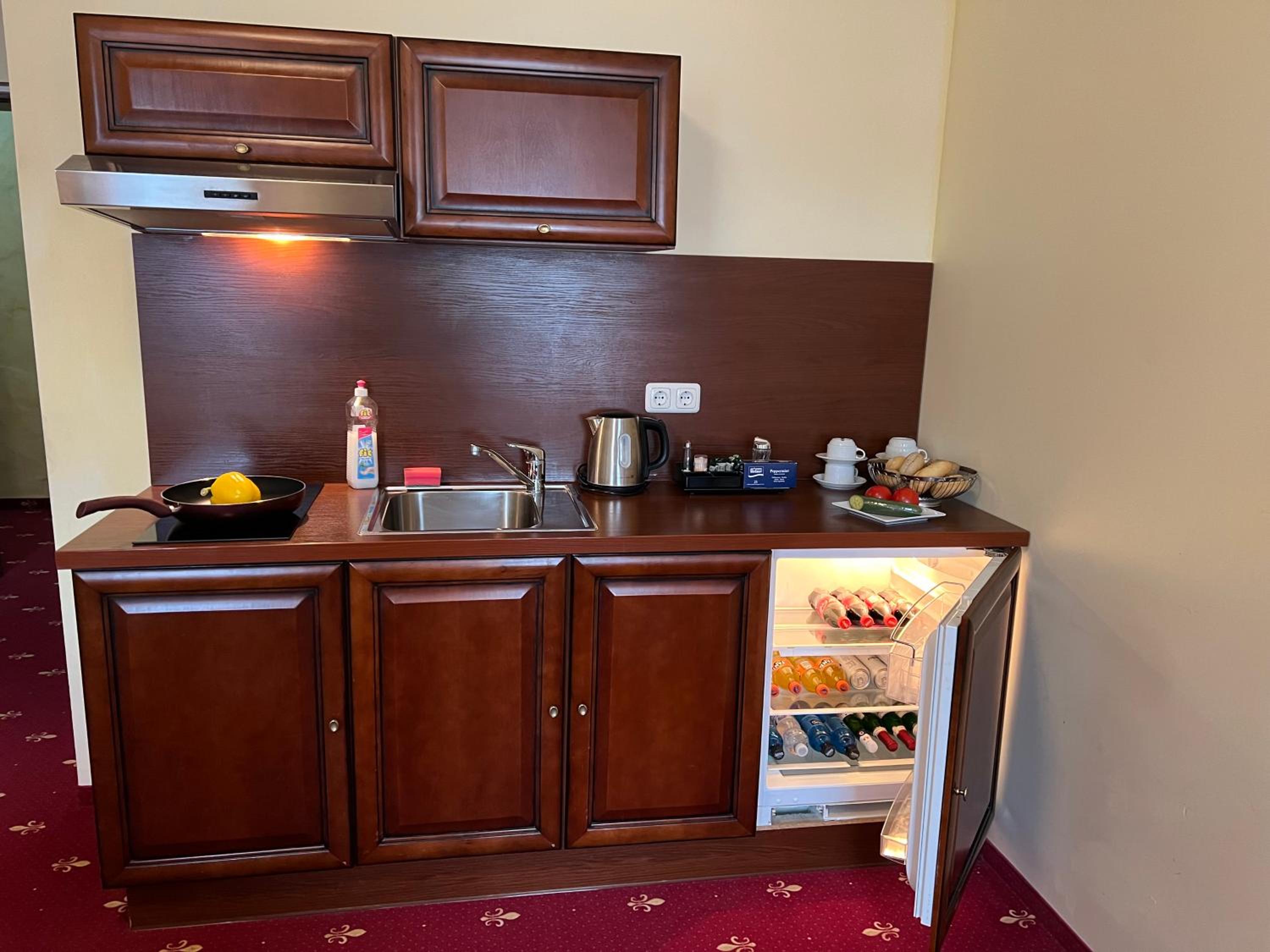 Przestronny duży pokój, wyposażony aneks kuchenny, bardzo czysto, duży parking, wygodne łóżka, całodobowa recepcja, dobre śniadanie za atrakcyjną cenę, brakowało mi tylko ścierki do wytarcia talerzy ale to nie był problem, obiekt przewyższył moje oczekiwania
